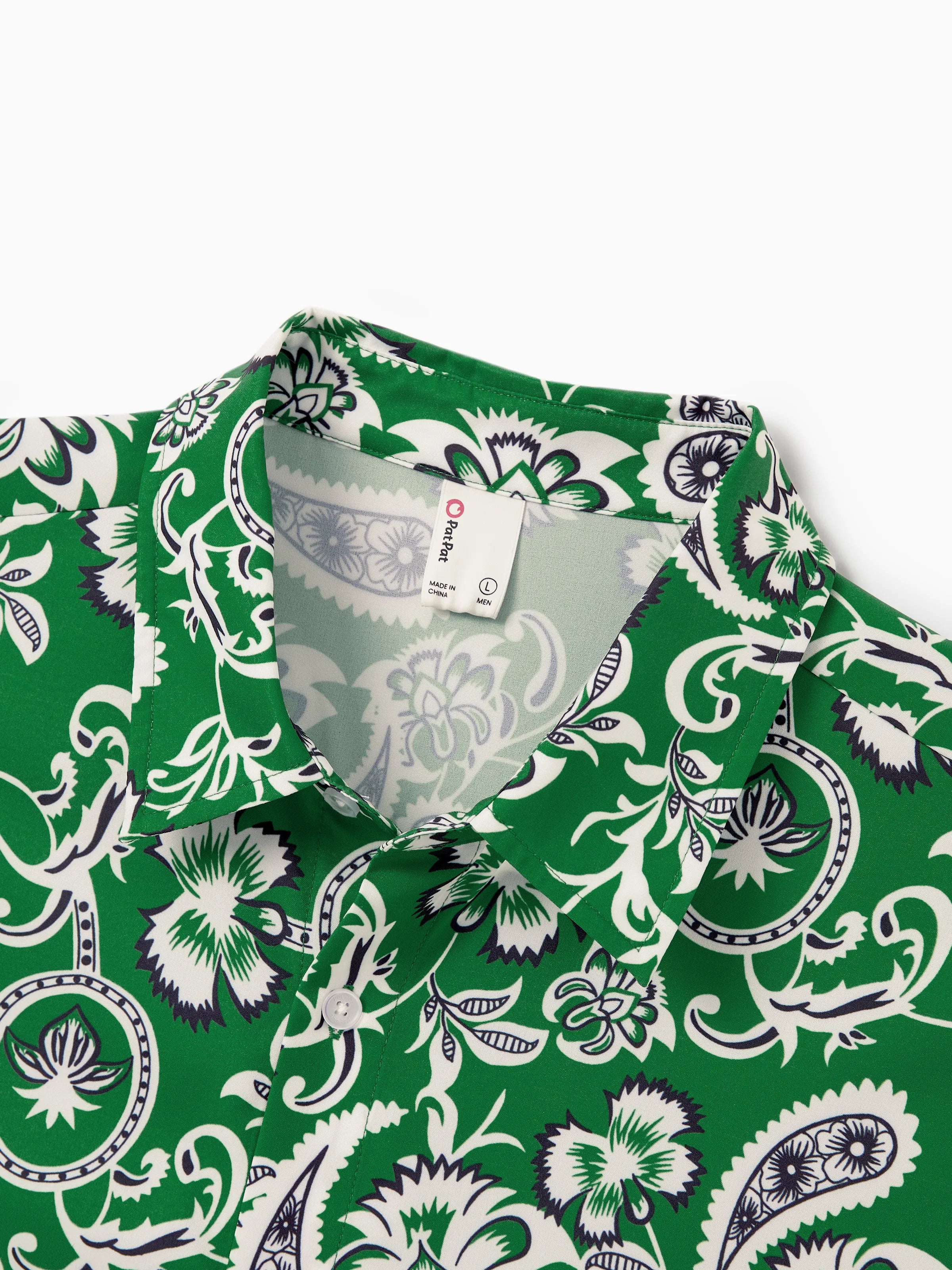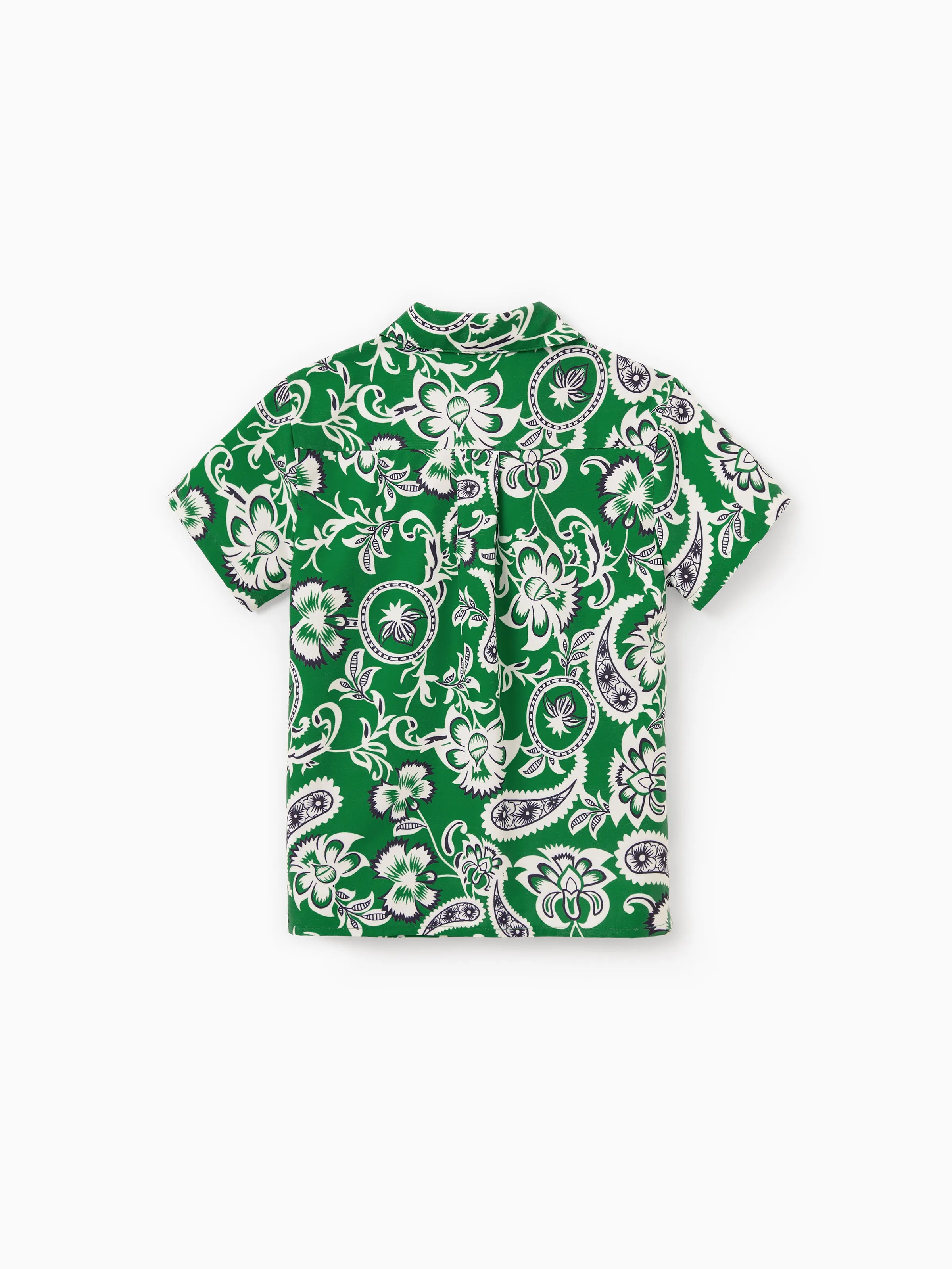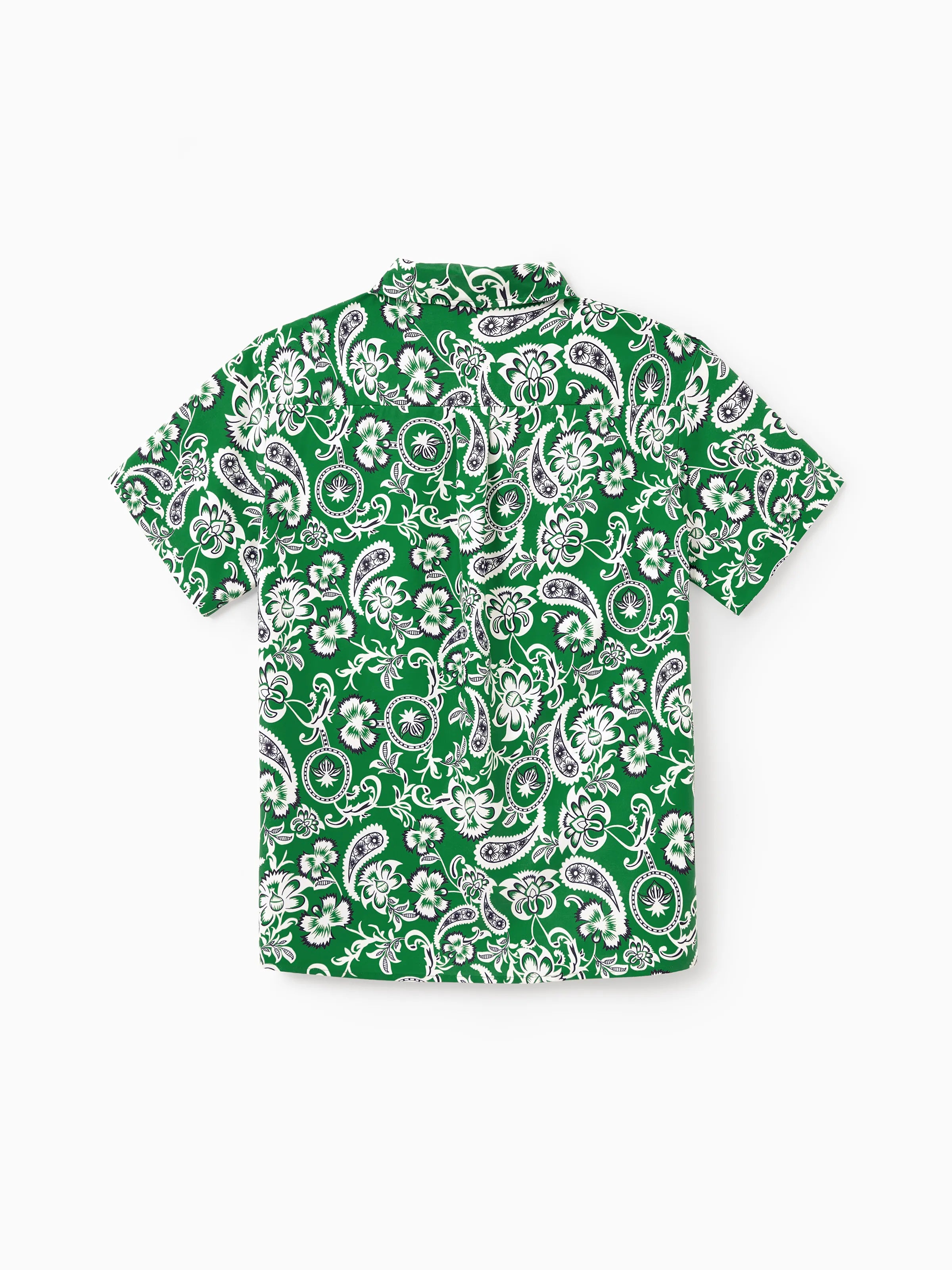 Daddy & Son Outfits Set Floral Print Short-sleeve Collar Shirt or Strappy Smocked Dress for Summer Vacation Green