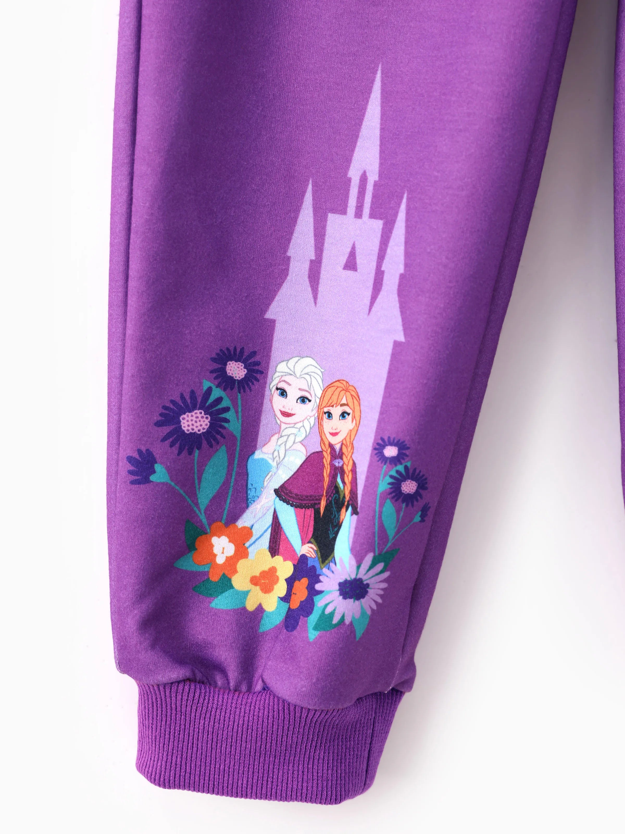Disney Frozen 2pcs Toddler Girl Elsa&Anna Floral Long-sleeve Hoodie and Pants Set Deep Magenta