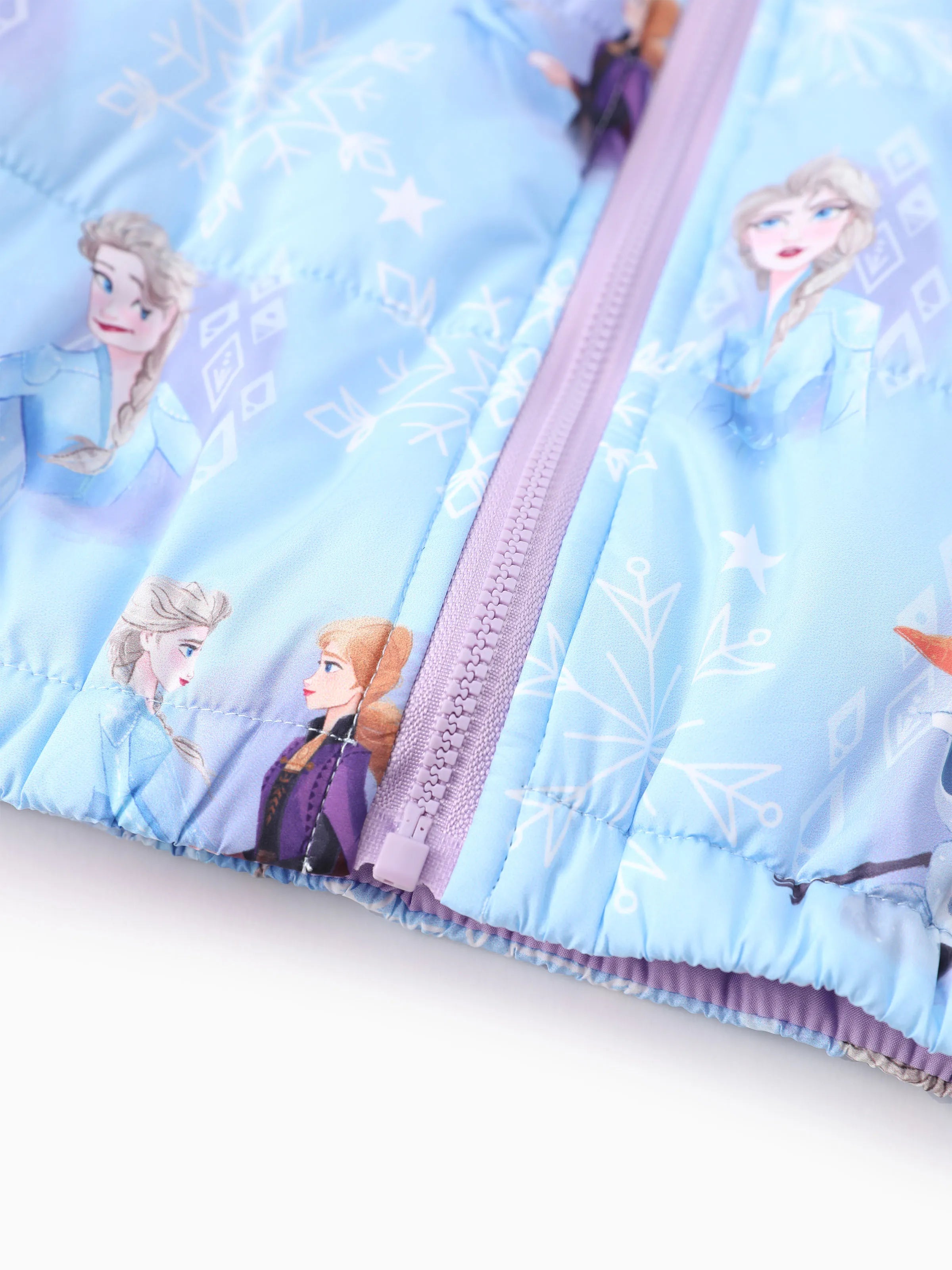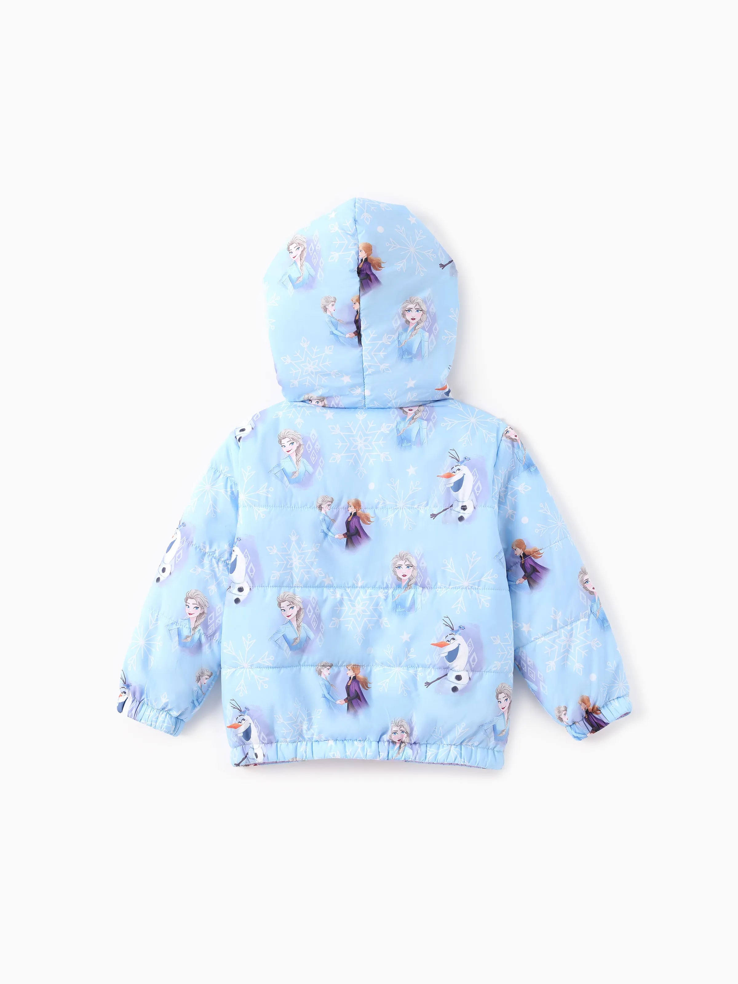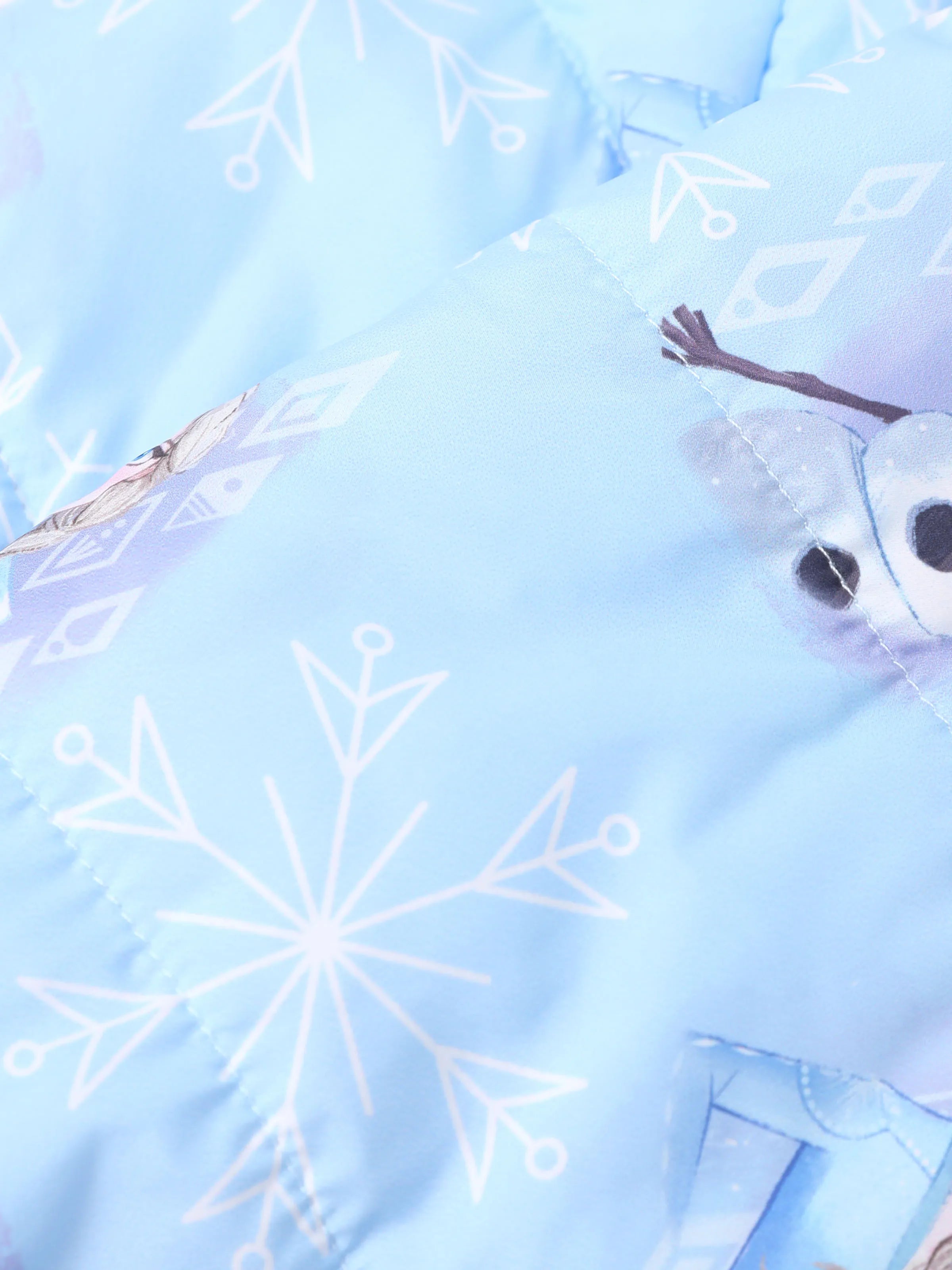 Disney Frozen Toddler Girl 2pcs Elsa&Olaf Snowflakes Print Hooded Jacket Coat With Storage Bag Blue