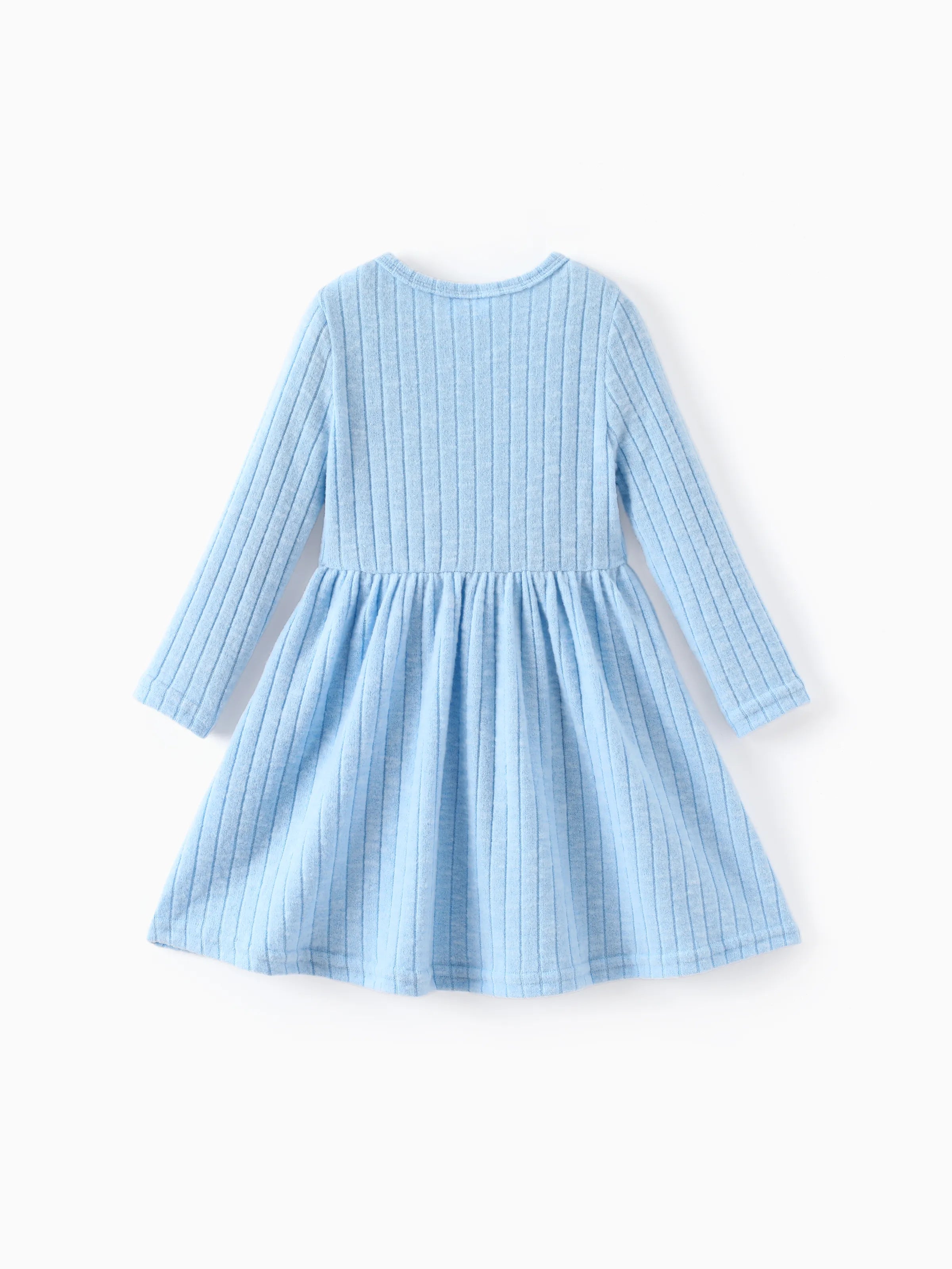 Disney Frozen Toddler Girl Elsa Ribbed Knitted Fabric Longsleeves Dress Blue