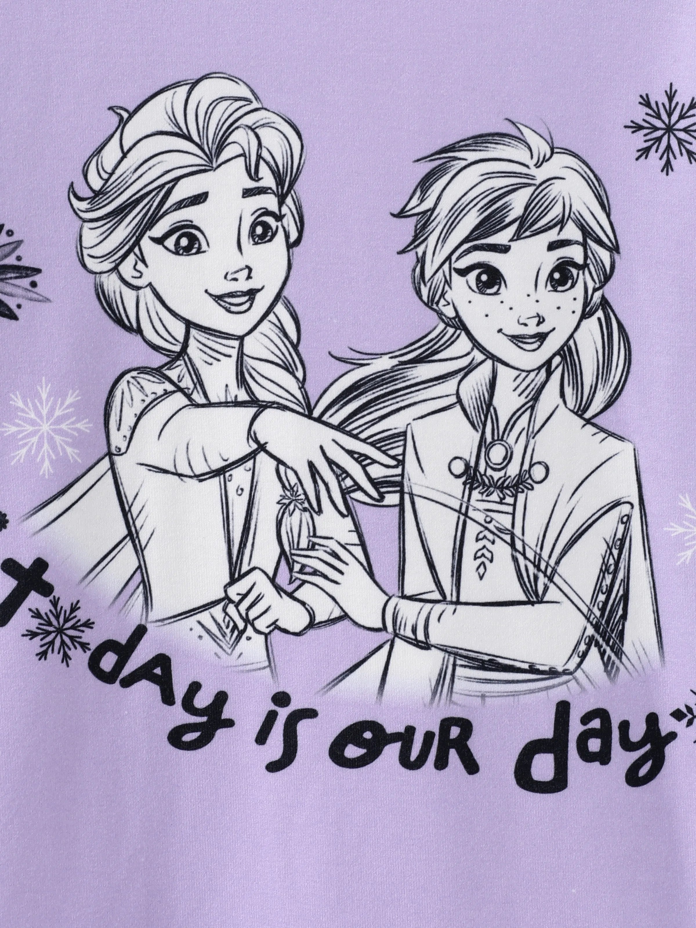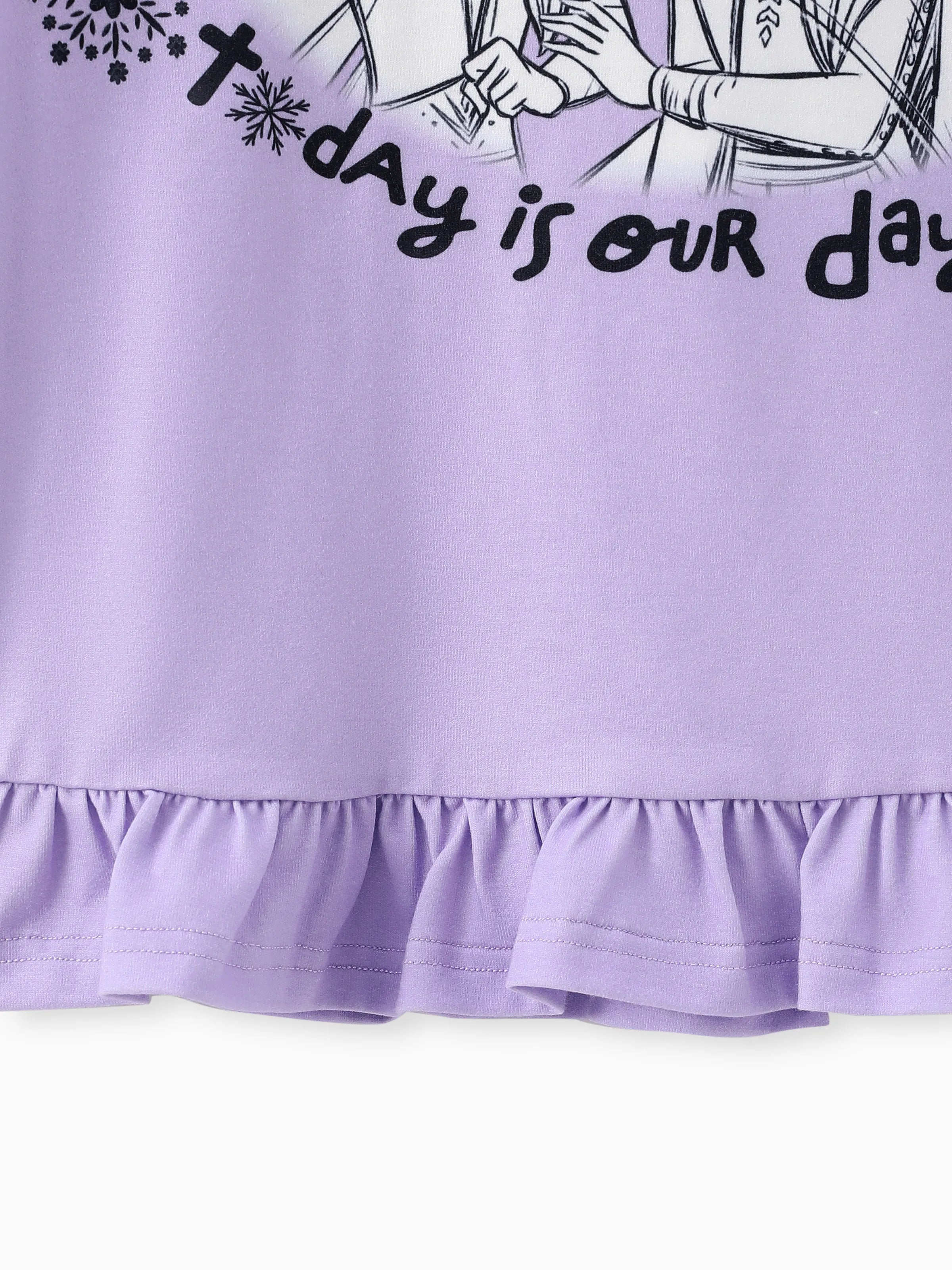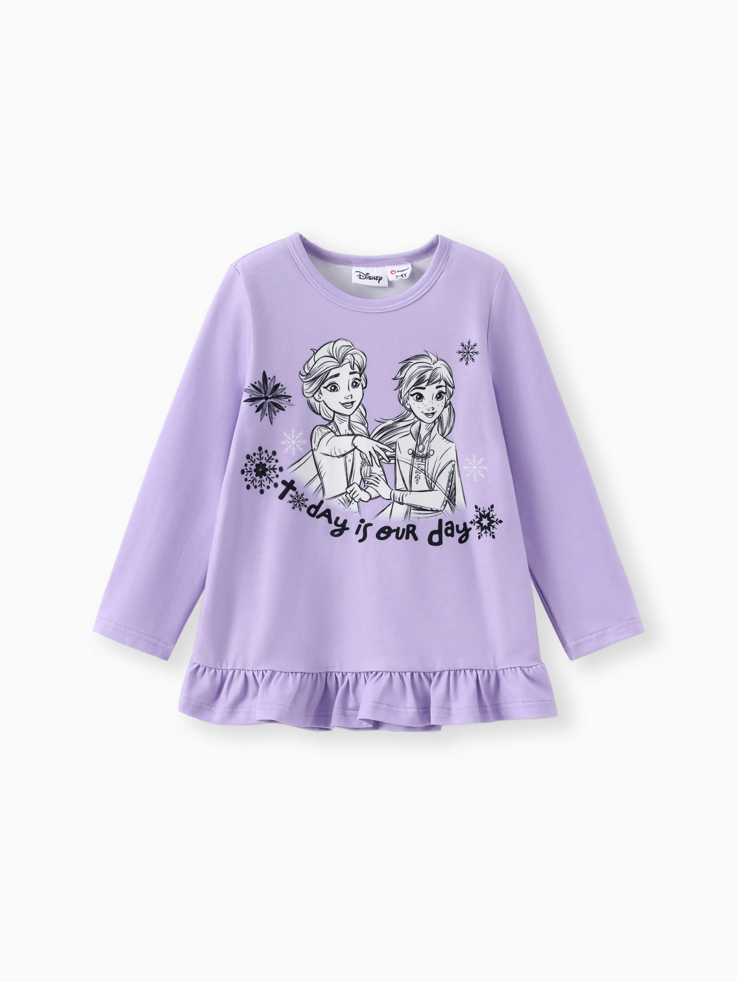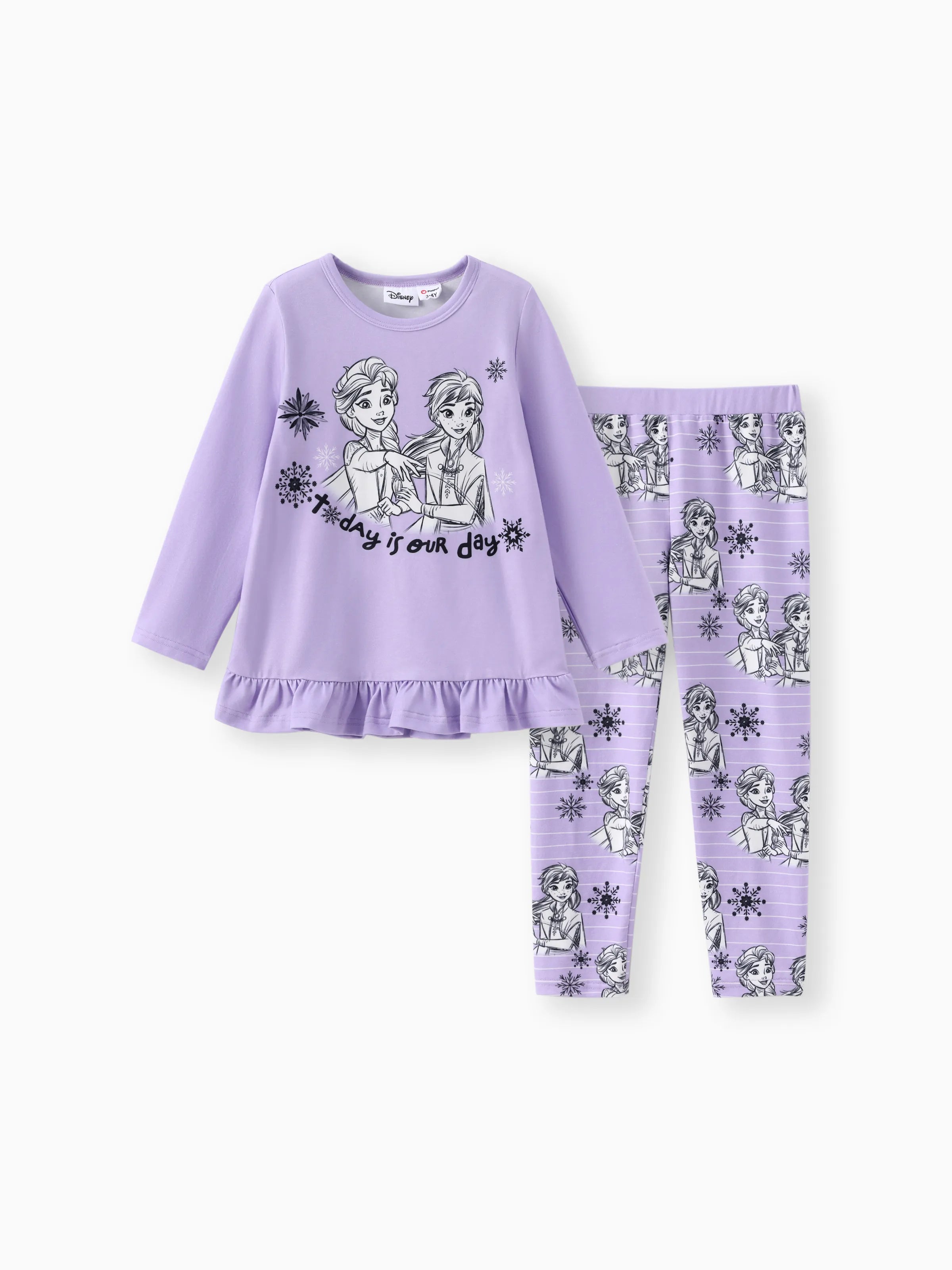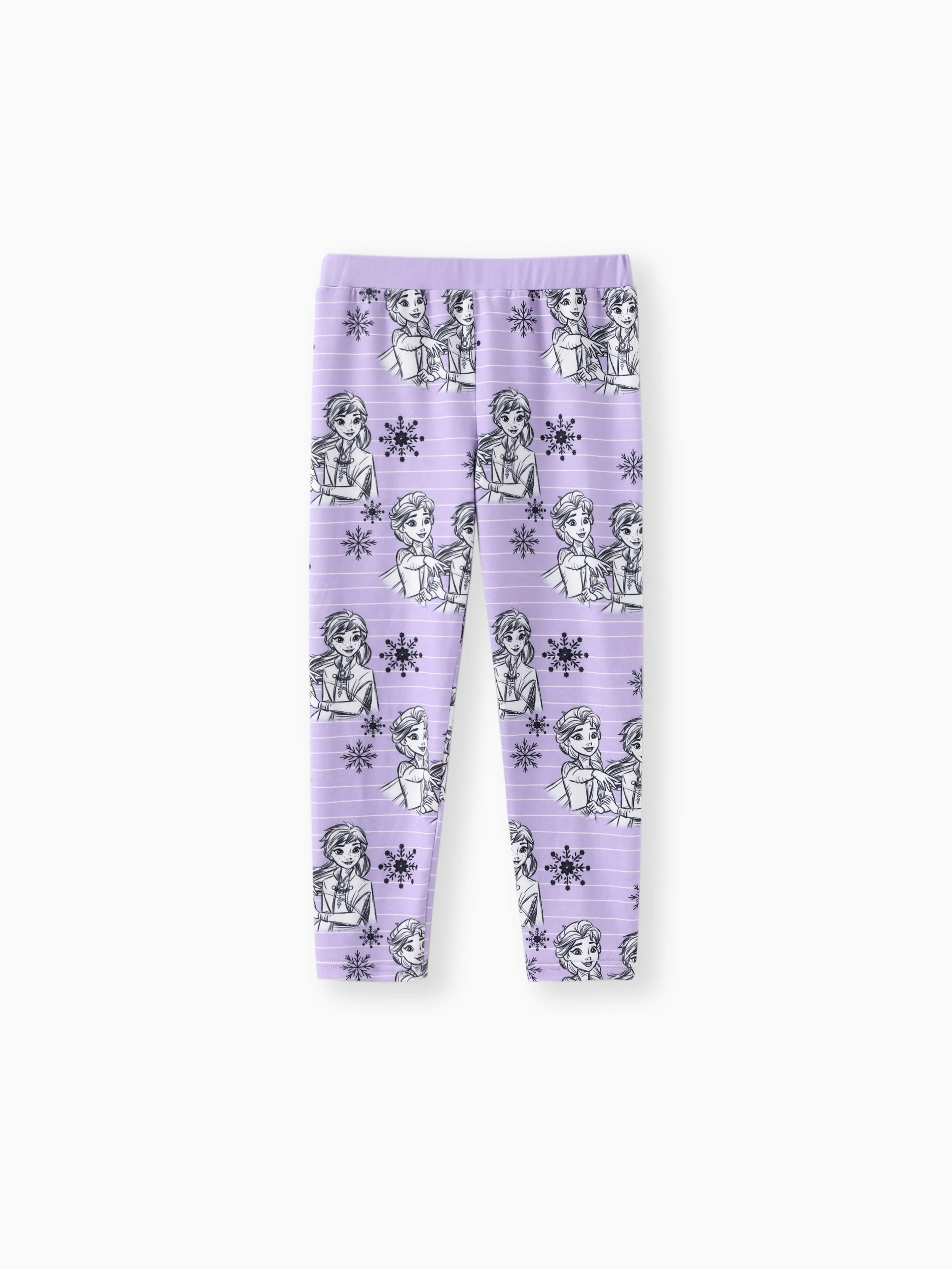 Disney Frozen Toddler Girl Elsa and Anna 2pcs Naia? Ruffle-hem Floral Top with Leggings Set Purple