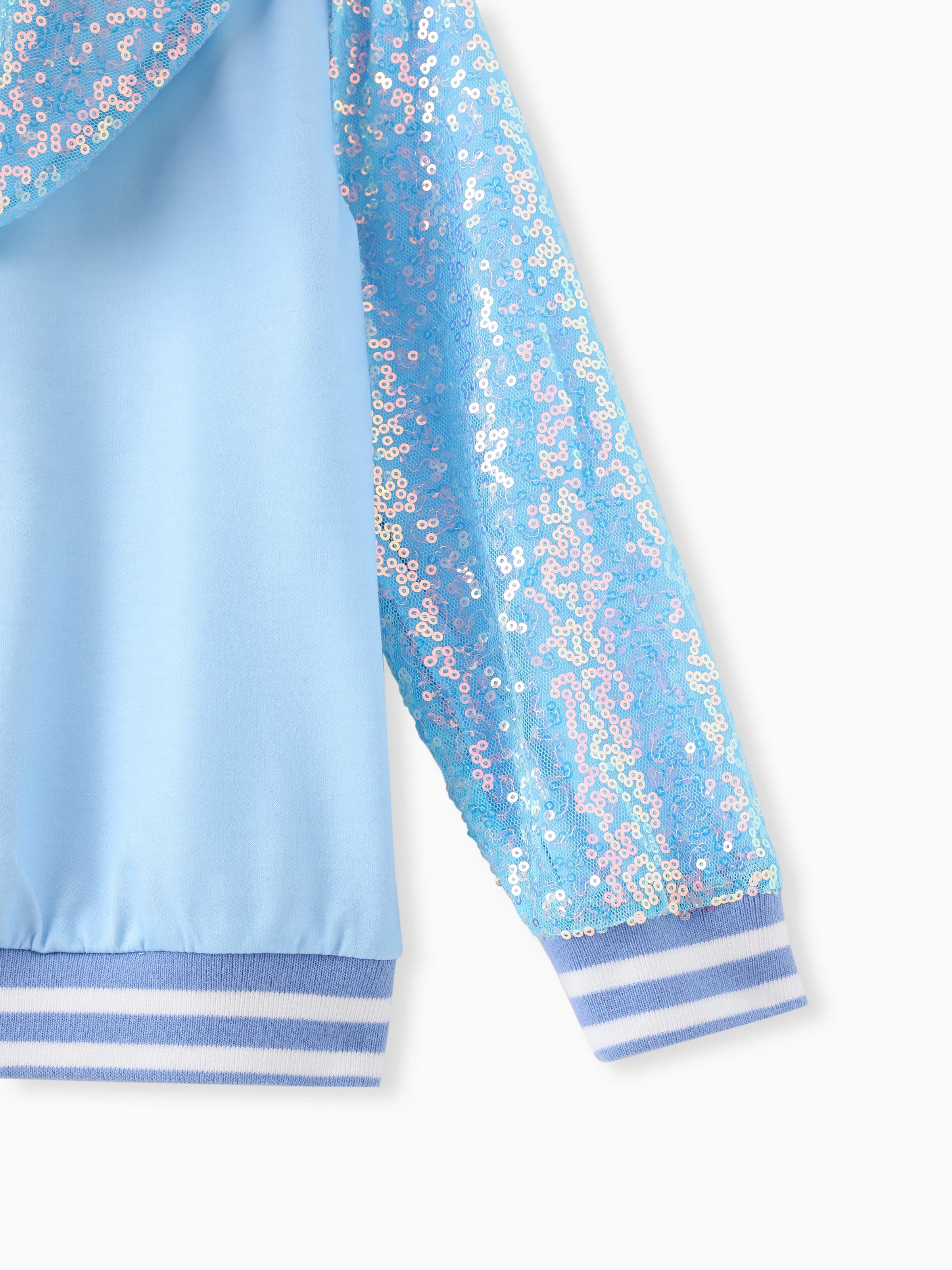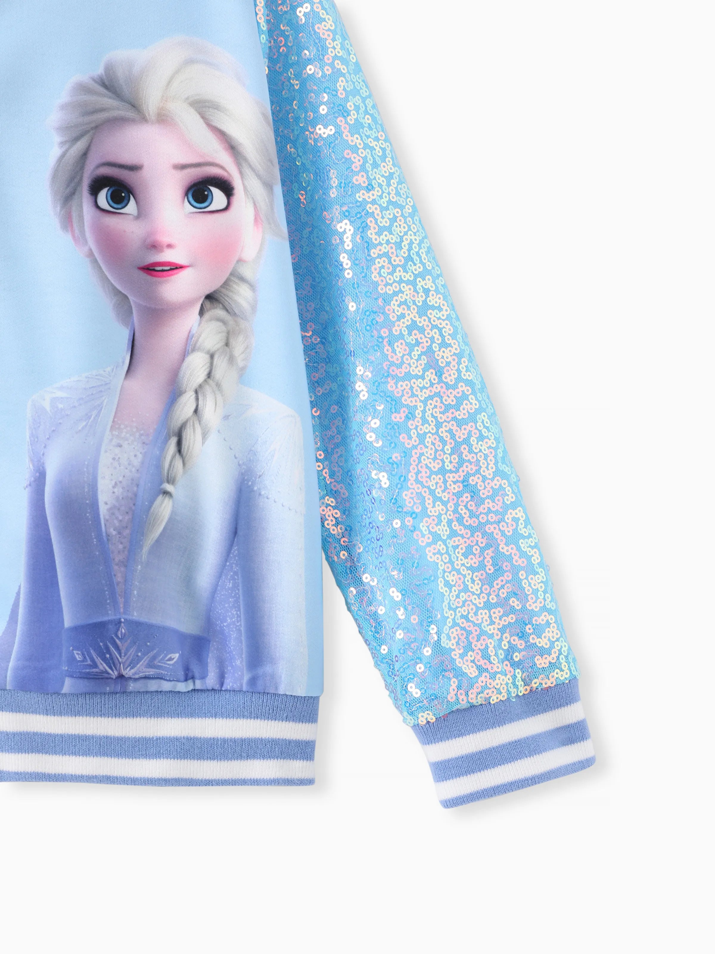 Disney Frozen Toddler Girl Elsa Sequin Hooded Bomber Jacket Blue