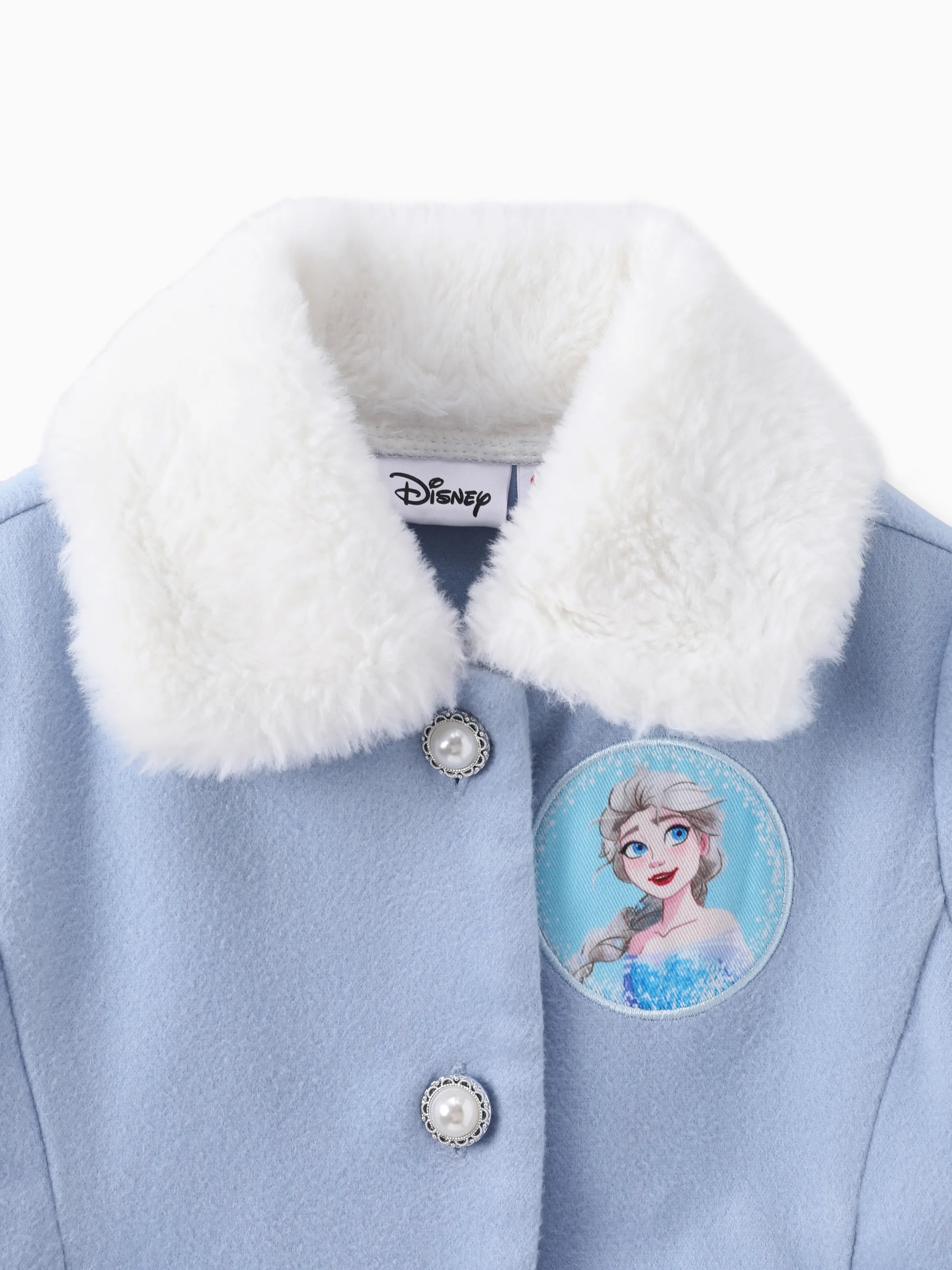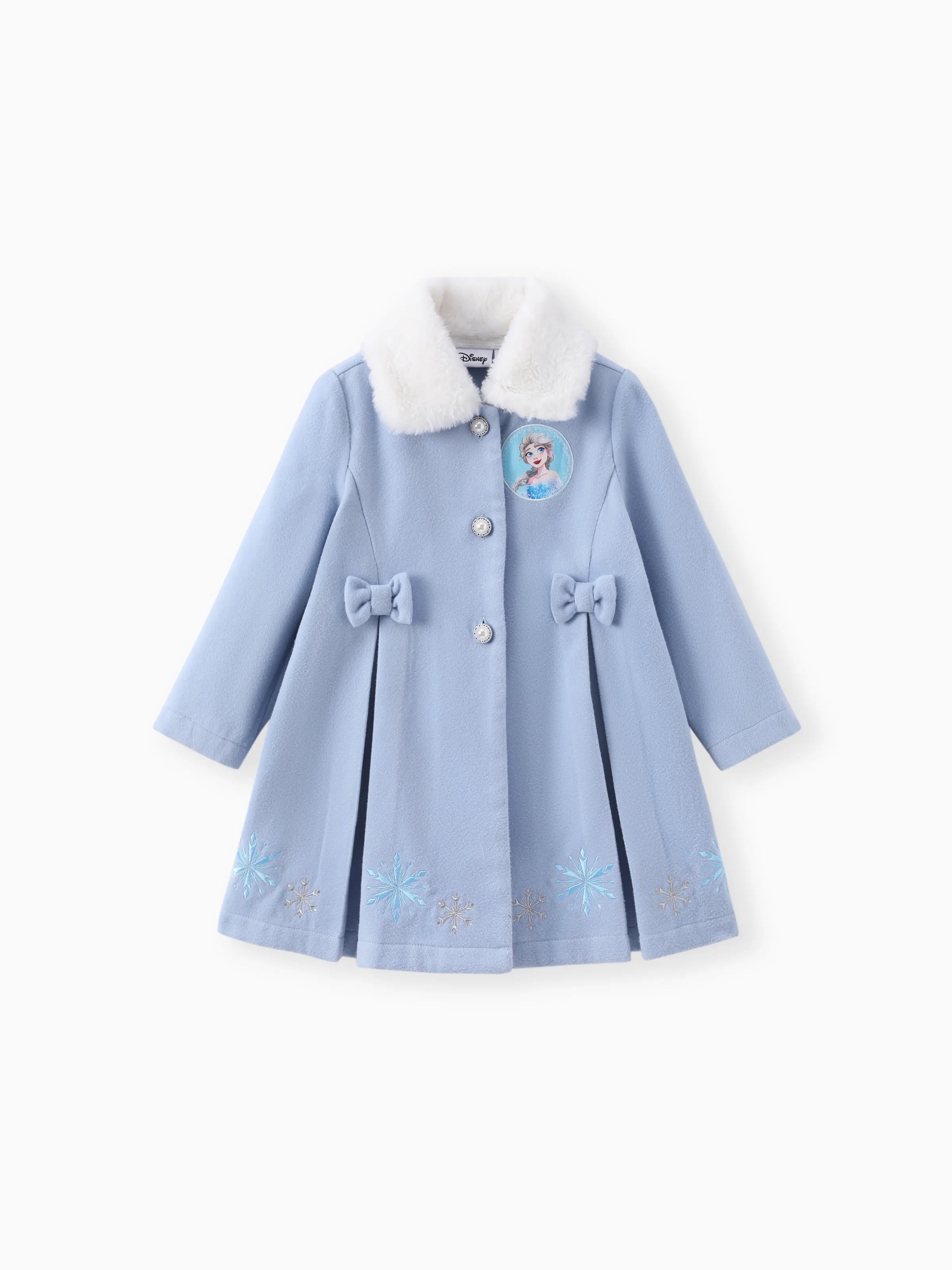Disney Frozen Toddler Girls Elsa Snowflake Embroidered Plush Collar Coat Blue