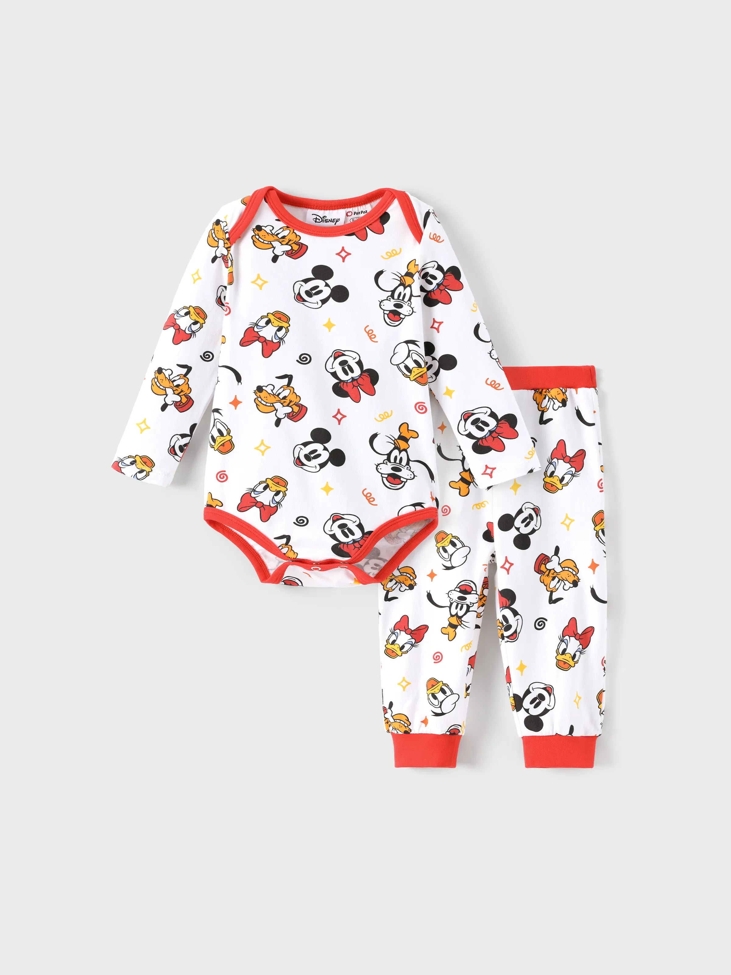 Disney Mickey and Friends Baby Boy 2pcs Mickey/Minnie/Pluto Print Bodysuits and Pants Set Red