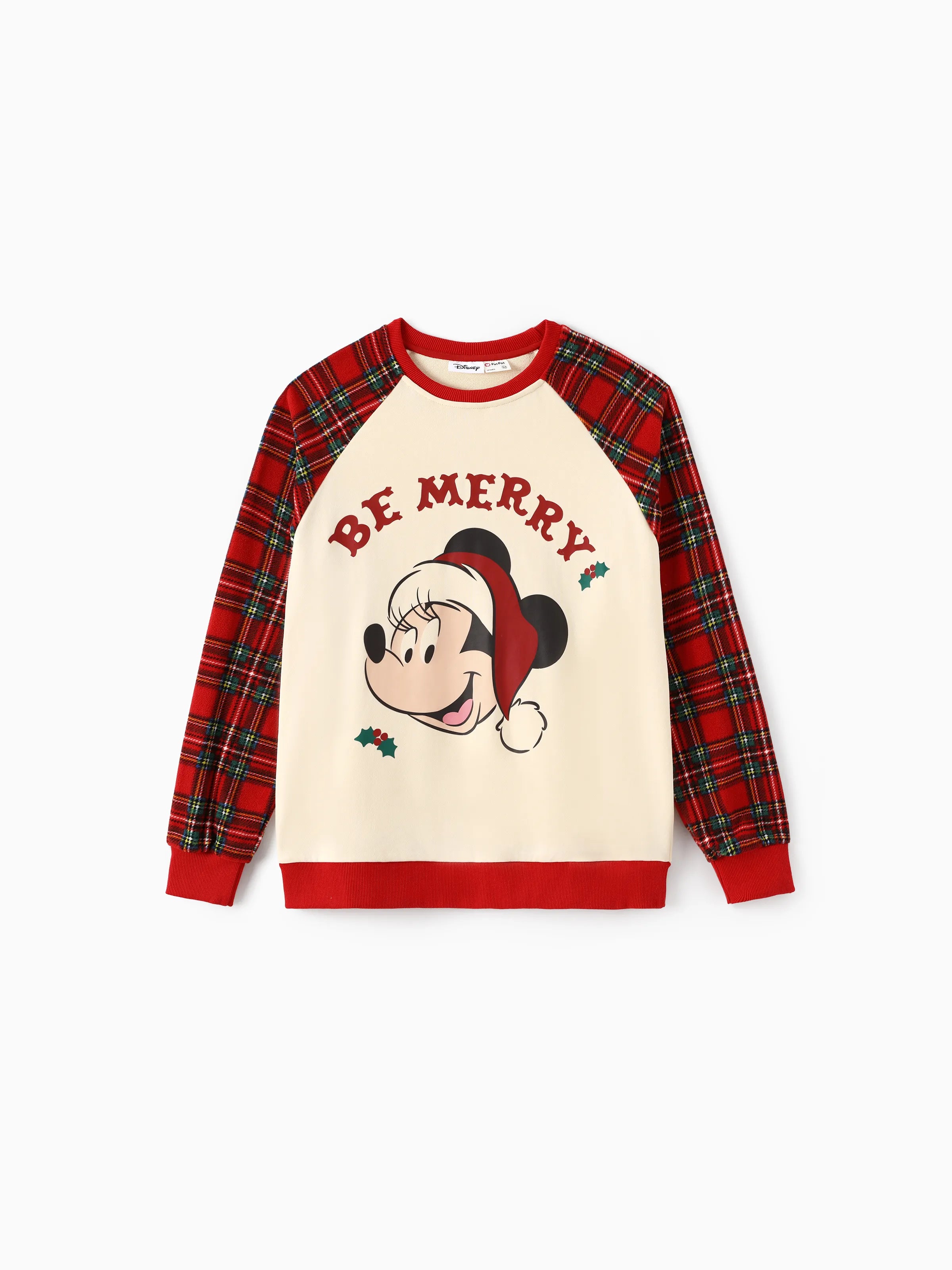 Disney Mickey and Friends Christmas Family Matching Plaid Print Sweatshirt Red