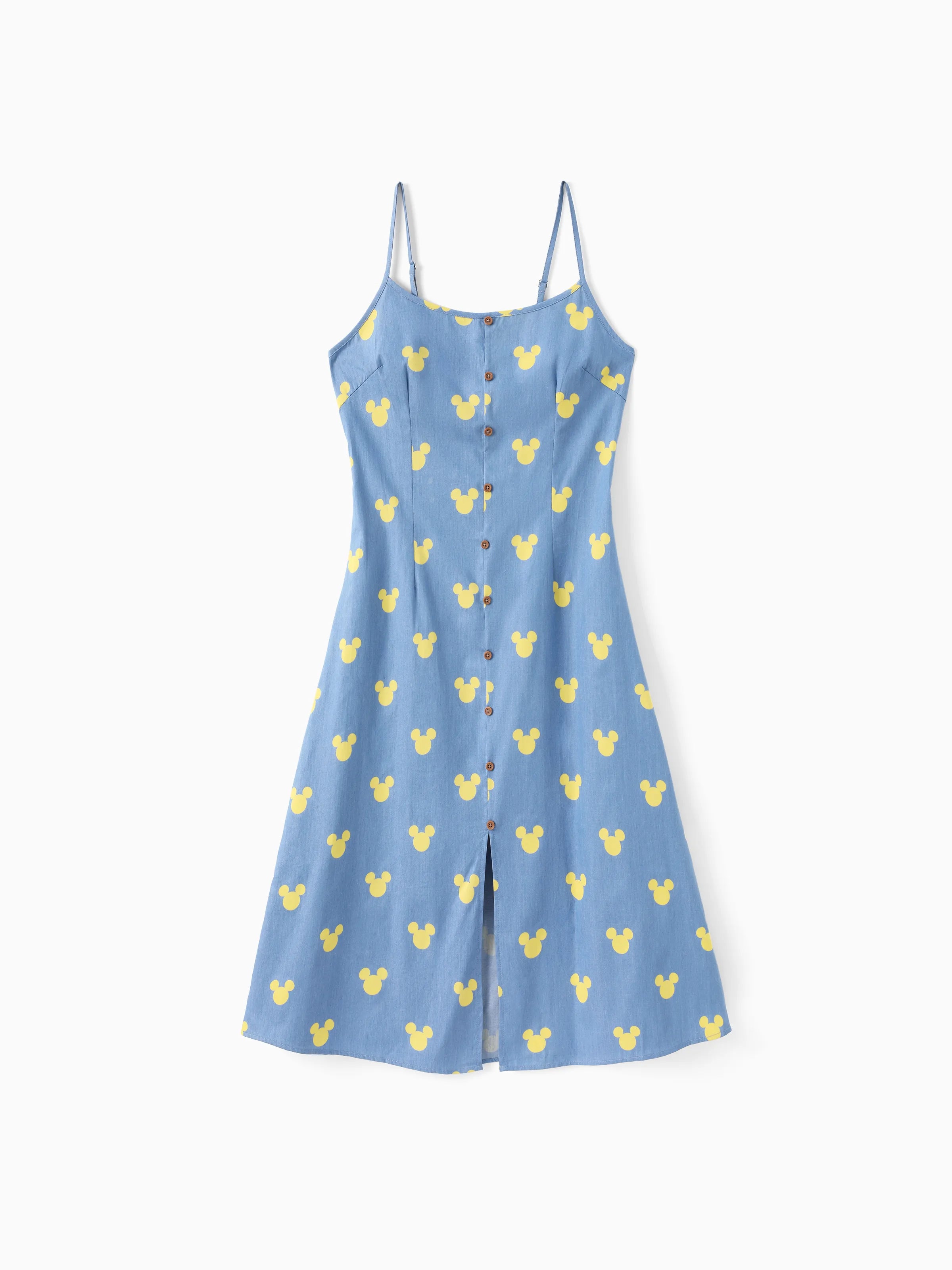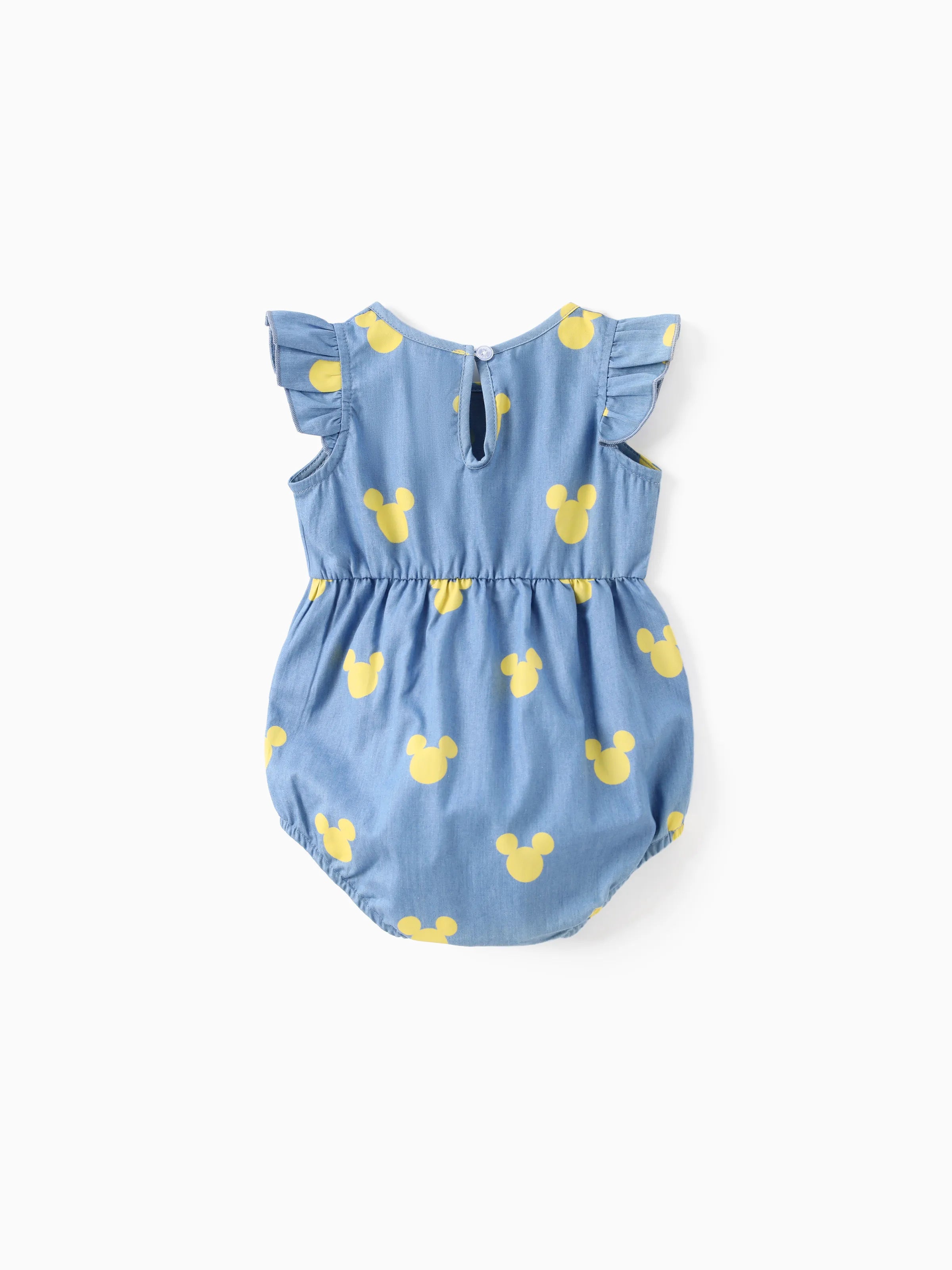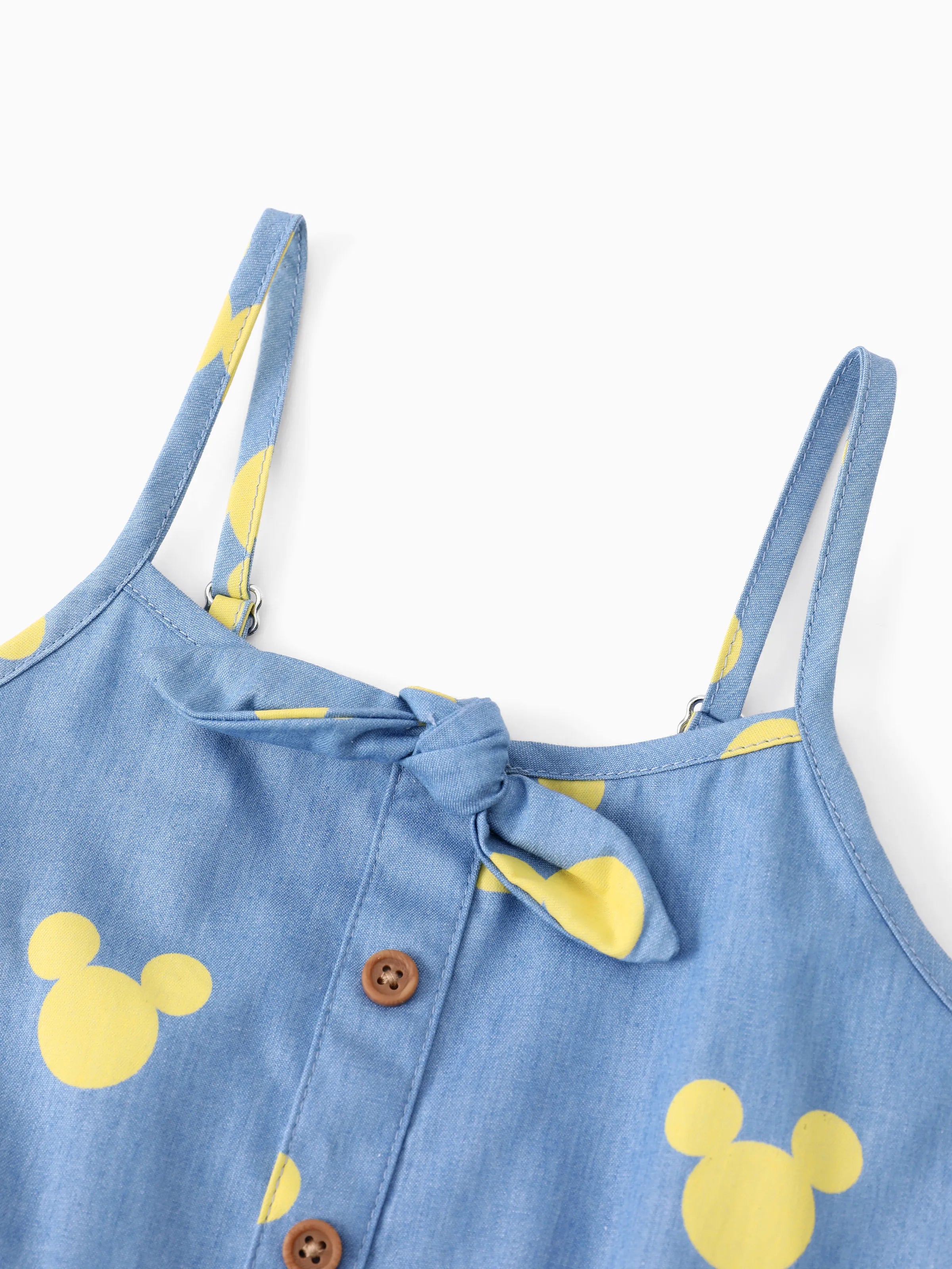 Disney Mickey and Friends Family matching Mickey Mouse Allover Print Denim Dresse/Jumpsuit/T-shirt Blue