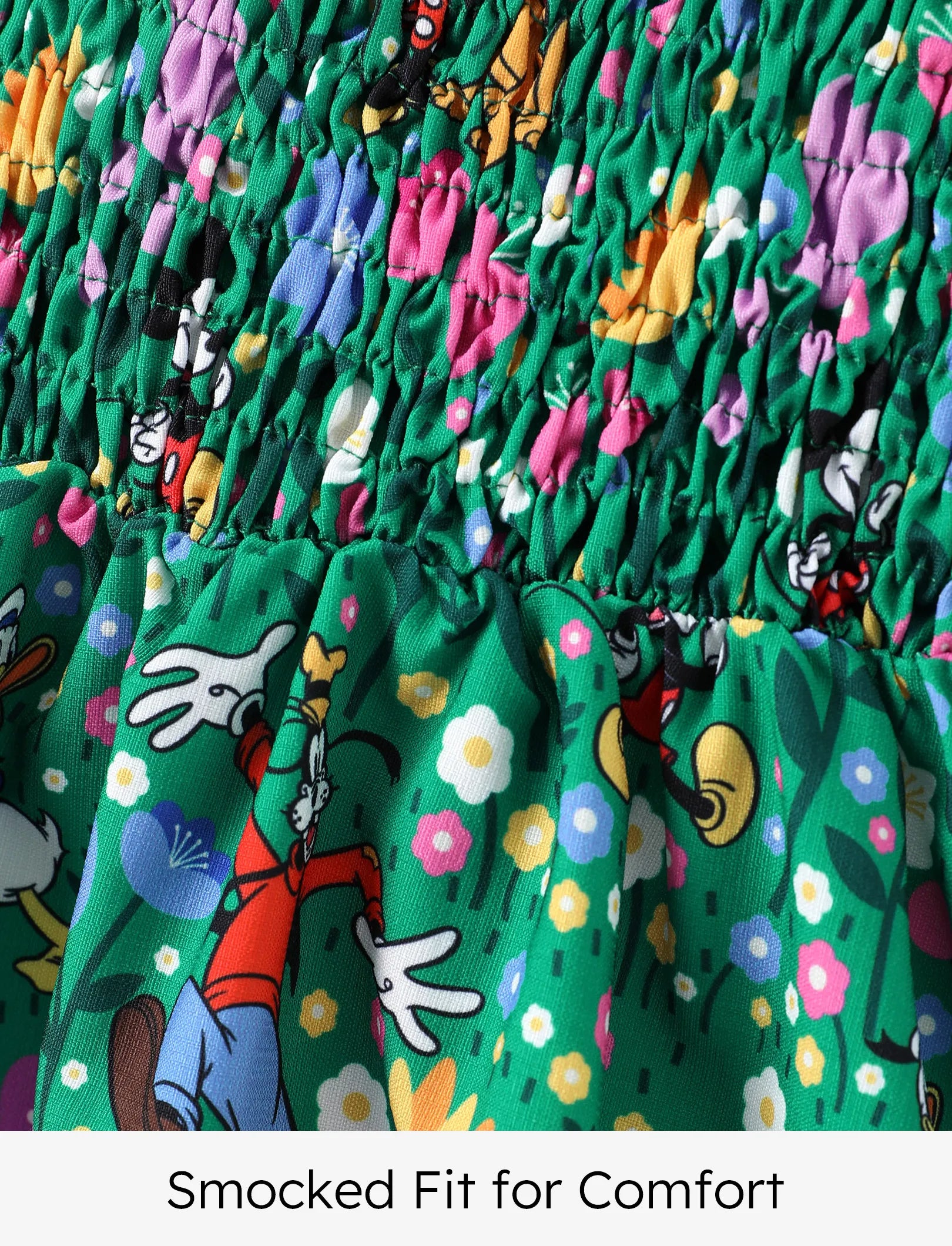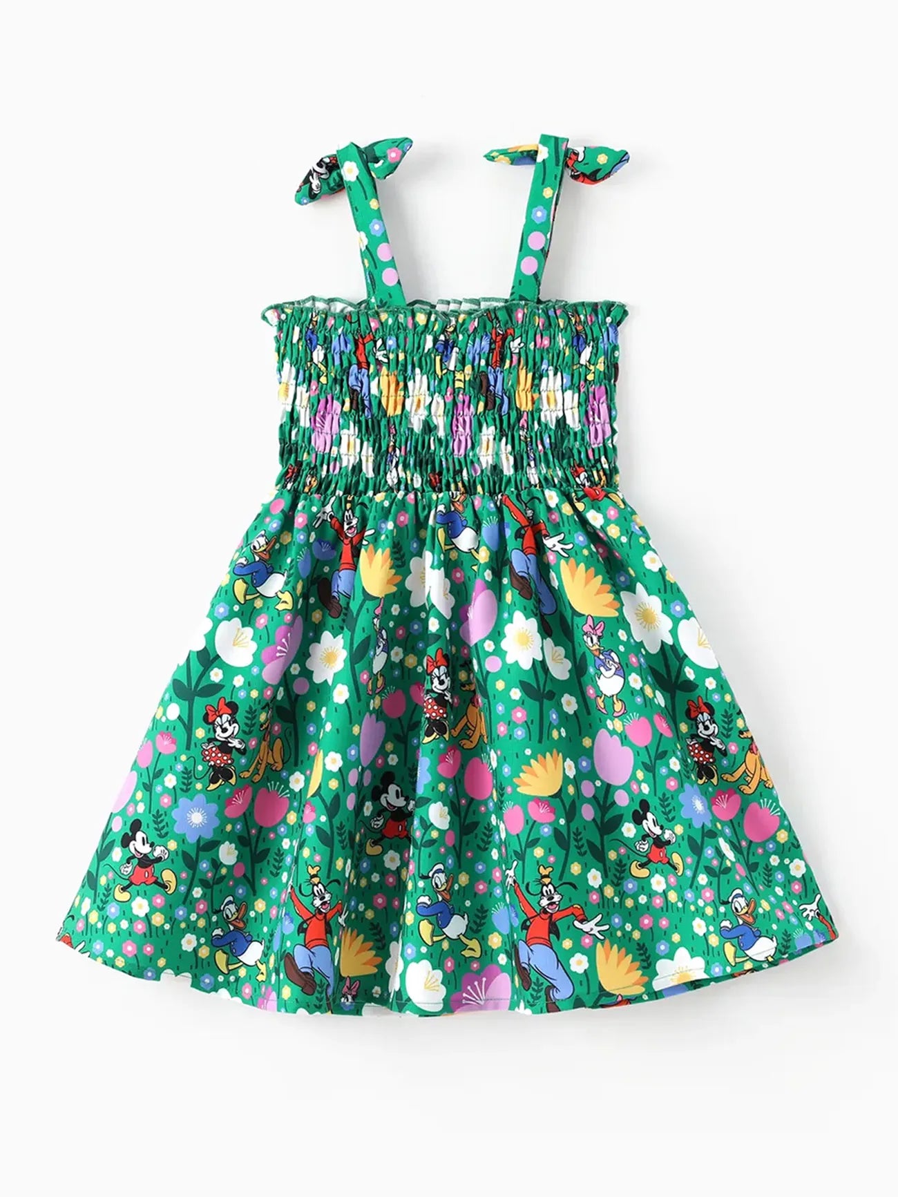 Disney Mickey and Friends Toddler Girl 1pc Minnie Floral Allover Print Bowknot Smocked Sundress Green