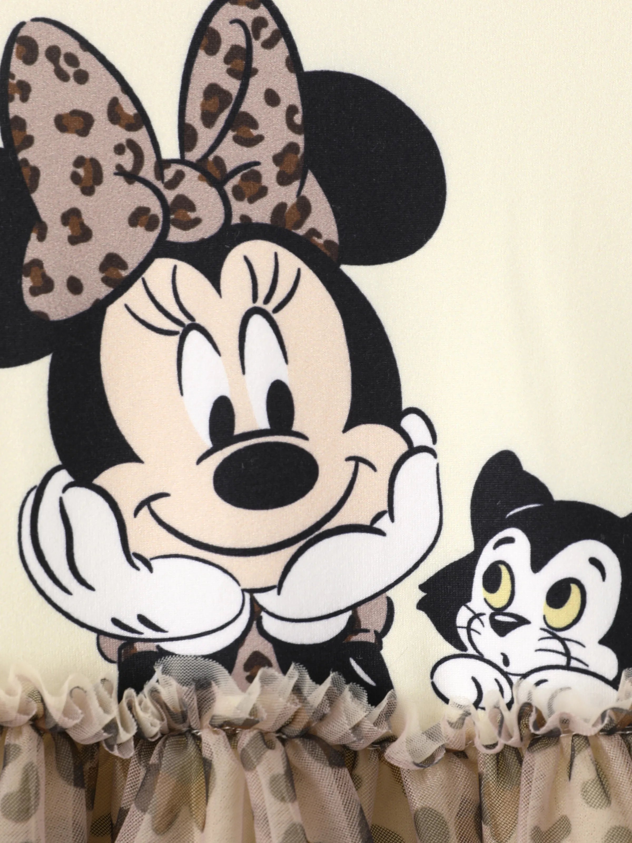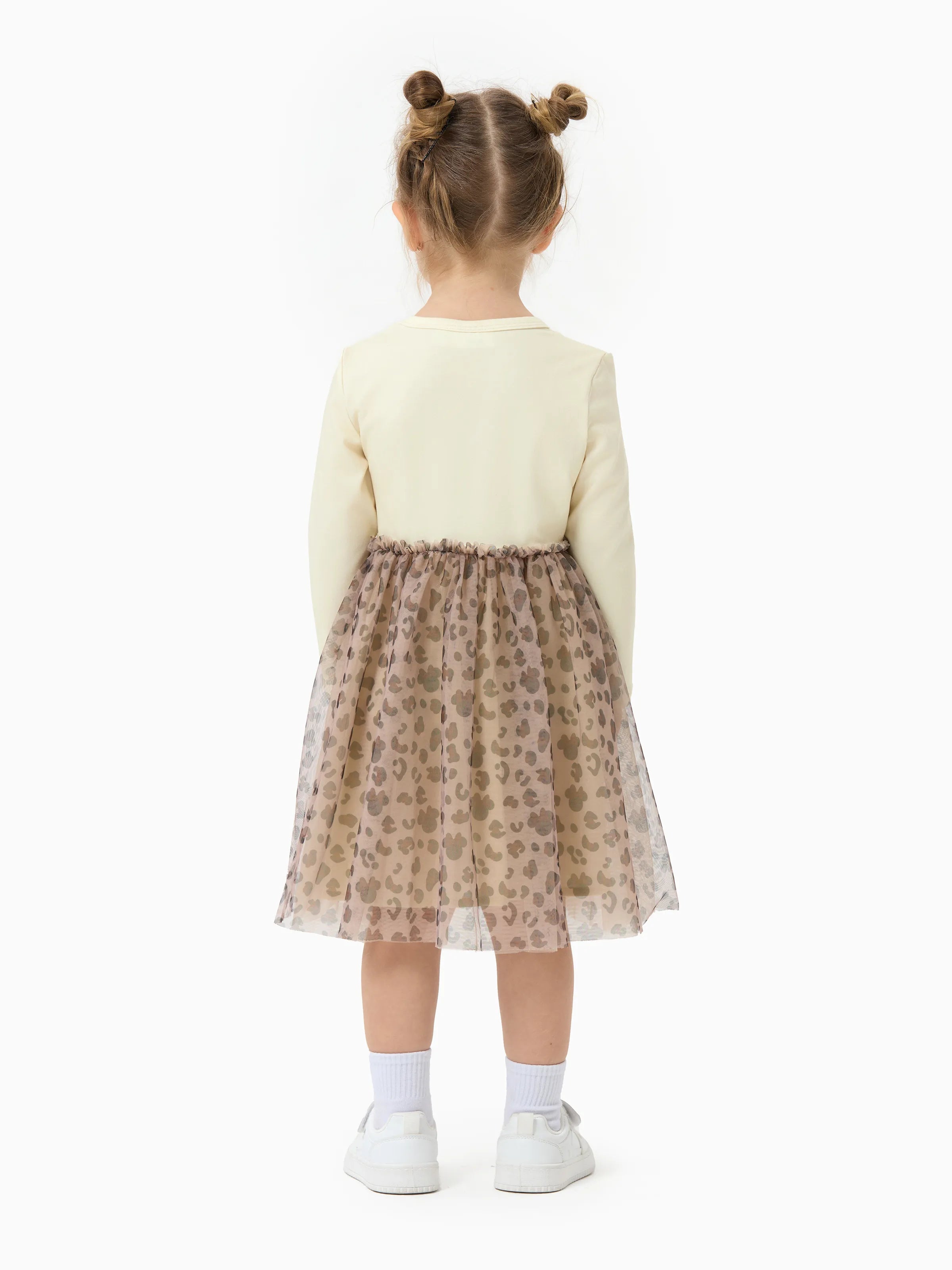 Disney Mickey and Friends Toddler Girl Christmas Minnie Mouse Graphic Long Sleeve Tulle Dress Khaki