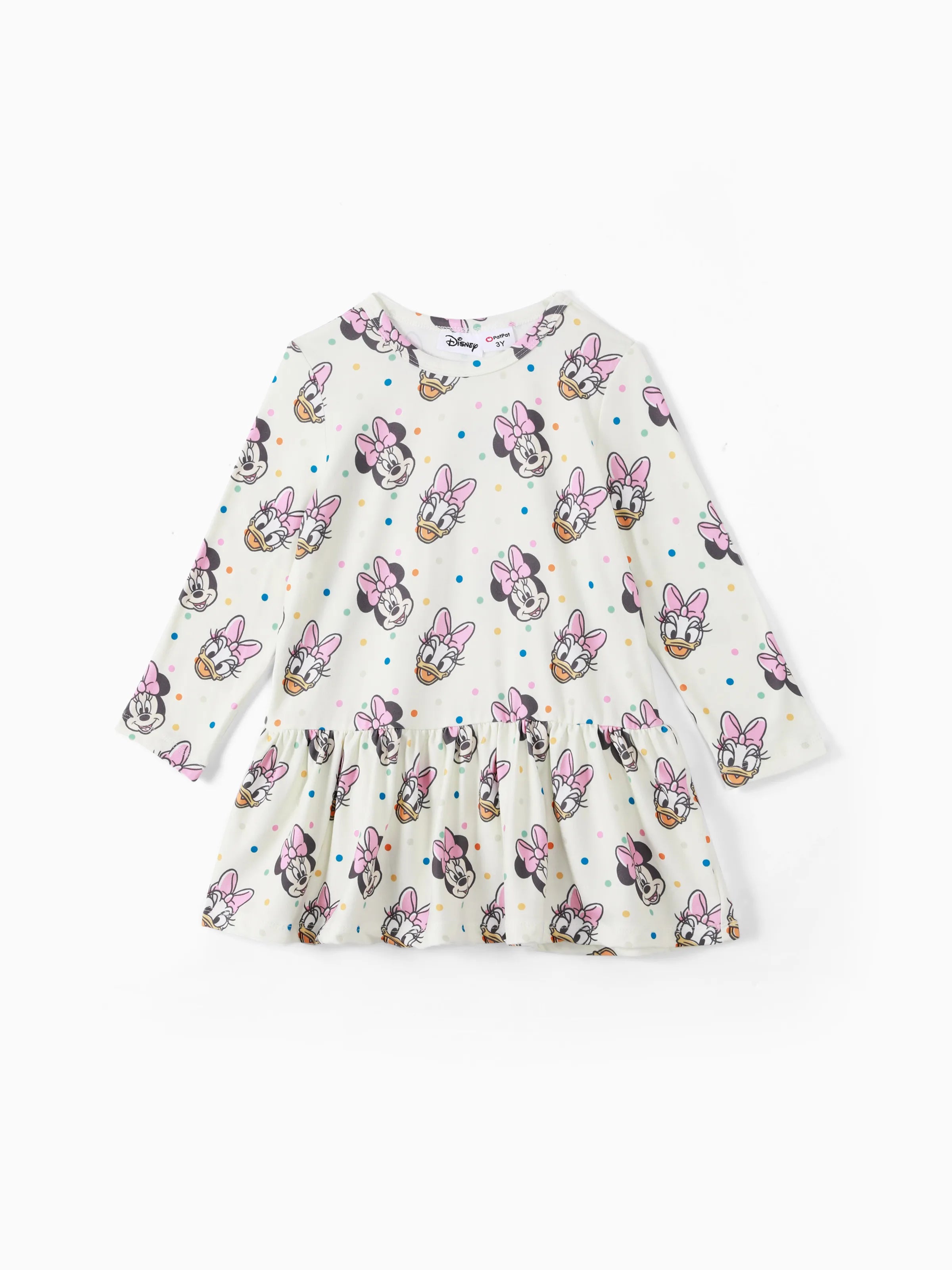Disney Mickey and Friends Toddler Girl Minnie Polka Dot/Stripe Digital Print Dress Apricot