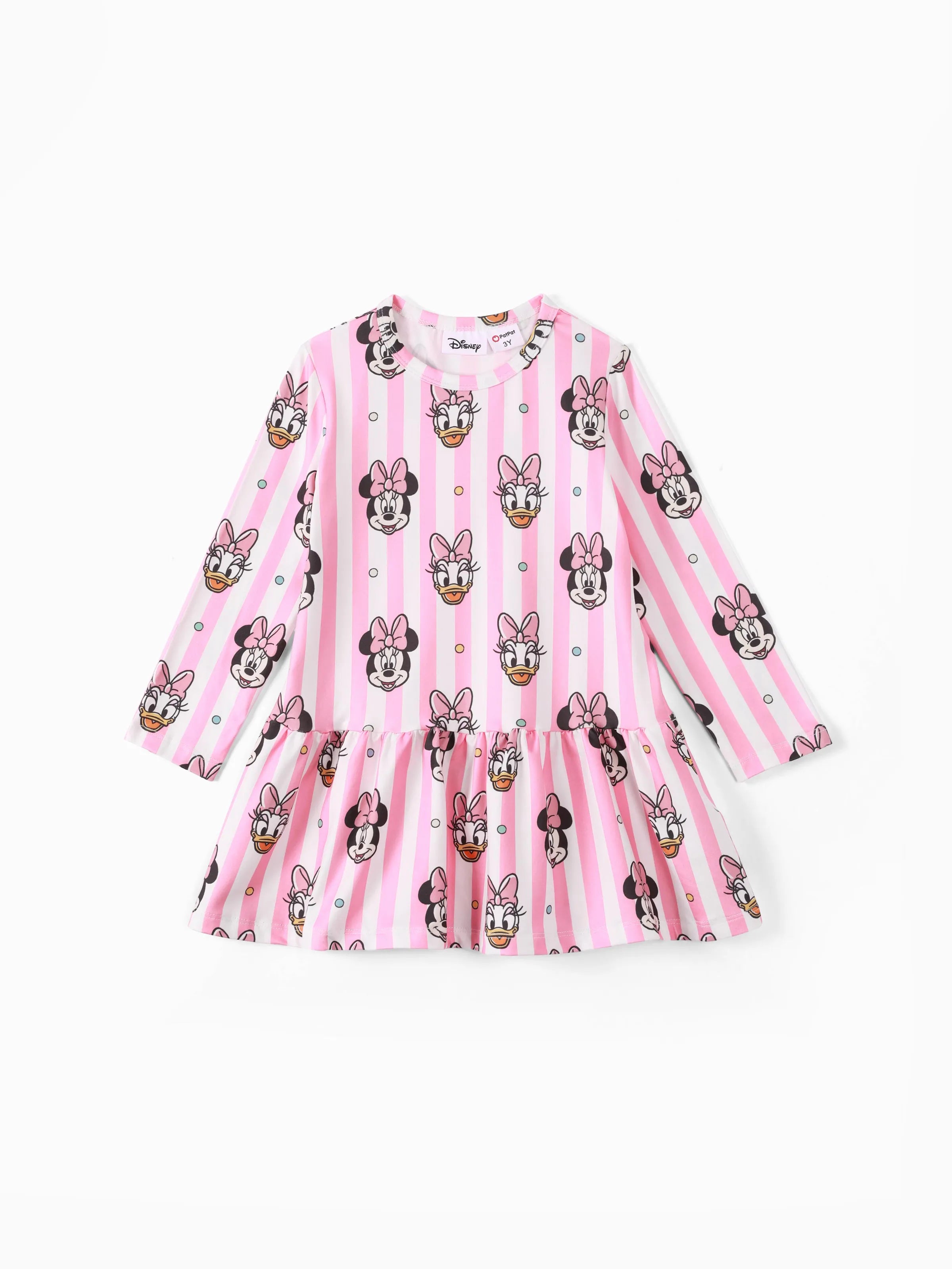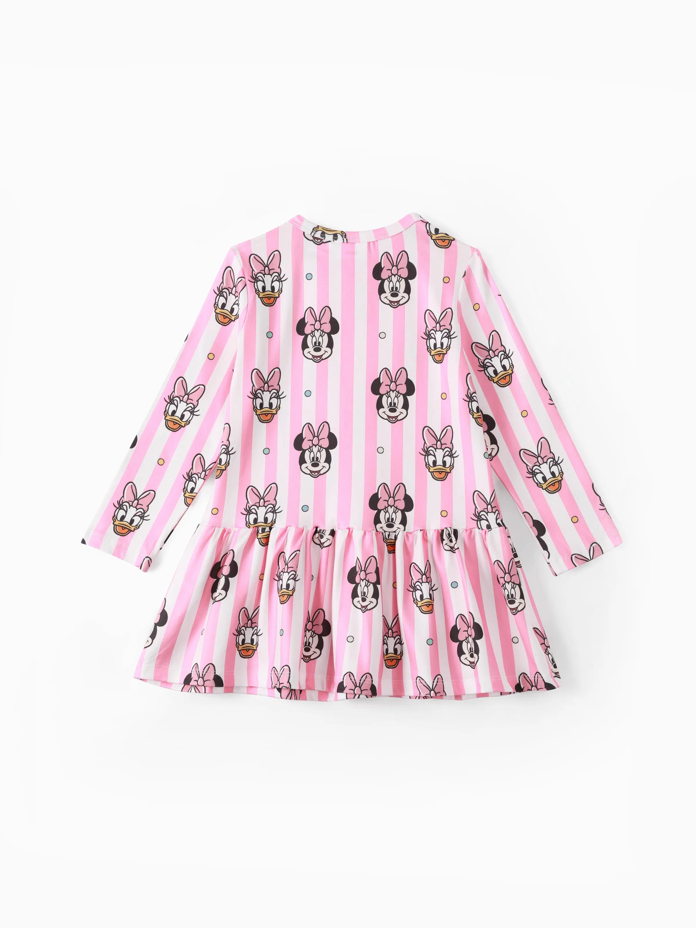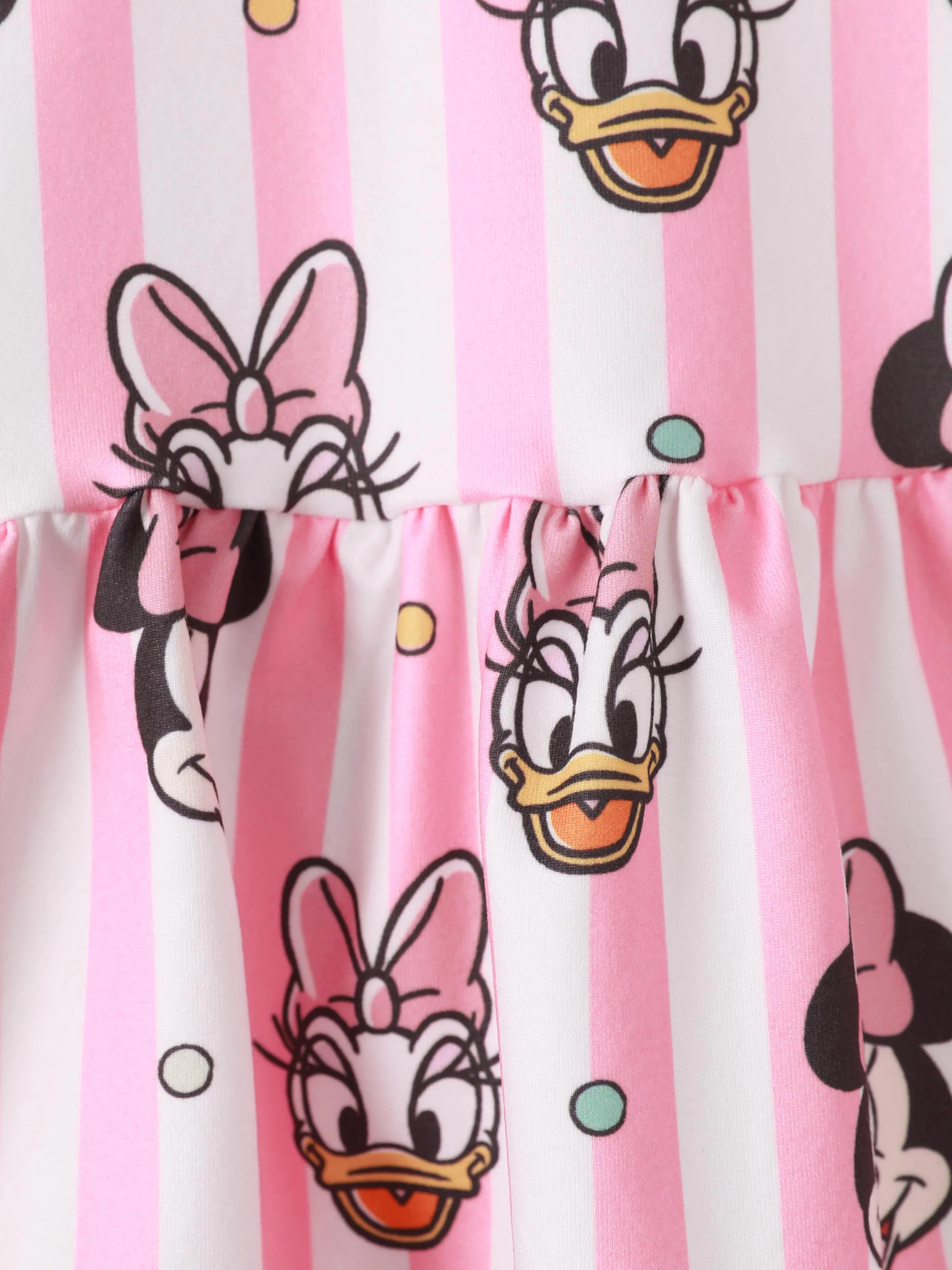 Disney Mickey and Friends Toddler Girl Daisy Polka Dot/Stripe Digital Print Dress Pink