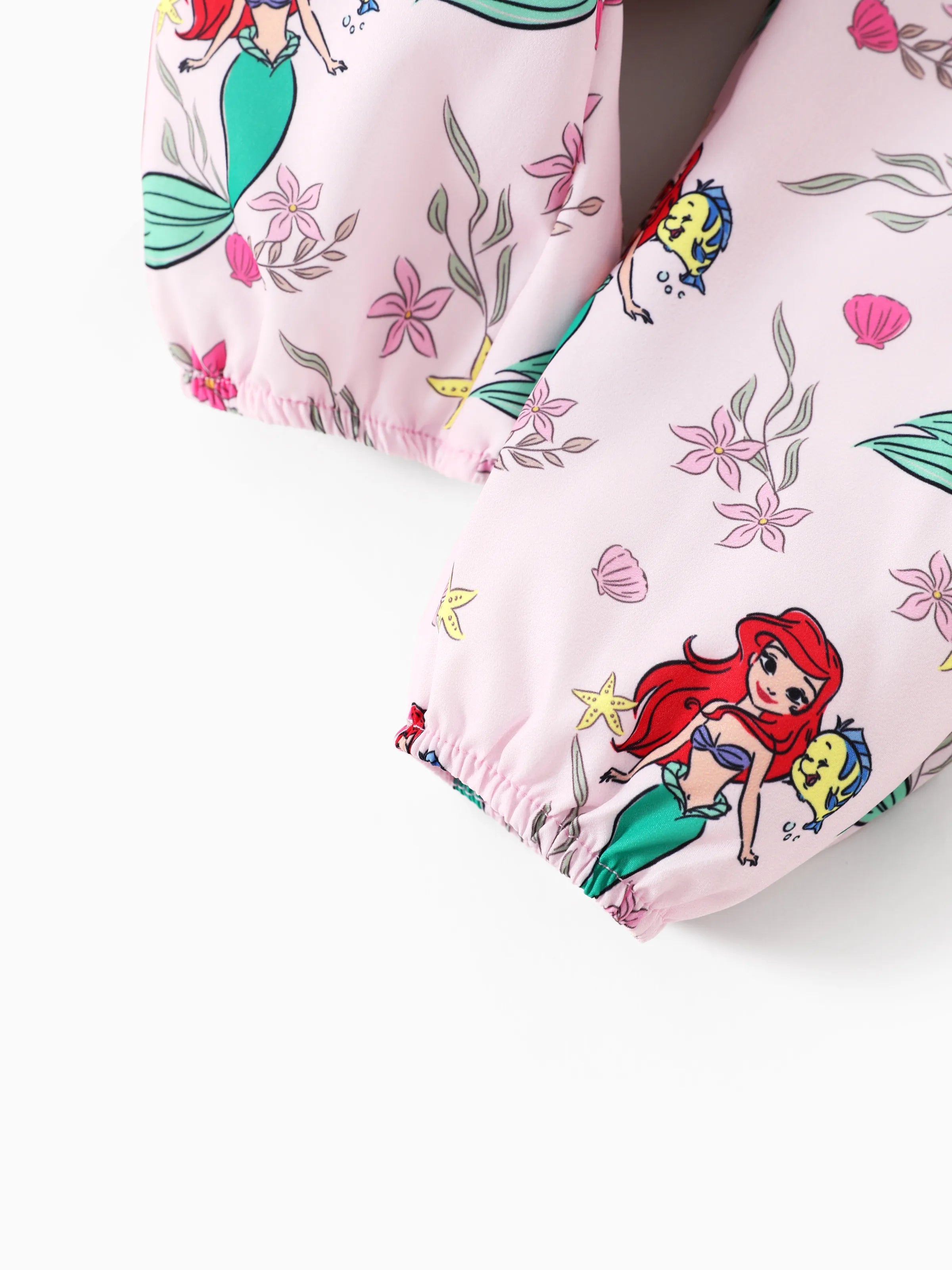 Disney Princess Baby Girl Ariel 3pcs Ruffle Romper and Pants with Headband Set Hot Pink