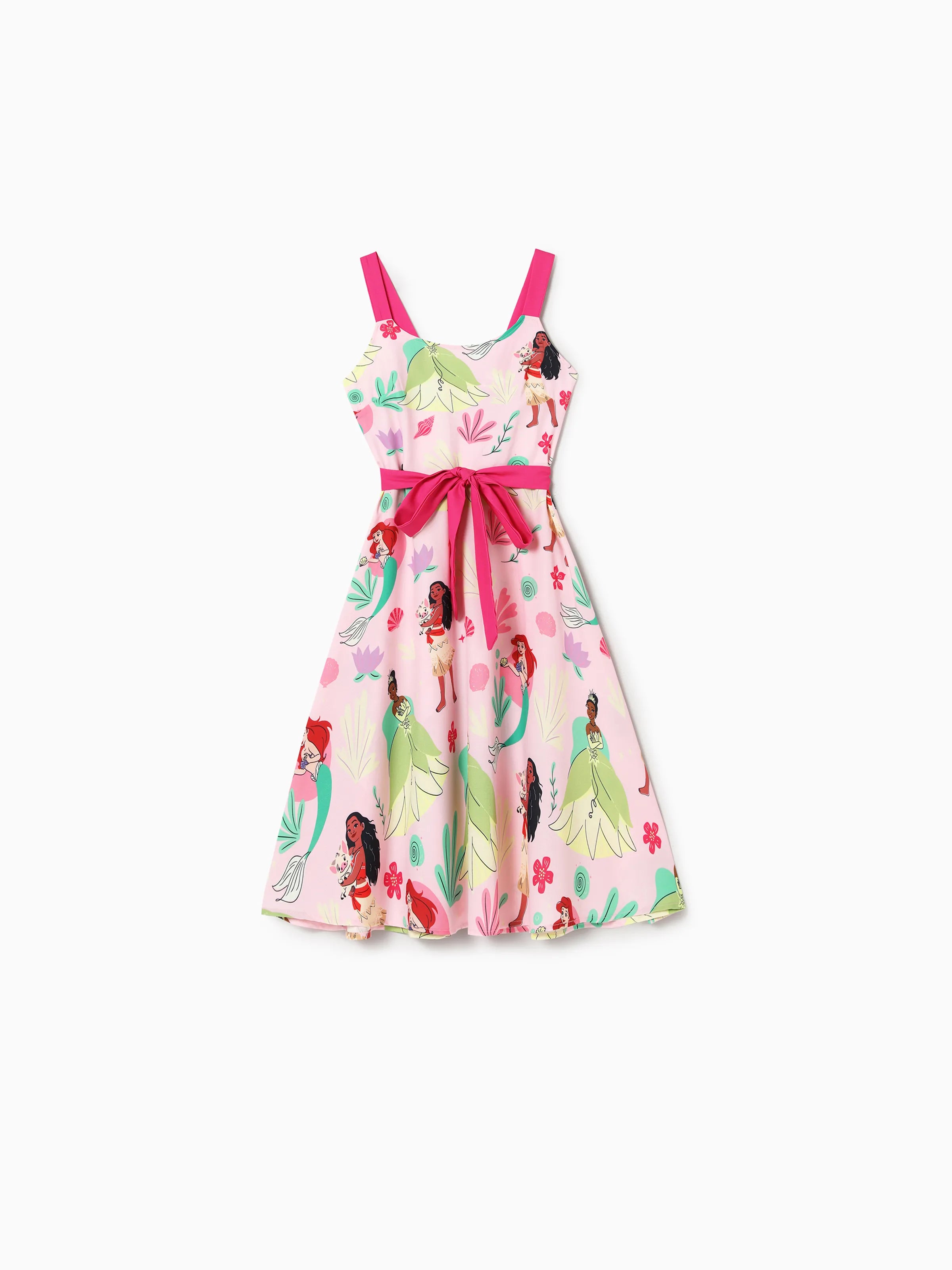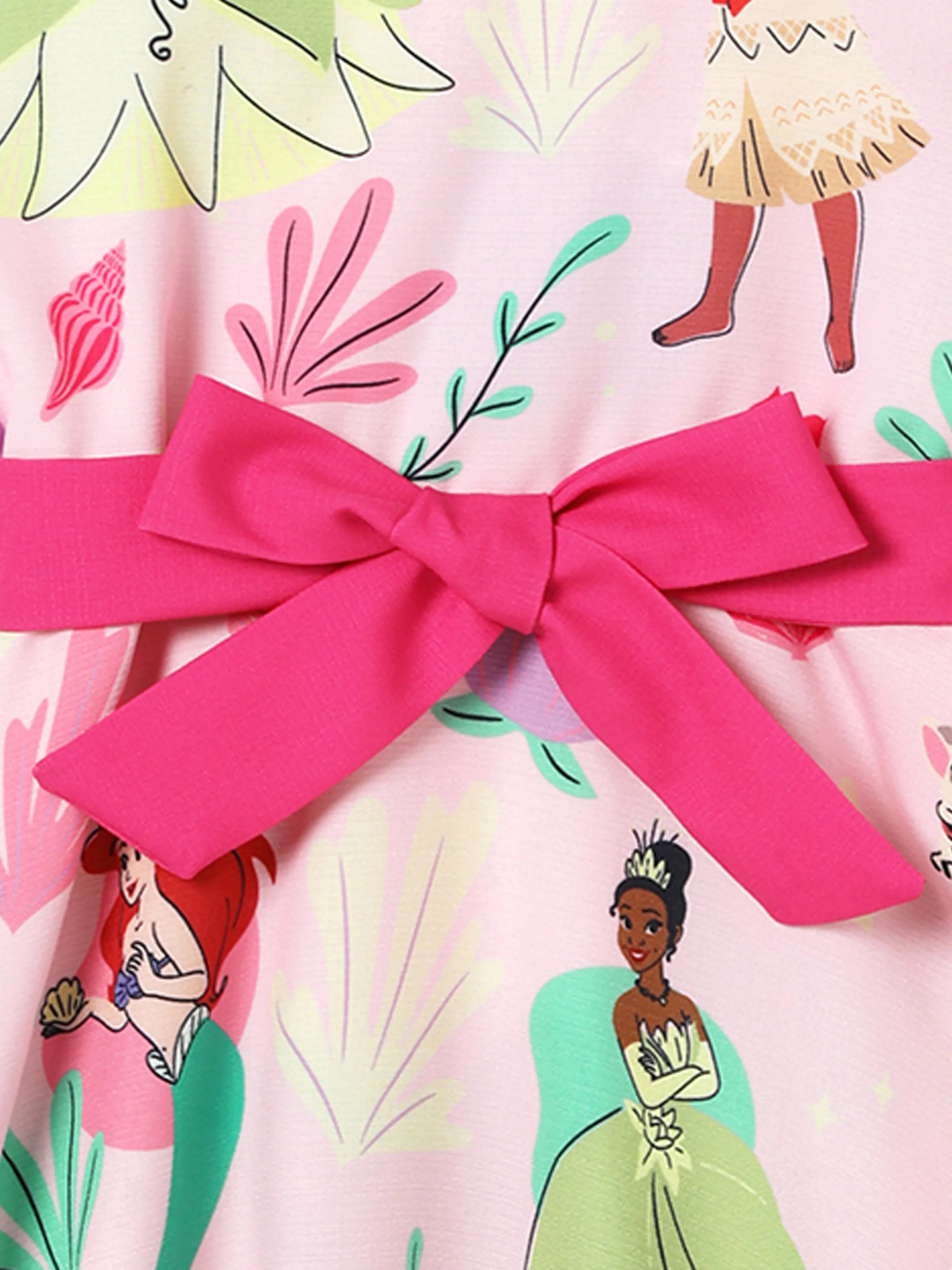 Disney Princess Mommy and Me Moana/Tiana Character and Floral Allover Print Dress Pink