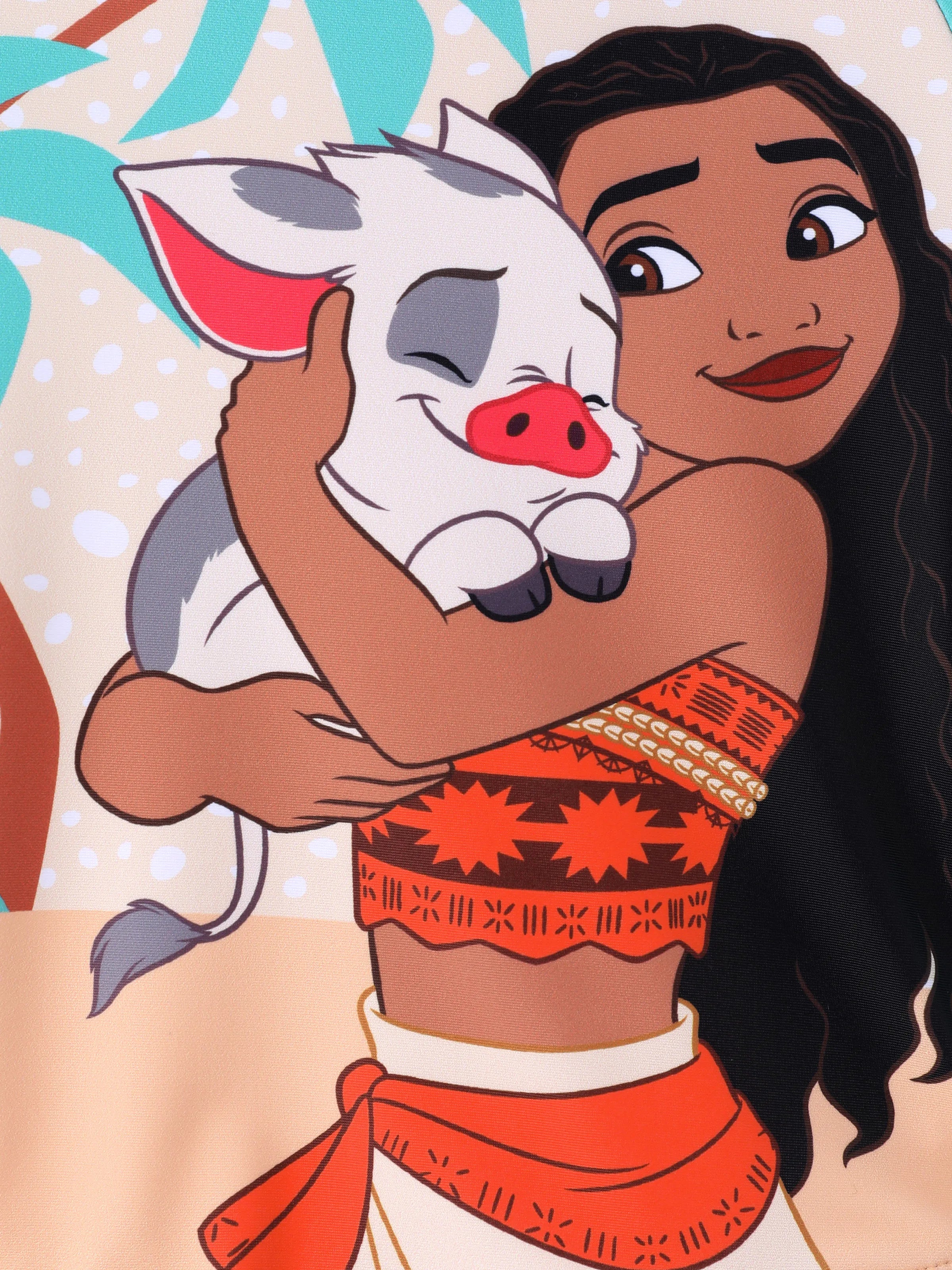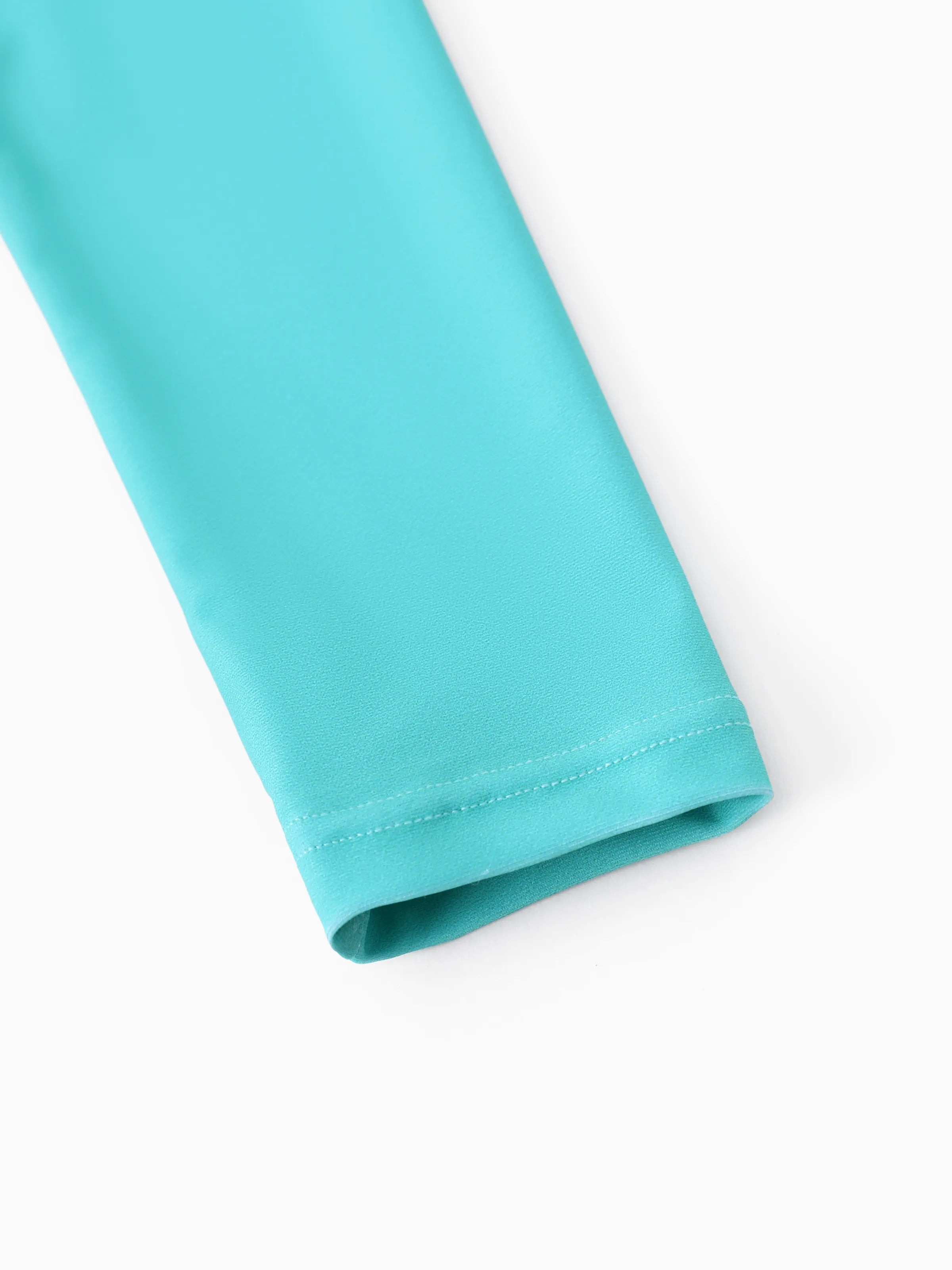Disney Princess Toddler Girl 1pc Moana Colorblock Ruffled Zipper UPF 40+ Long-sleeve Swimsuit Turquoise
