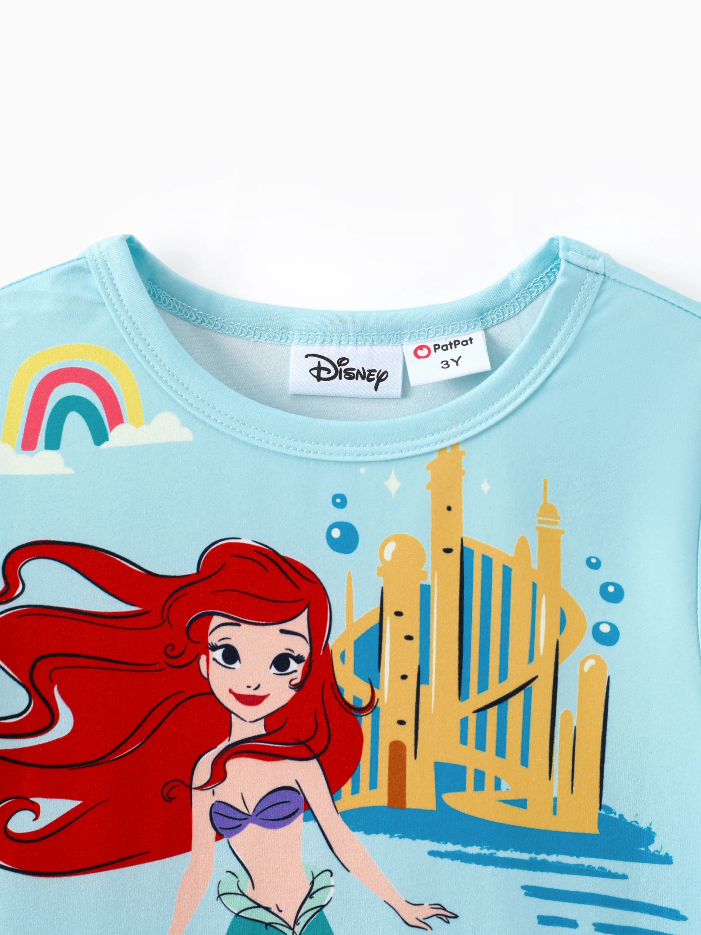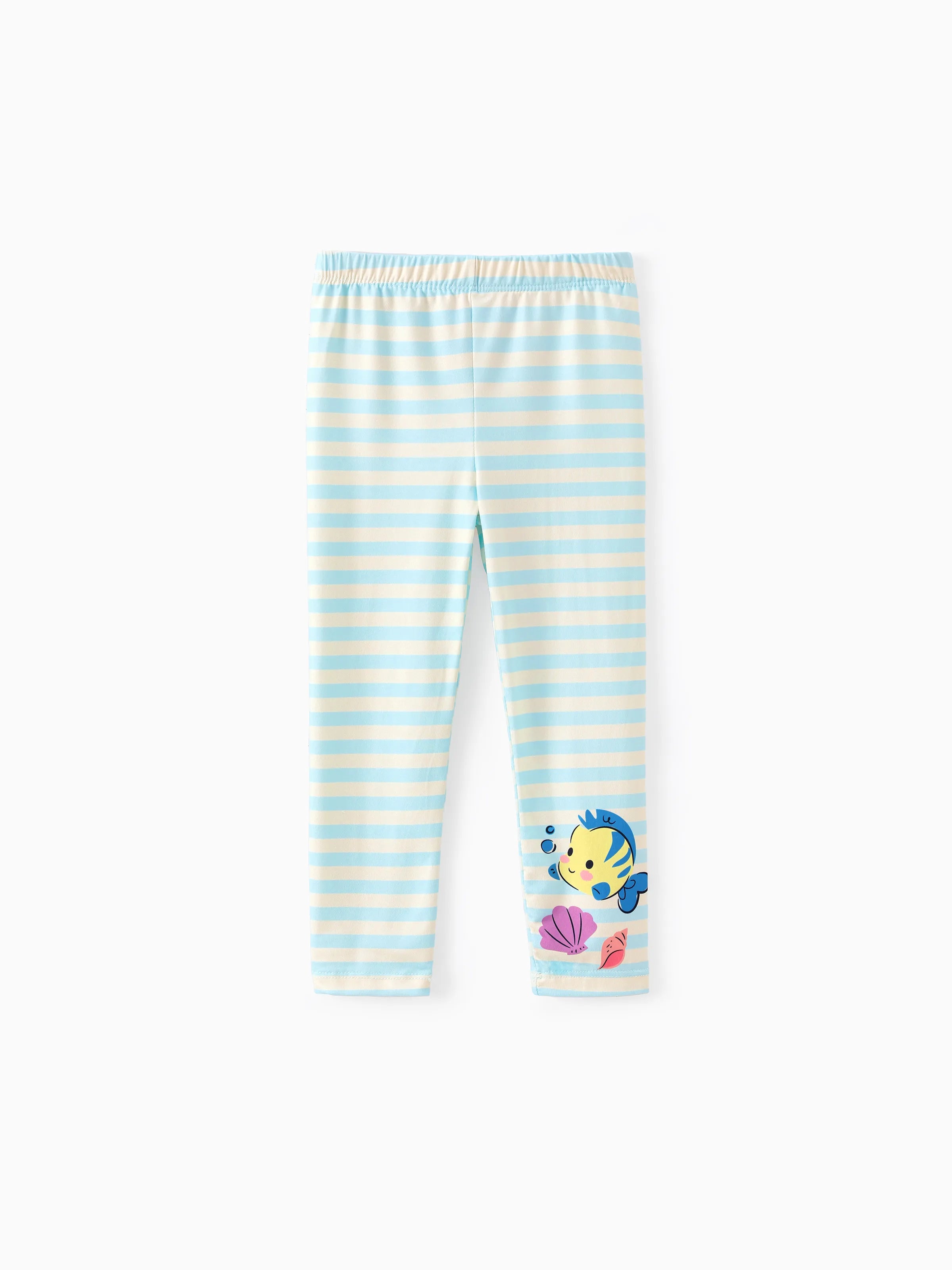 Disney Princess Toddler Girl 2pcs Ariel Print Peplum Tee and Stripe Pants Set Mintblue