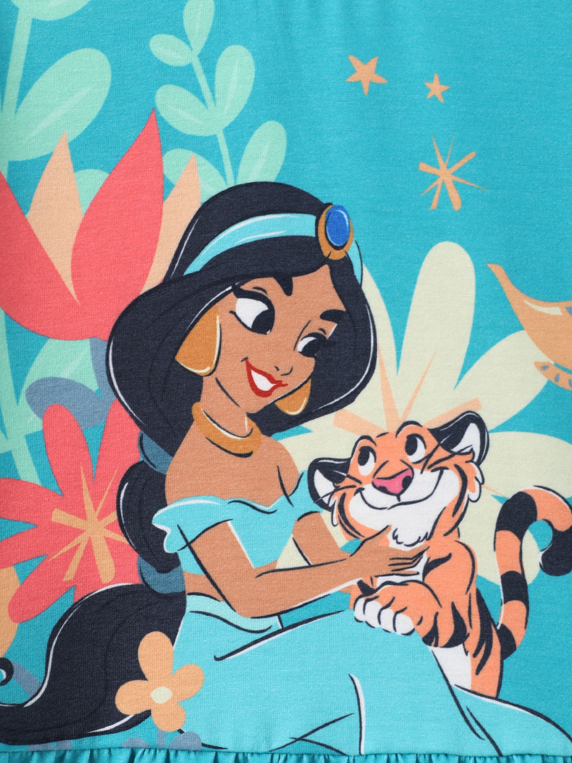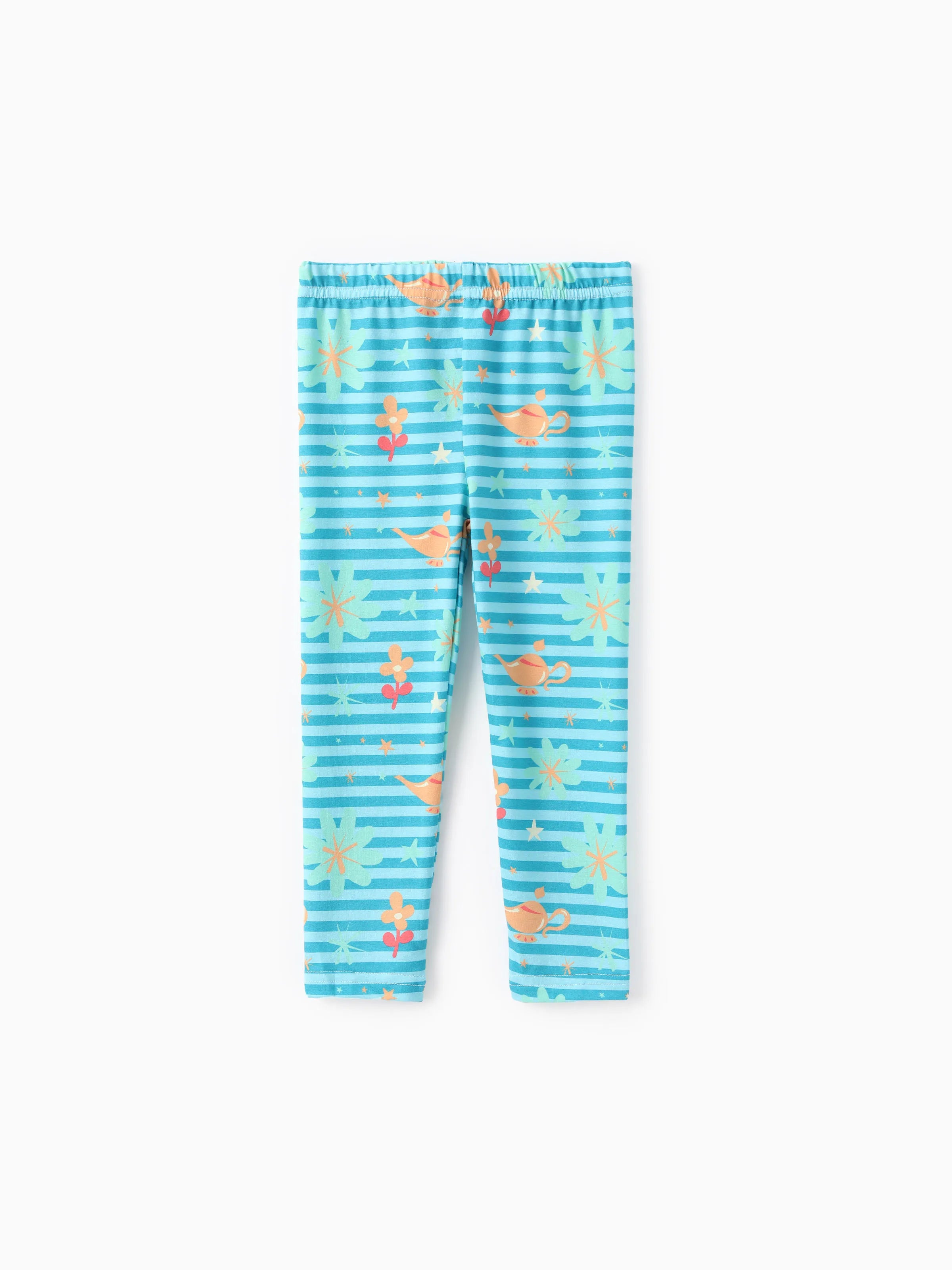 Disney Princess Toddler Girl 2pcs Naia? Jasmine Ruffle-hem Long-sleeve Top And Floral/Shell Stripe Pattern Leggings Set Green
