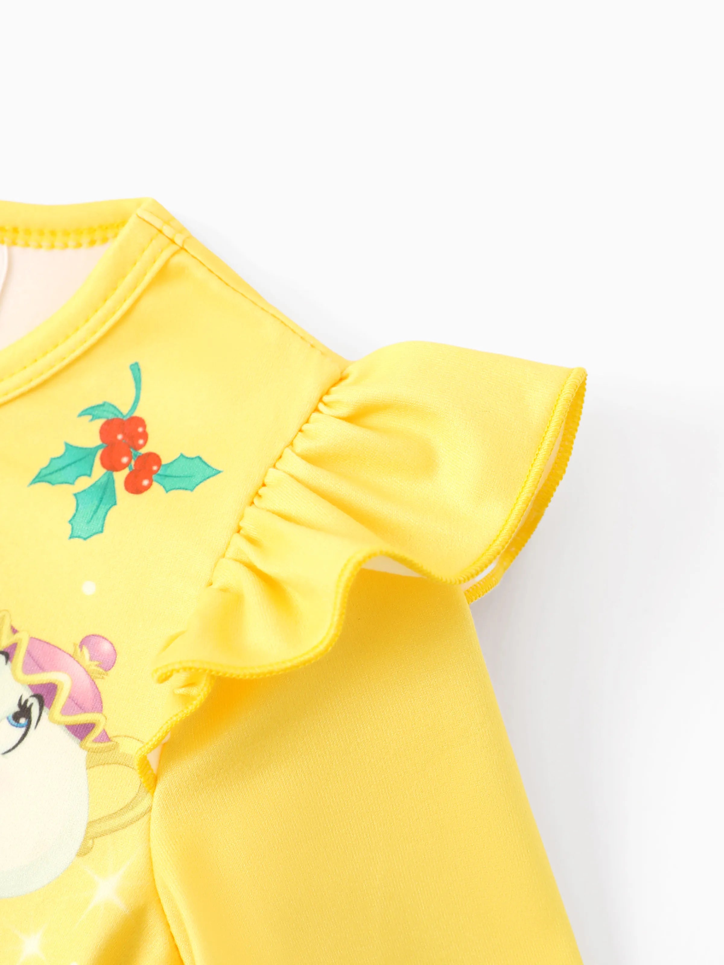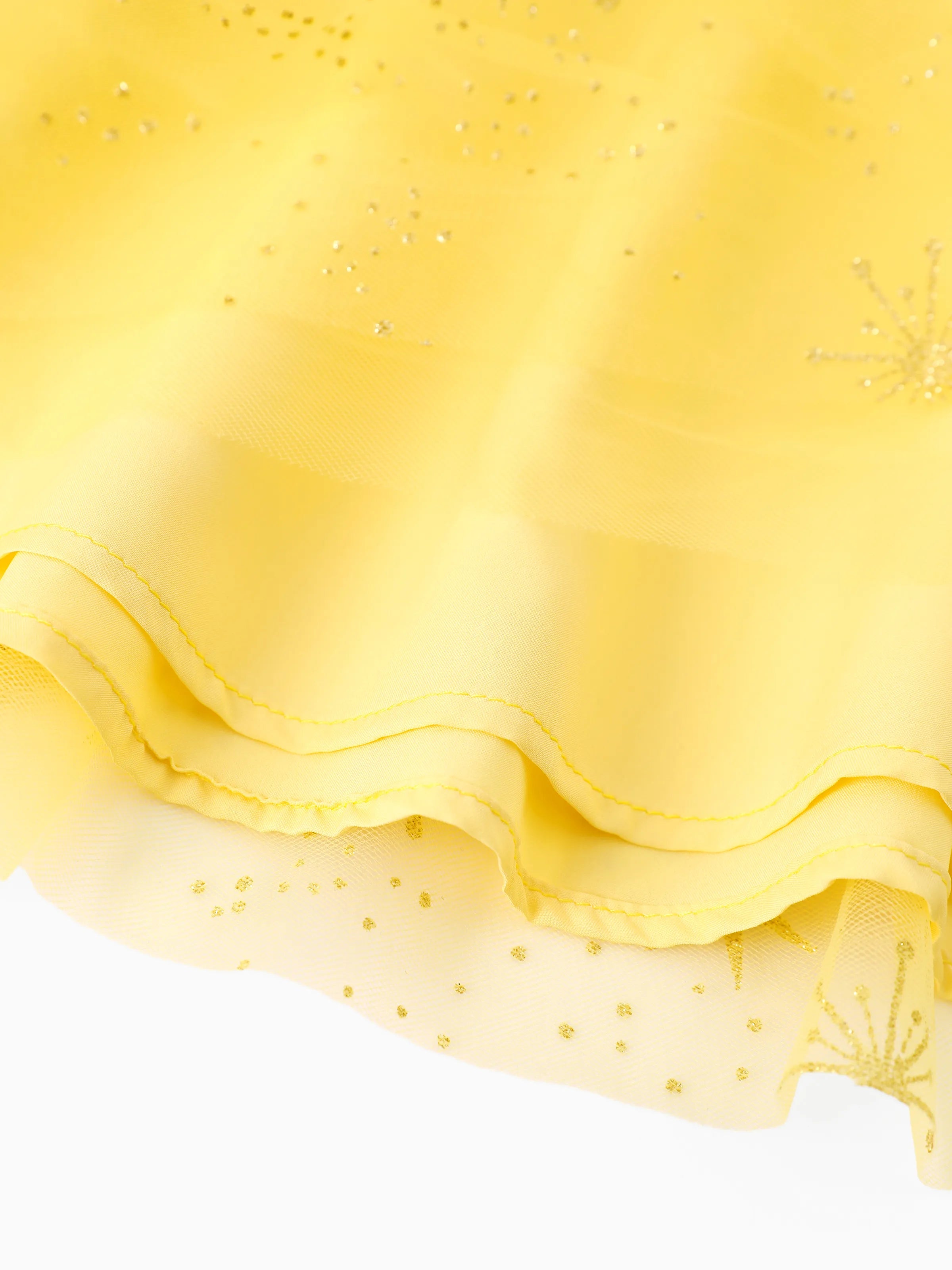 Disney Princess Toddler Girl Belle Ruffled Longsleeves Tulle Dress Yellow