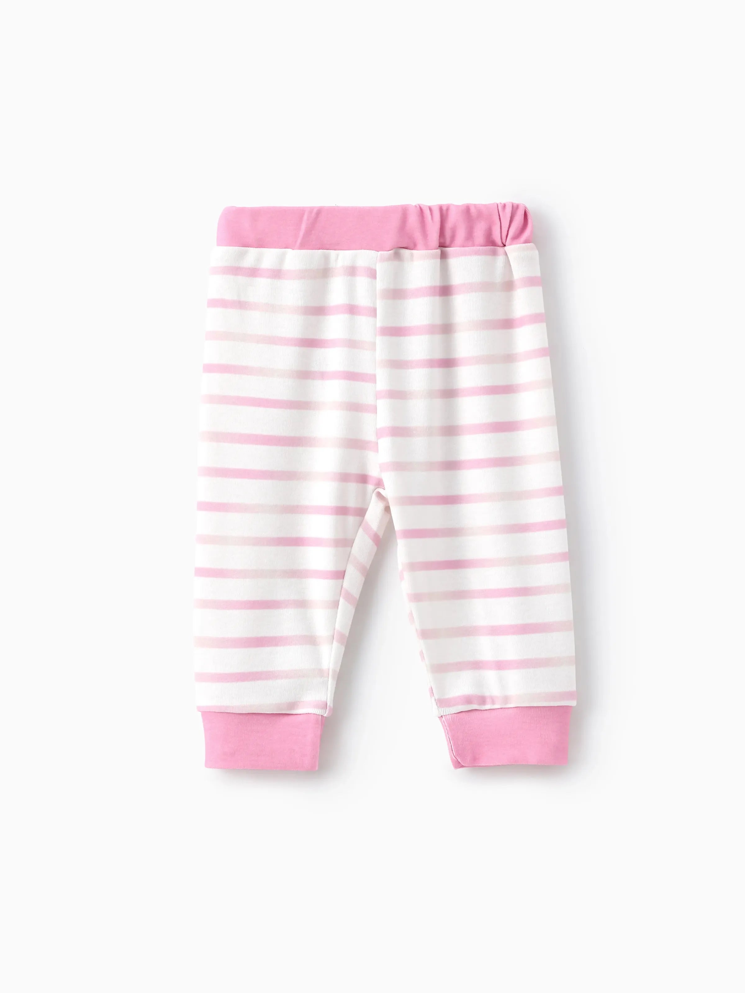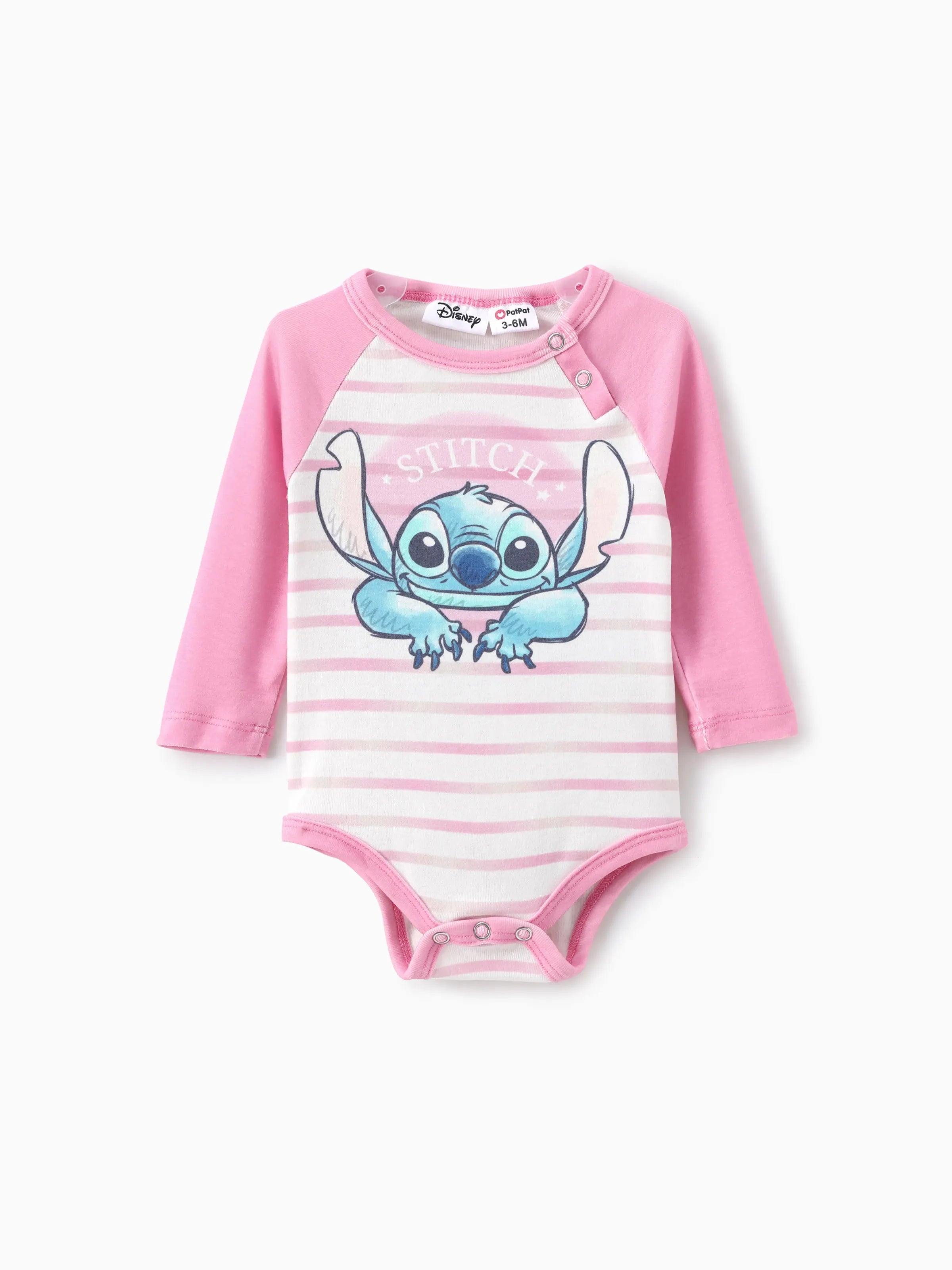 Disney Stitch Baby Girl 2pcs Naia? Character Striped Print Long-sleeve Romper with Pants Set Pink