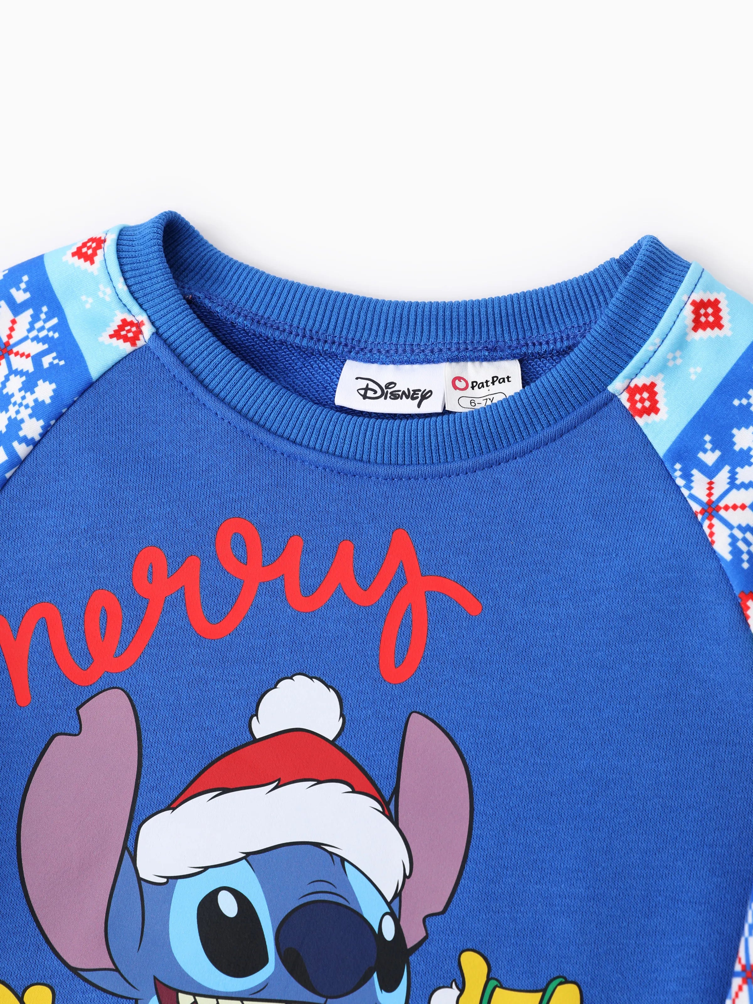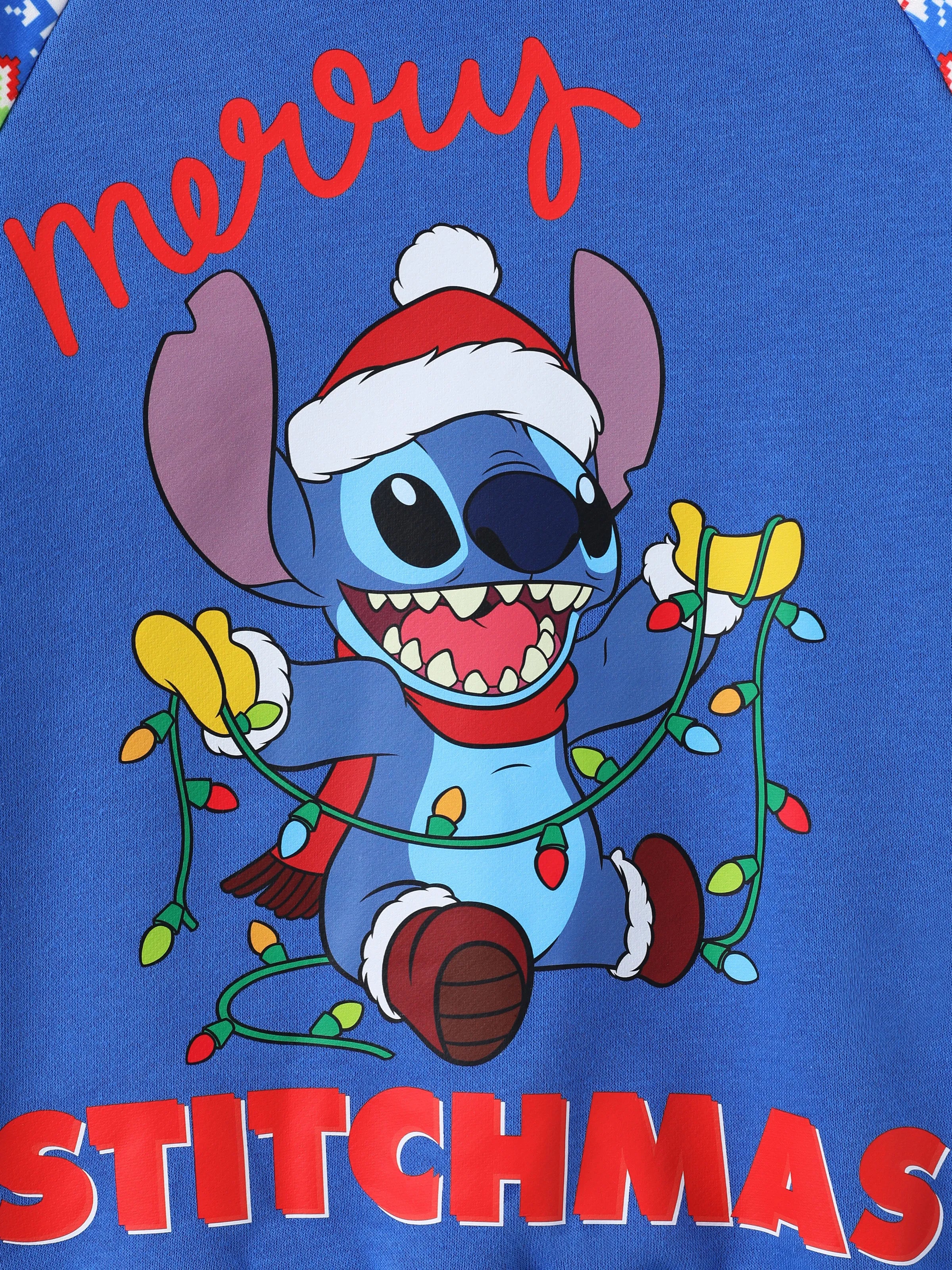 Disney Stitch Kid Boy 1pc Christmas Print Colorblock Long-sleeve Sweatshirt Blue