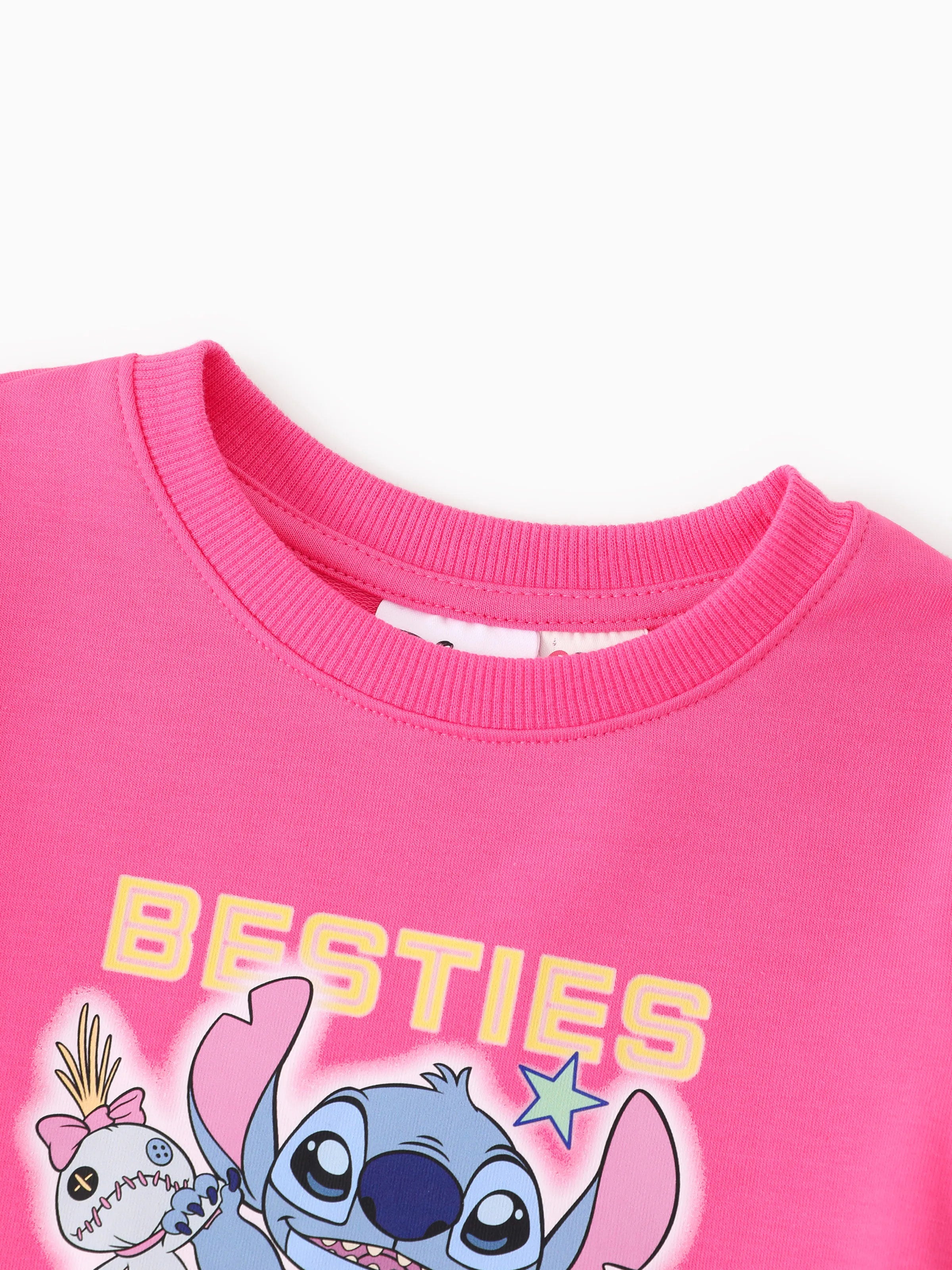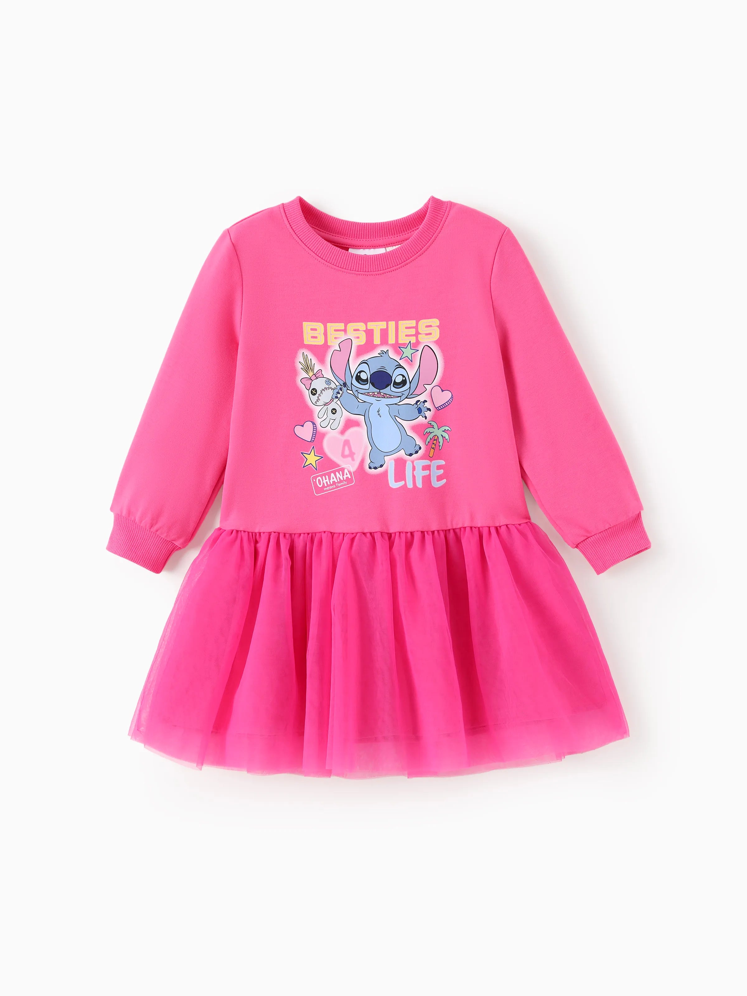 Disney Stitch Toddler Girl Mesh Splice Sweatshirt Dress Hot Pink