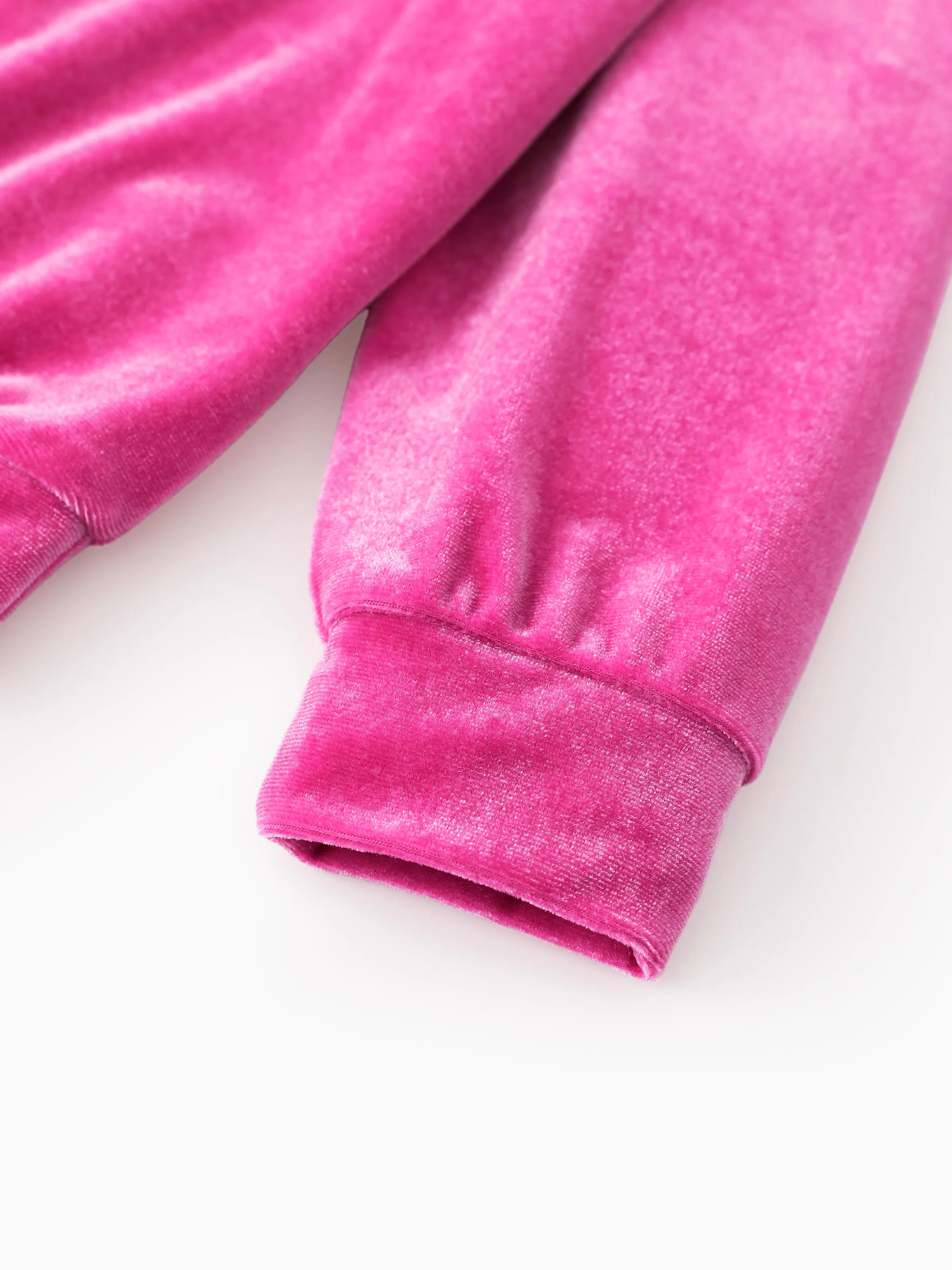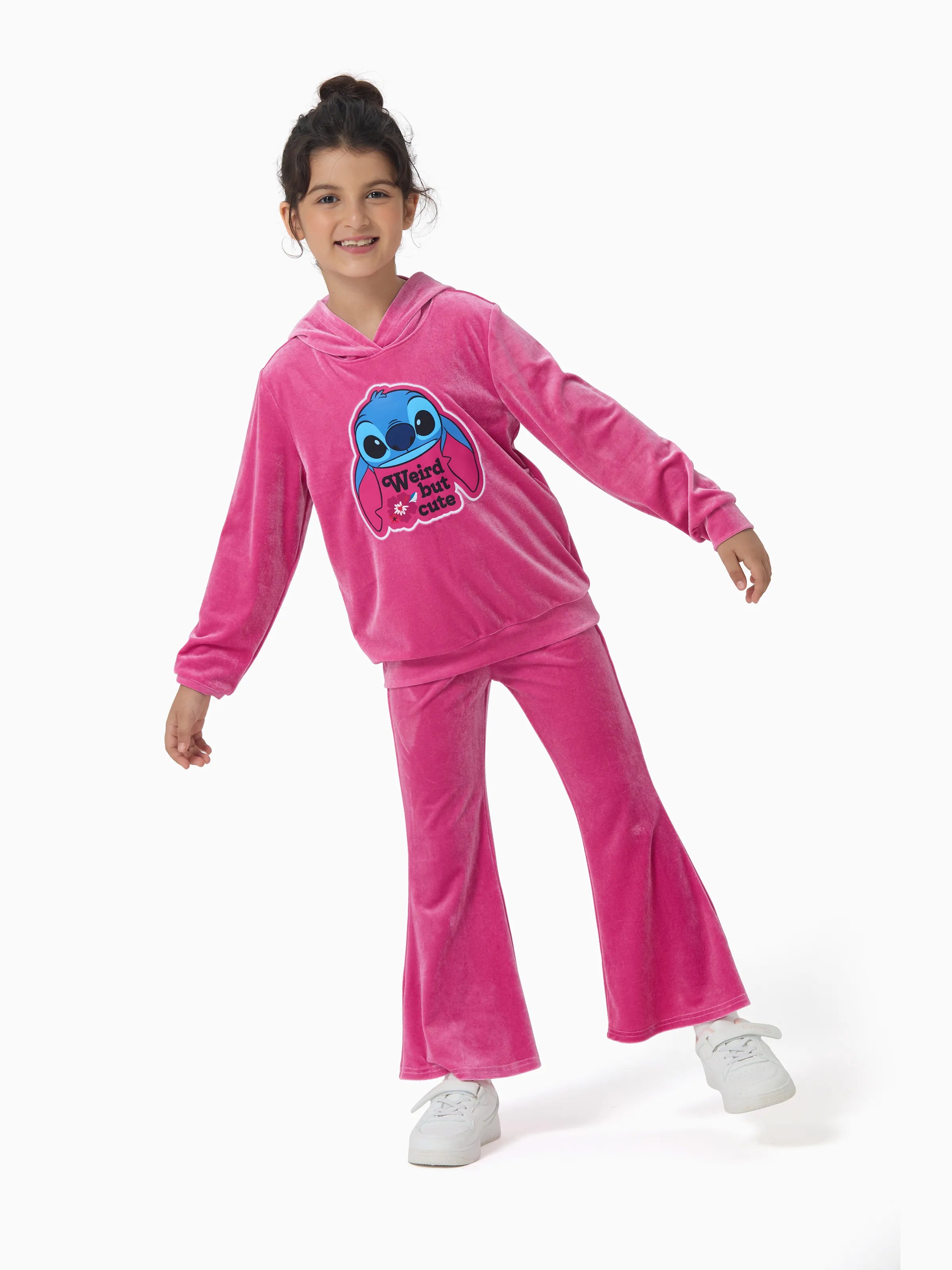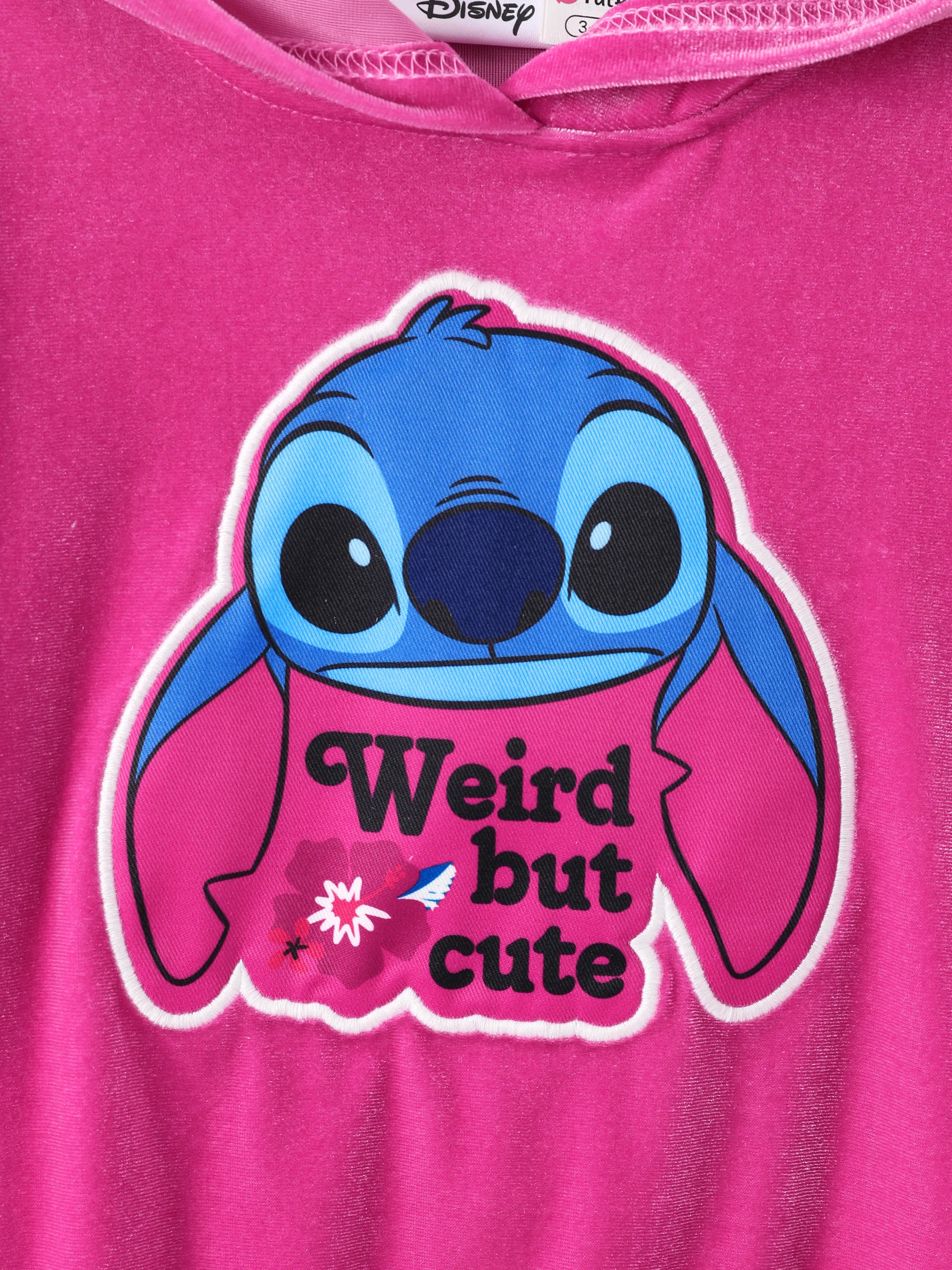 Disney Stitch Toddler/Kids Girl 2pcs Stitch Velvet Fabric Hooded Set Peach Pink