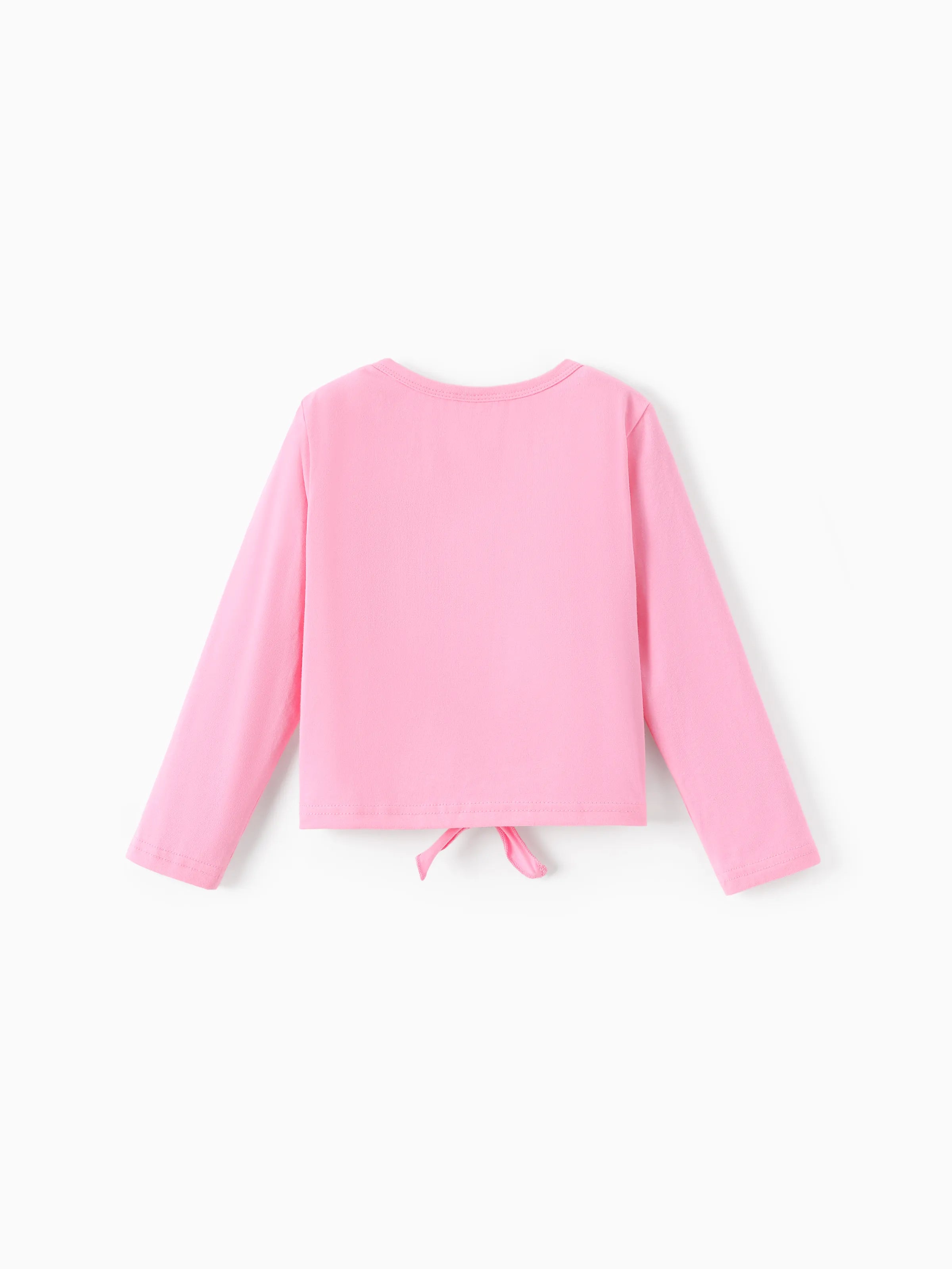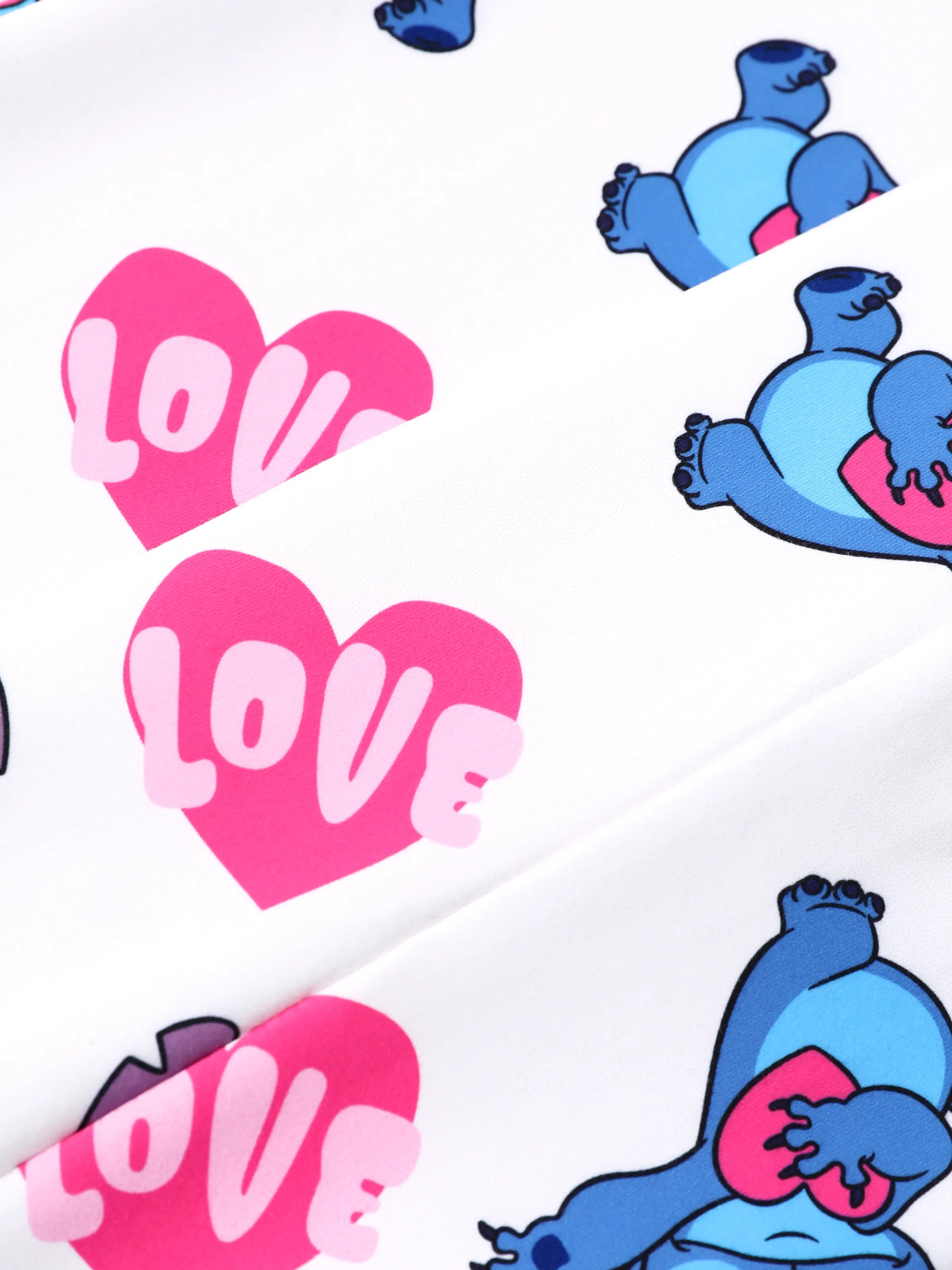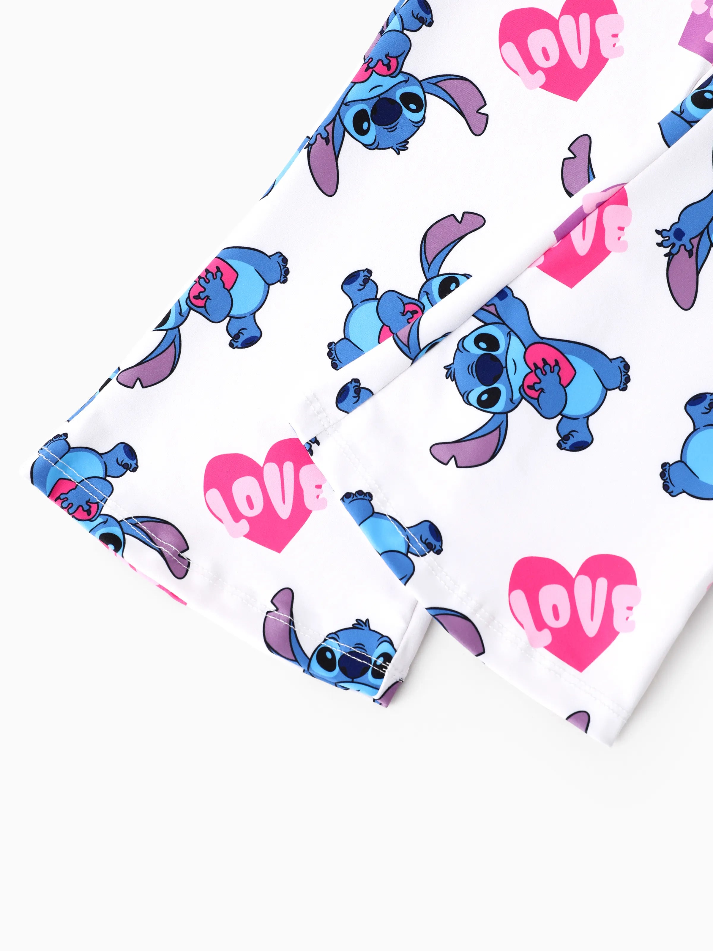 Disney Stitch Toddler/Kids Girl Stitch 2pcs Tie Front Longsleeves Top and Pattern Flared Pant Set Pink