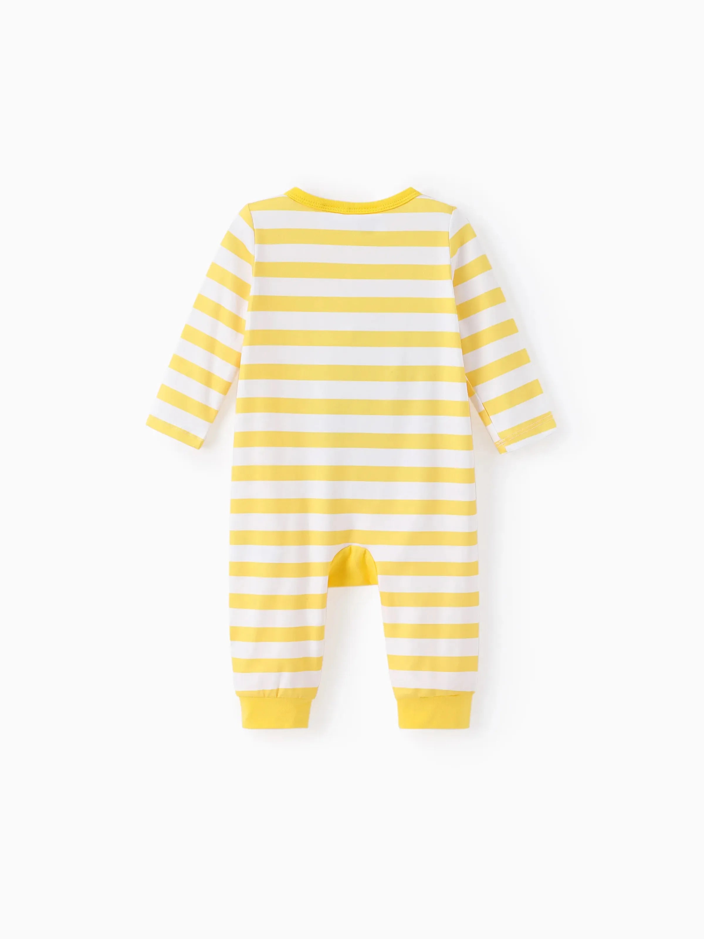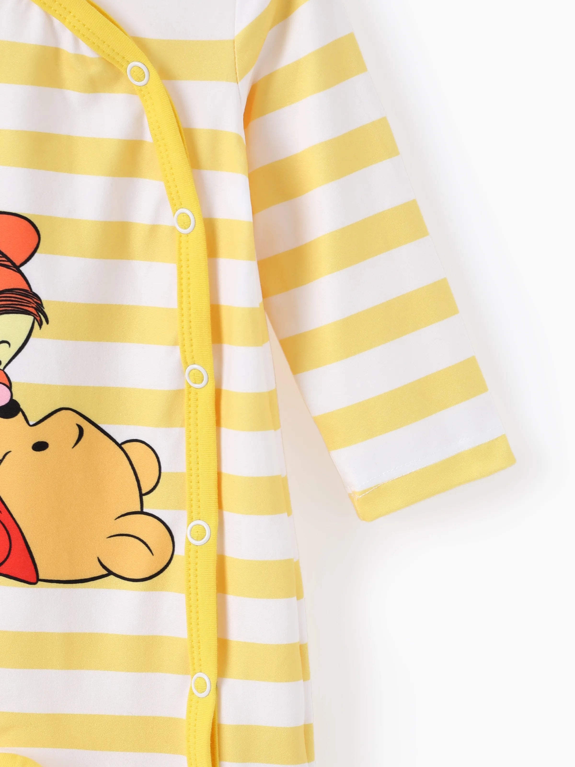 Disney Winnie the Pooh Baby Girl/Boy Stripe & Character Print Long-sleeve Jumpsuit Yellow