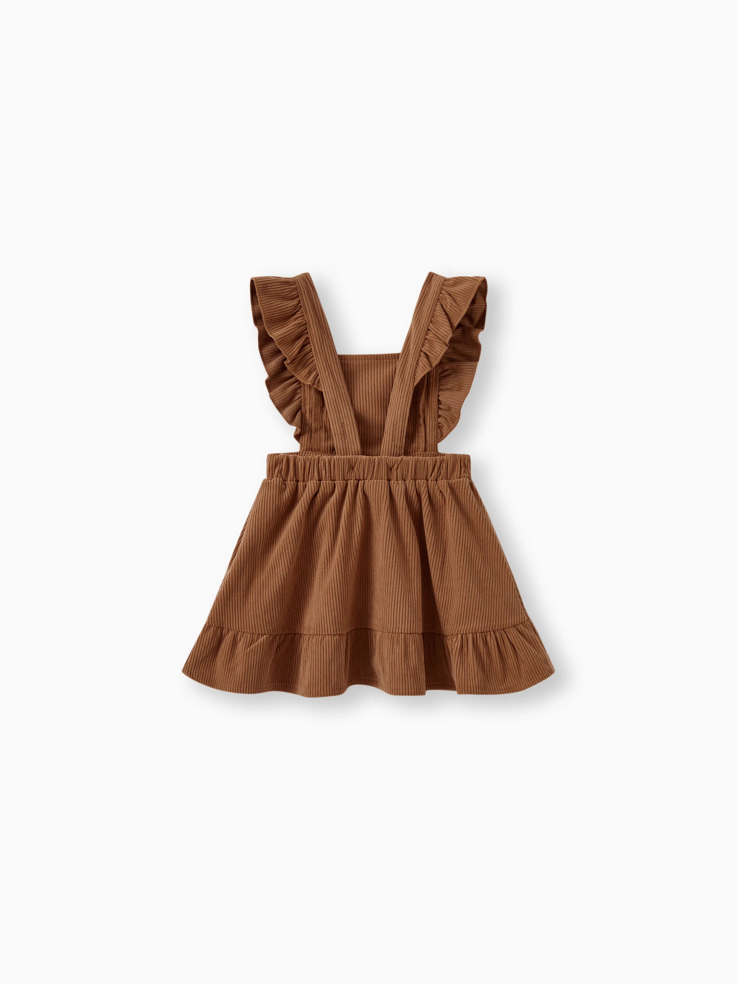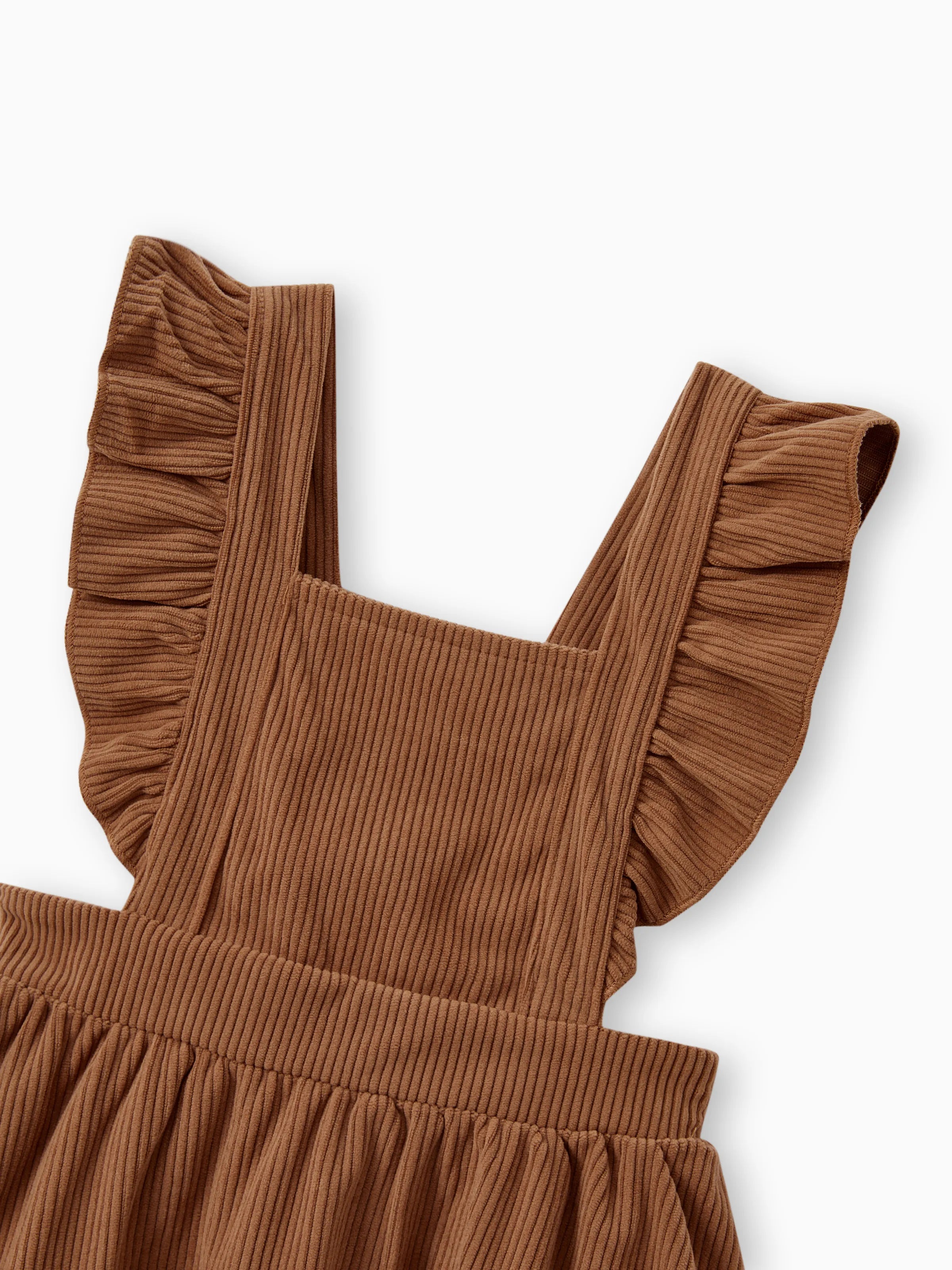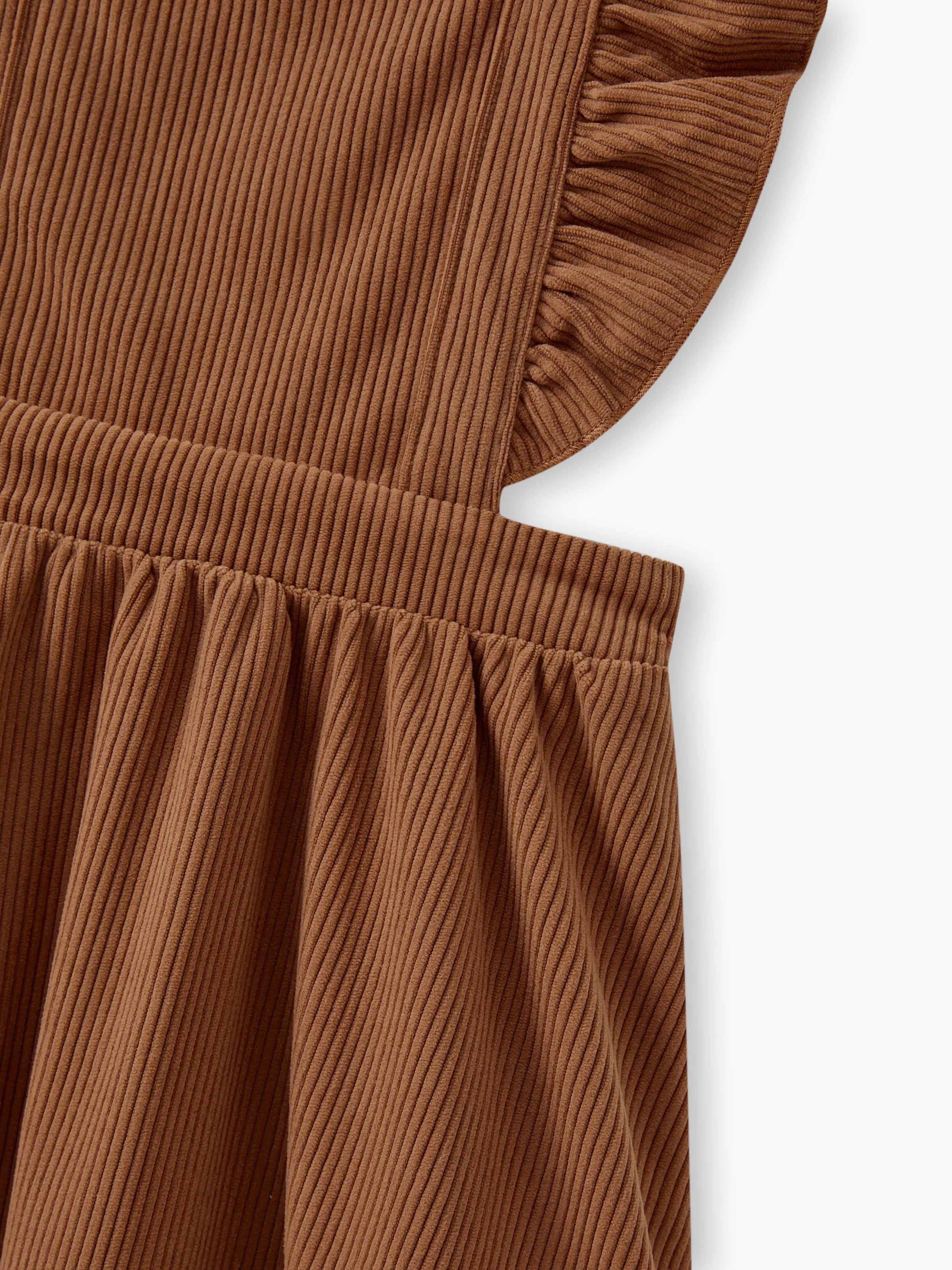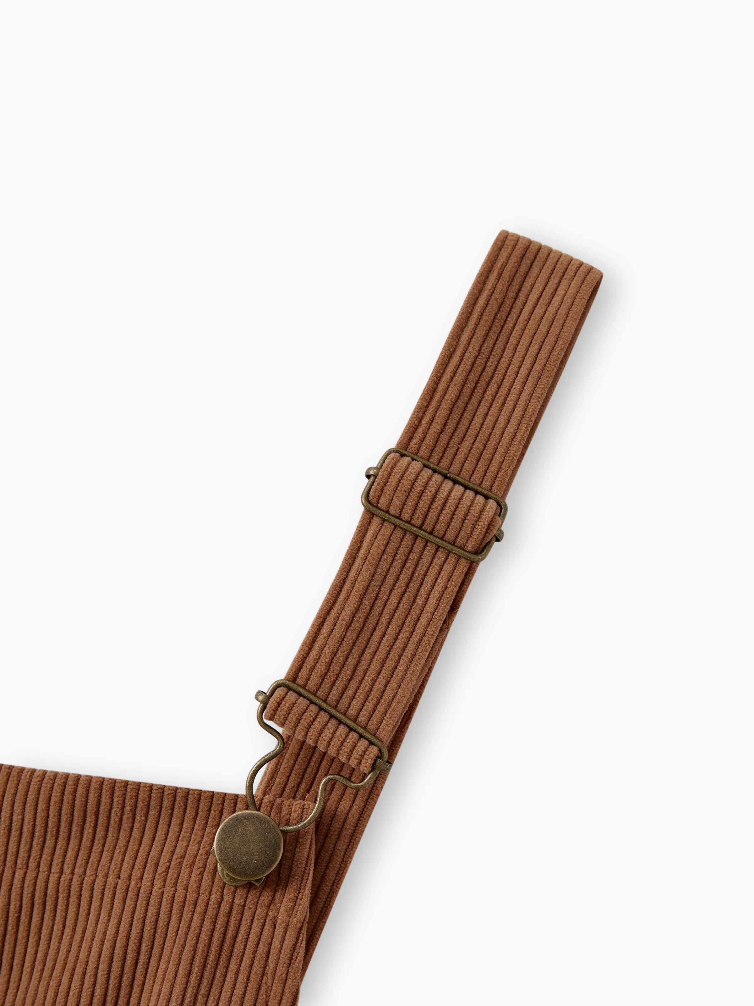 Family Matching Brown Corduroy Color block Sweatshirt or Adjustable Pinafore Dress Khaki