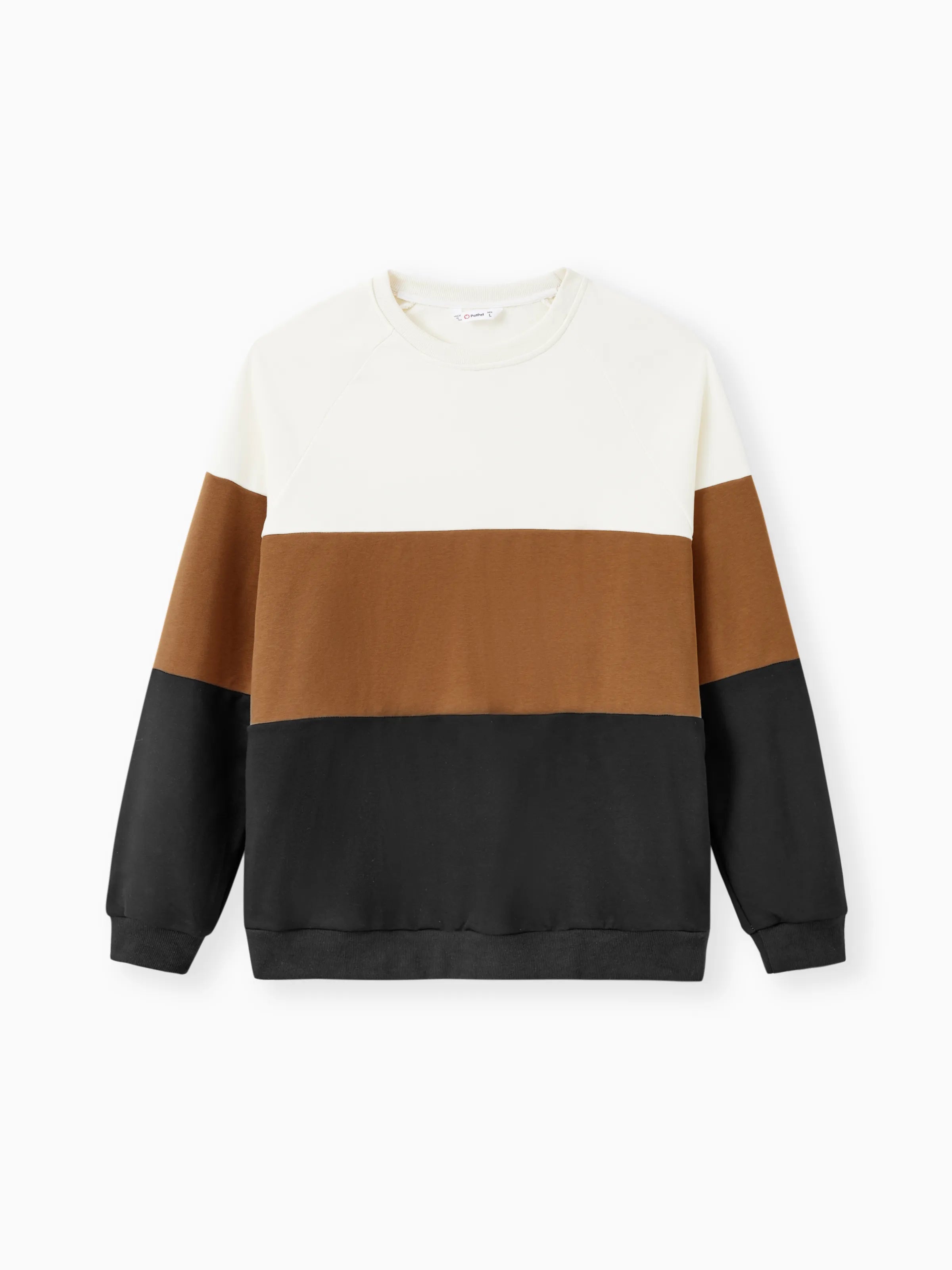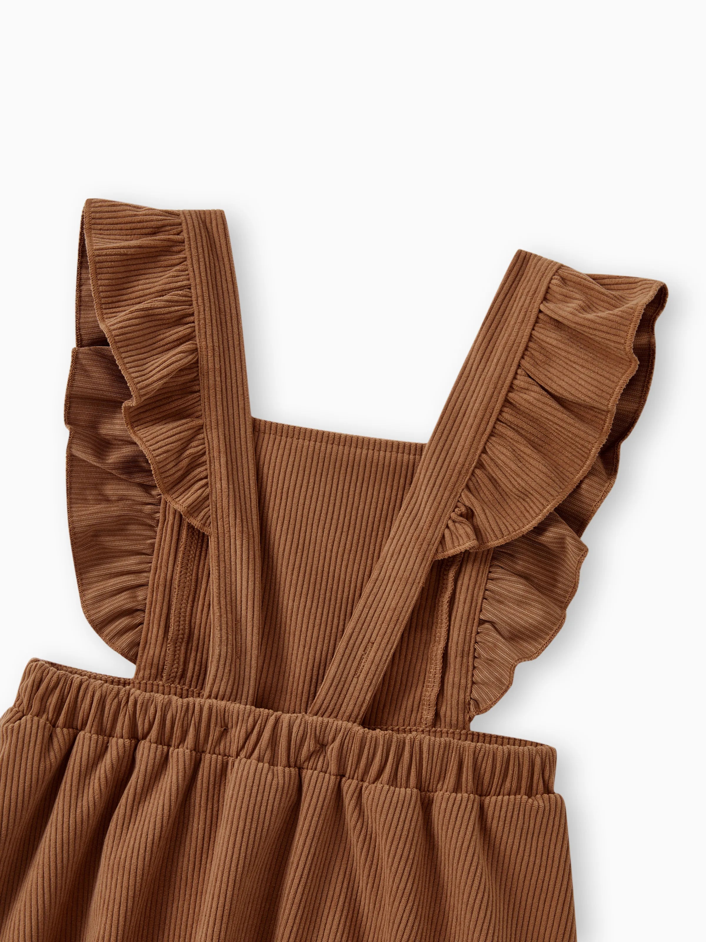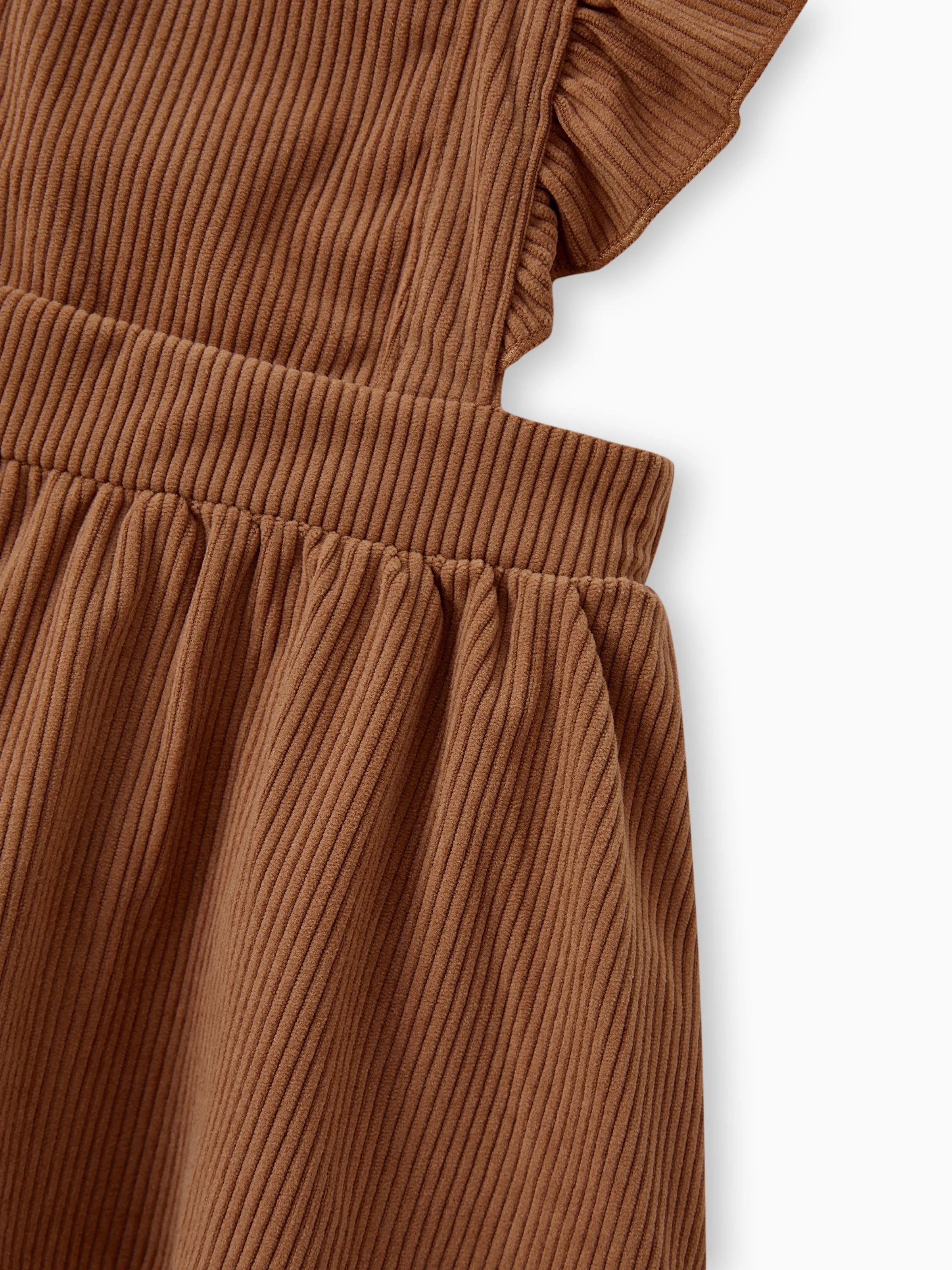 Family Matching Brown Corduroy Color block Sweatshirt or Adjustable Pinafore Dress Khaki