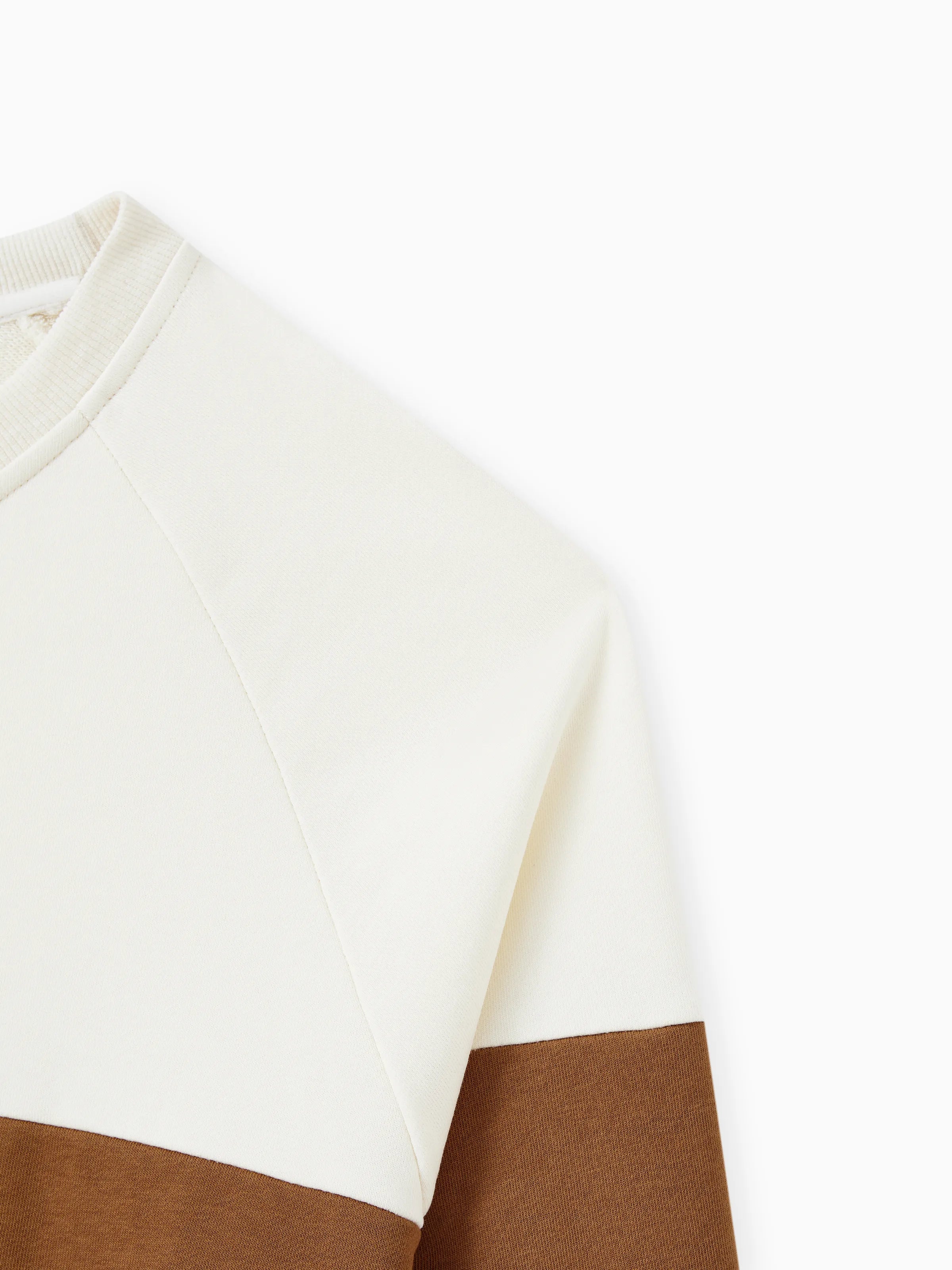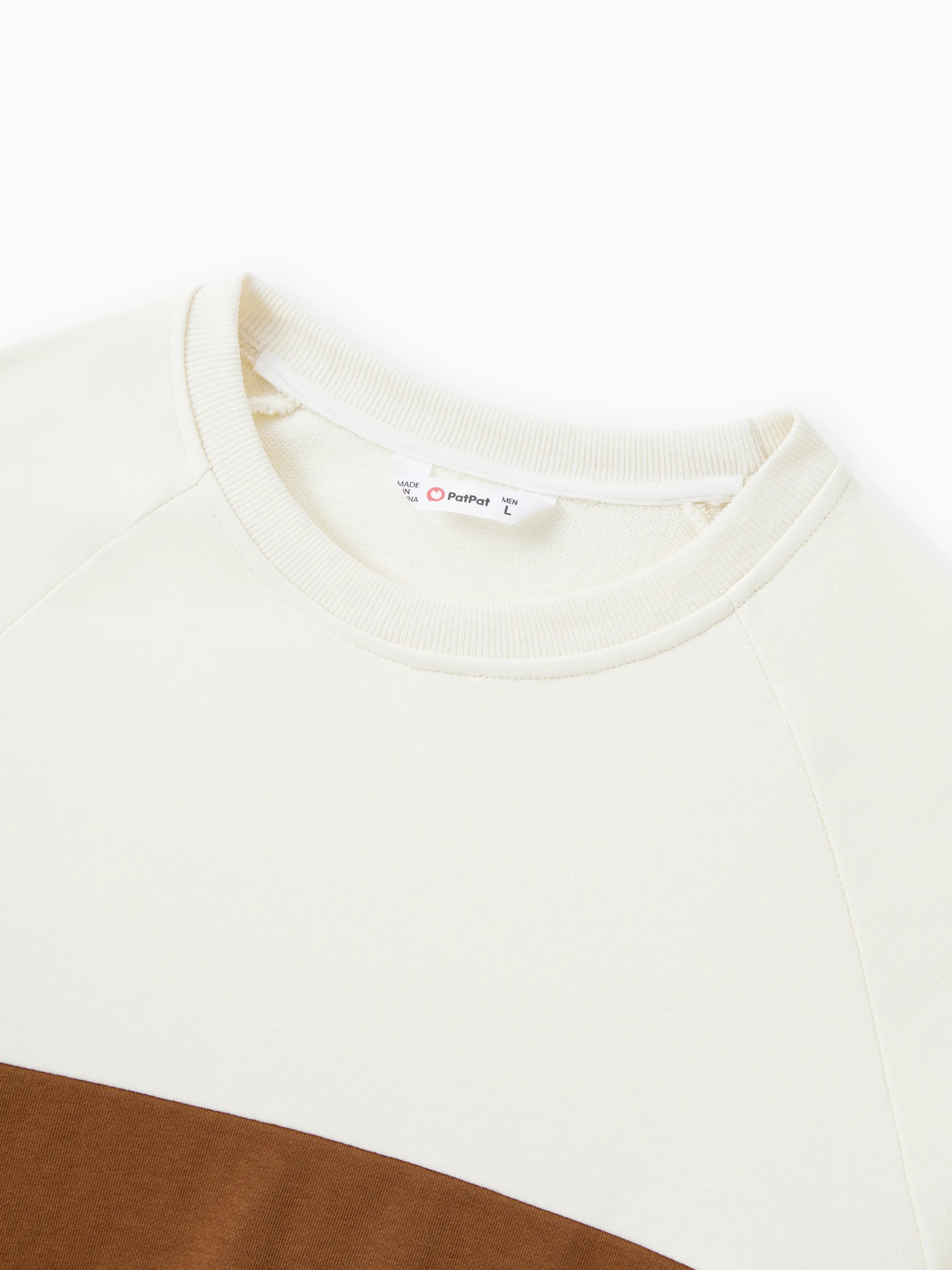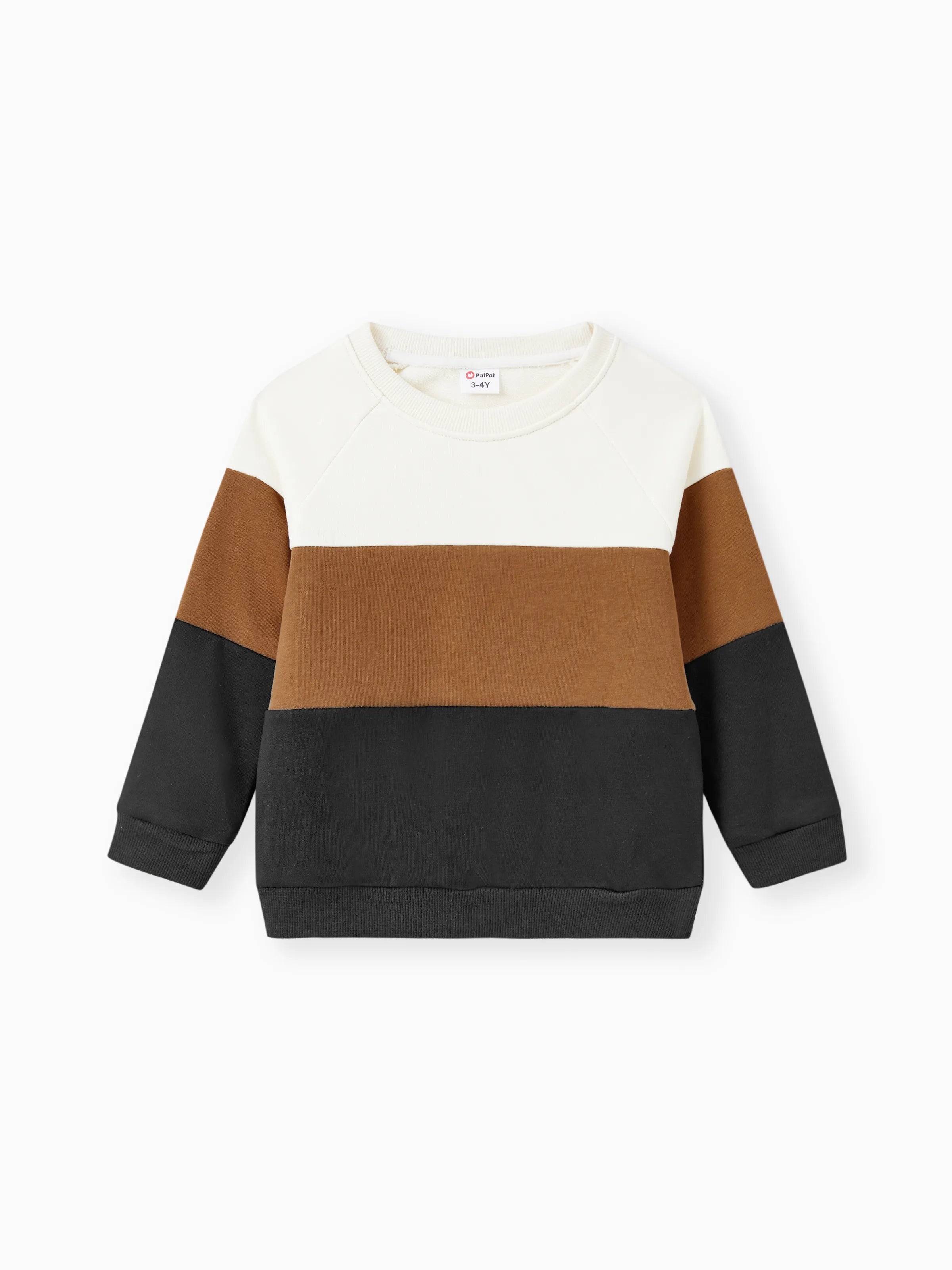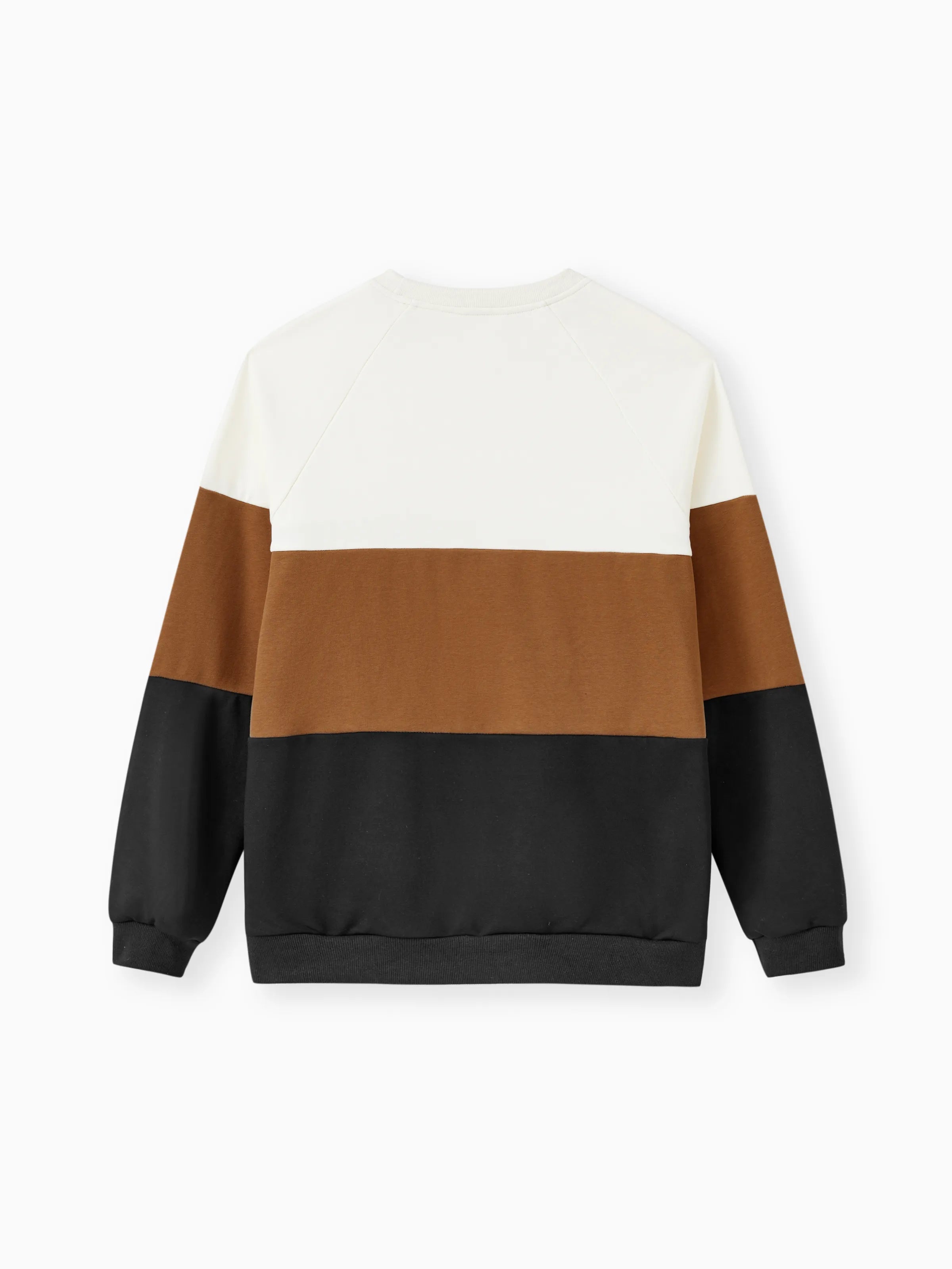 Family Matching Brown Corduroy Color block Sweatshirt or Adjustable Pinafore Dress Khaki