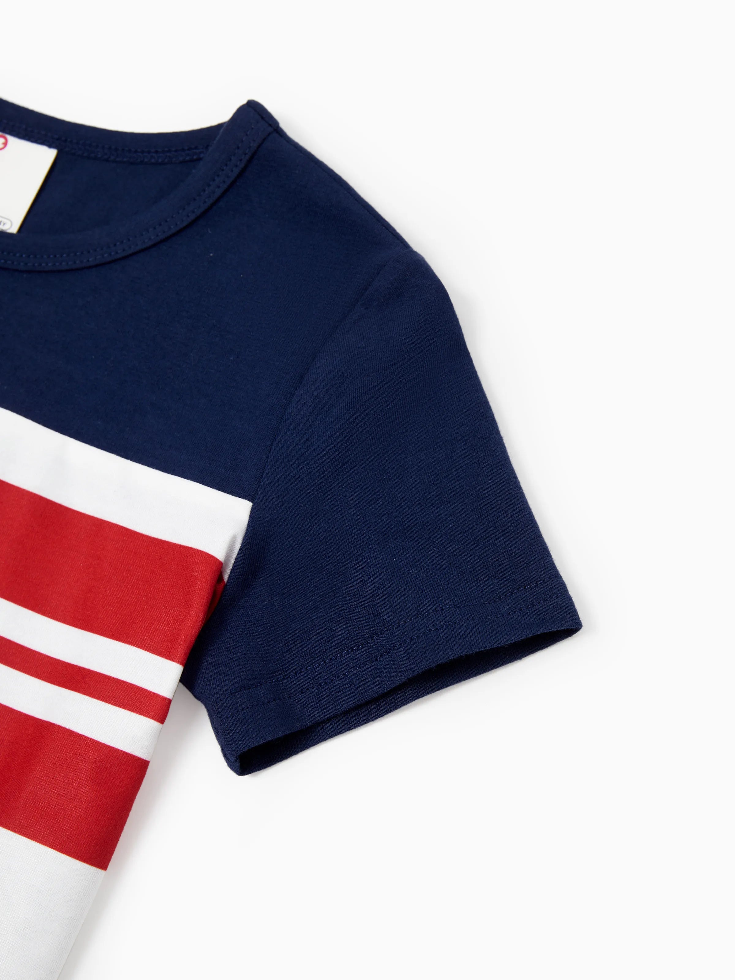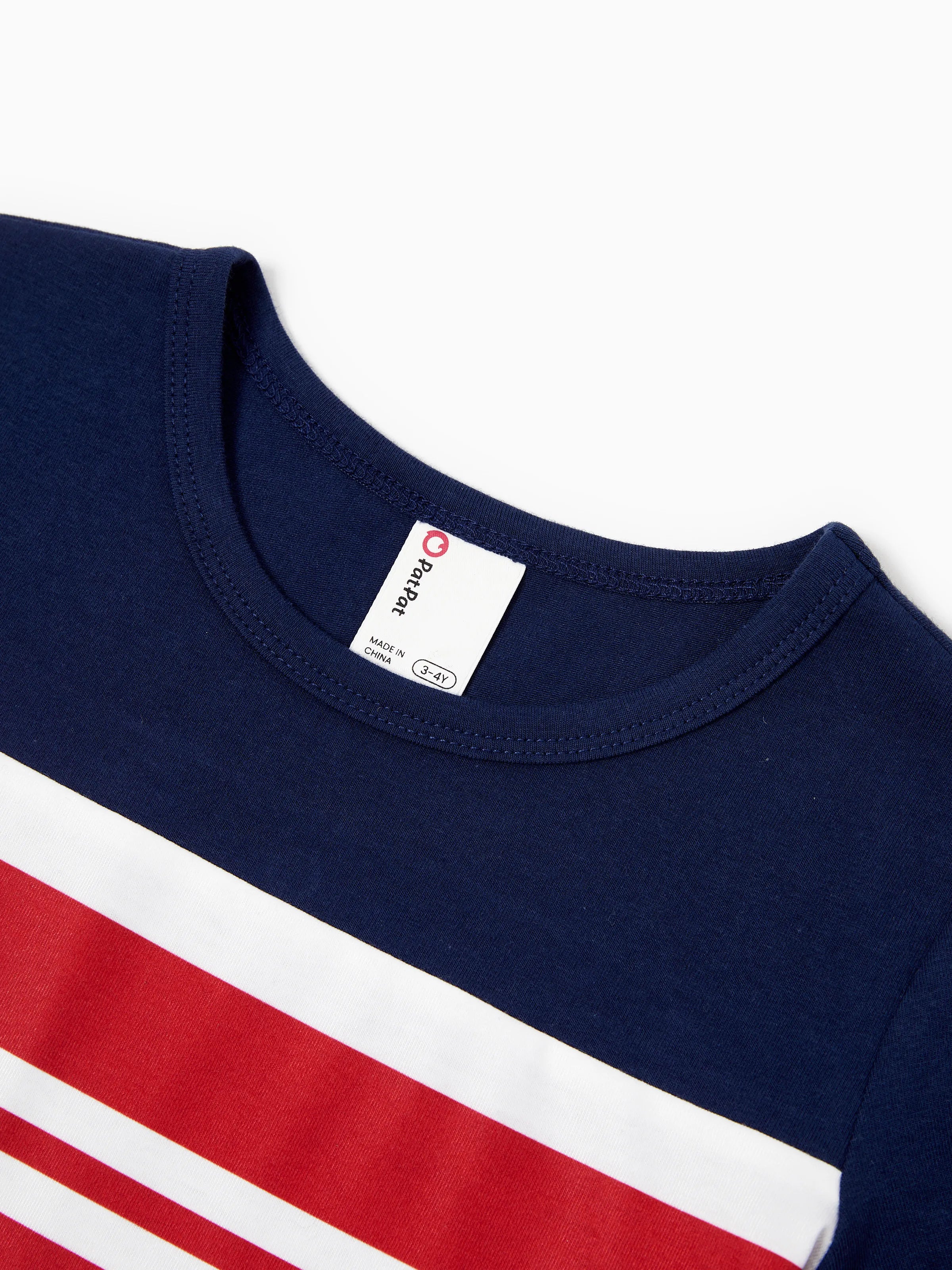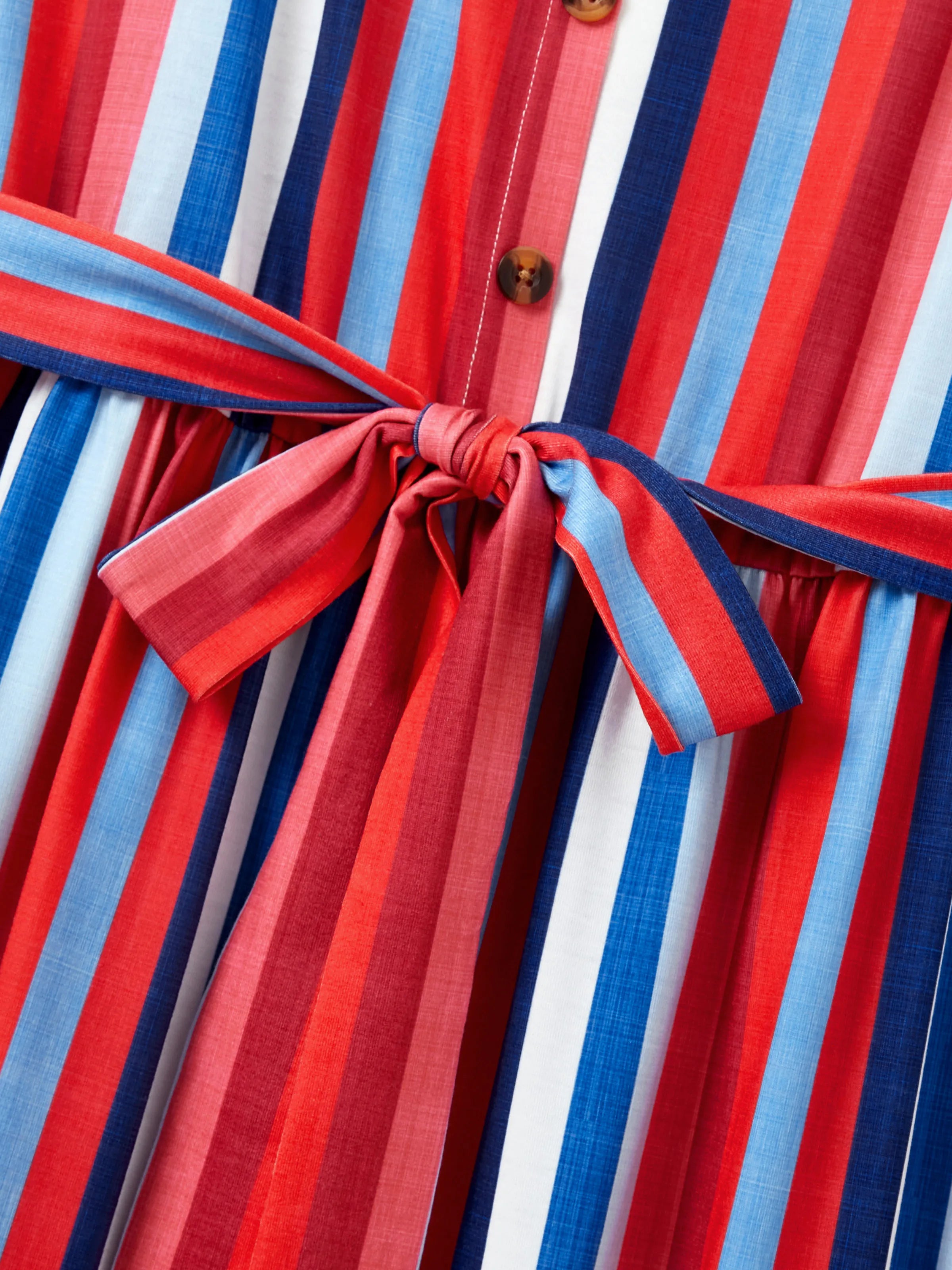 Family Matching Casual Cotton T-shirt or Belted Stripe Dress Set Multi-color
