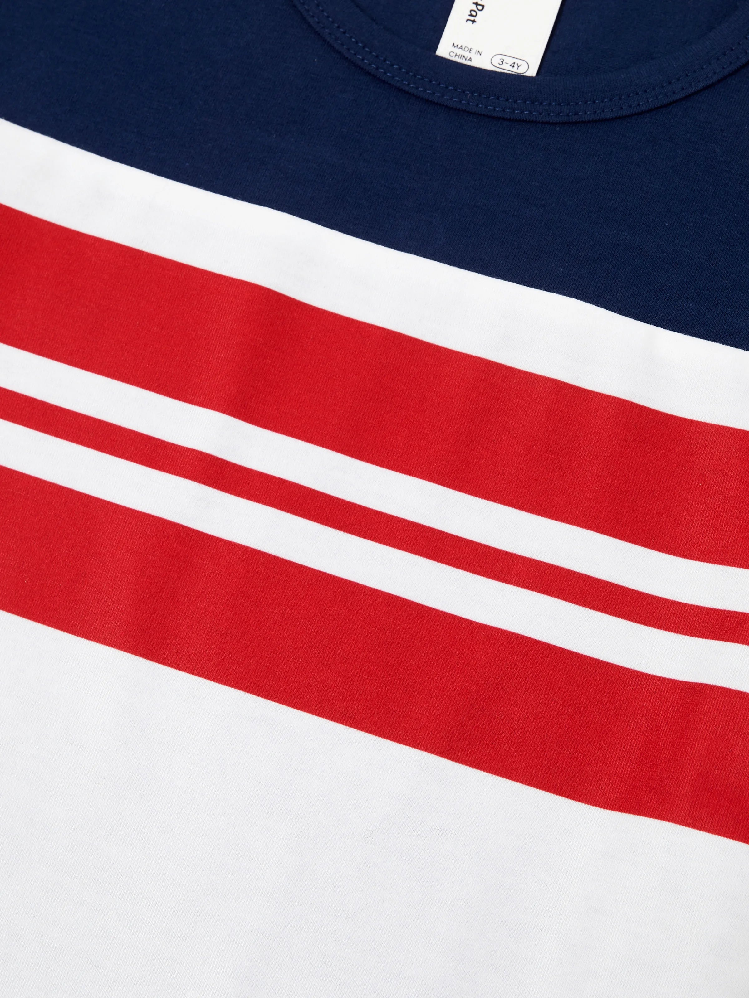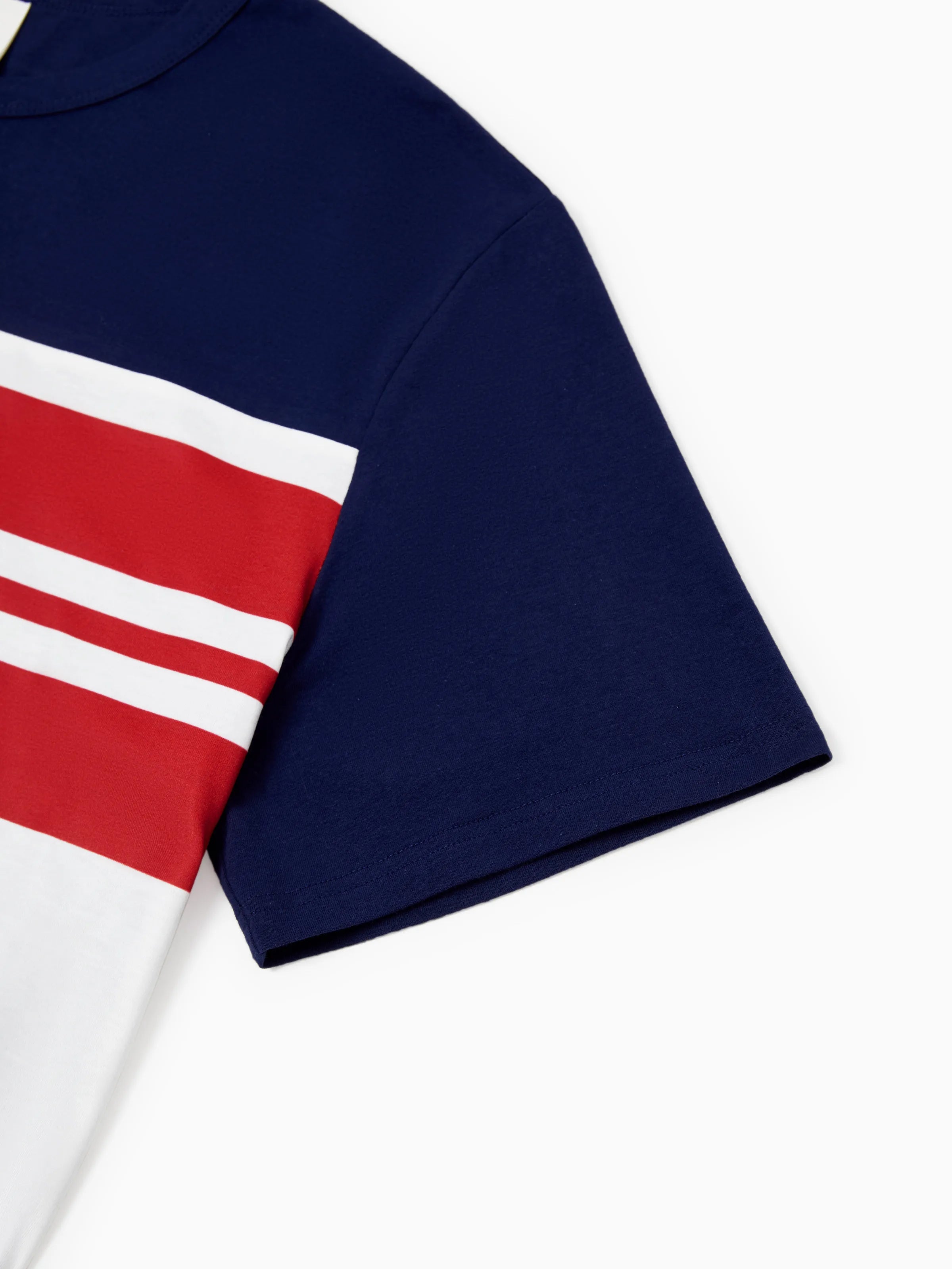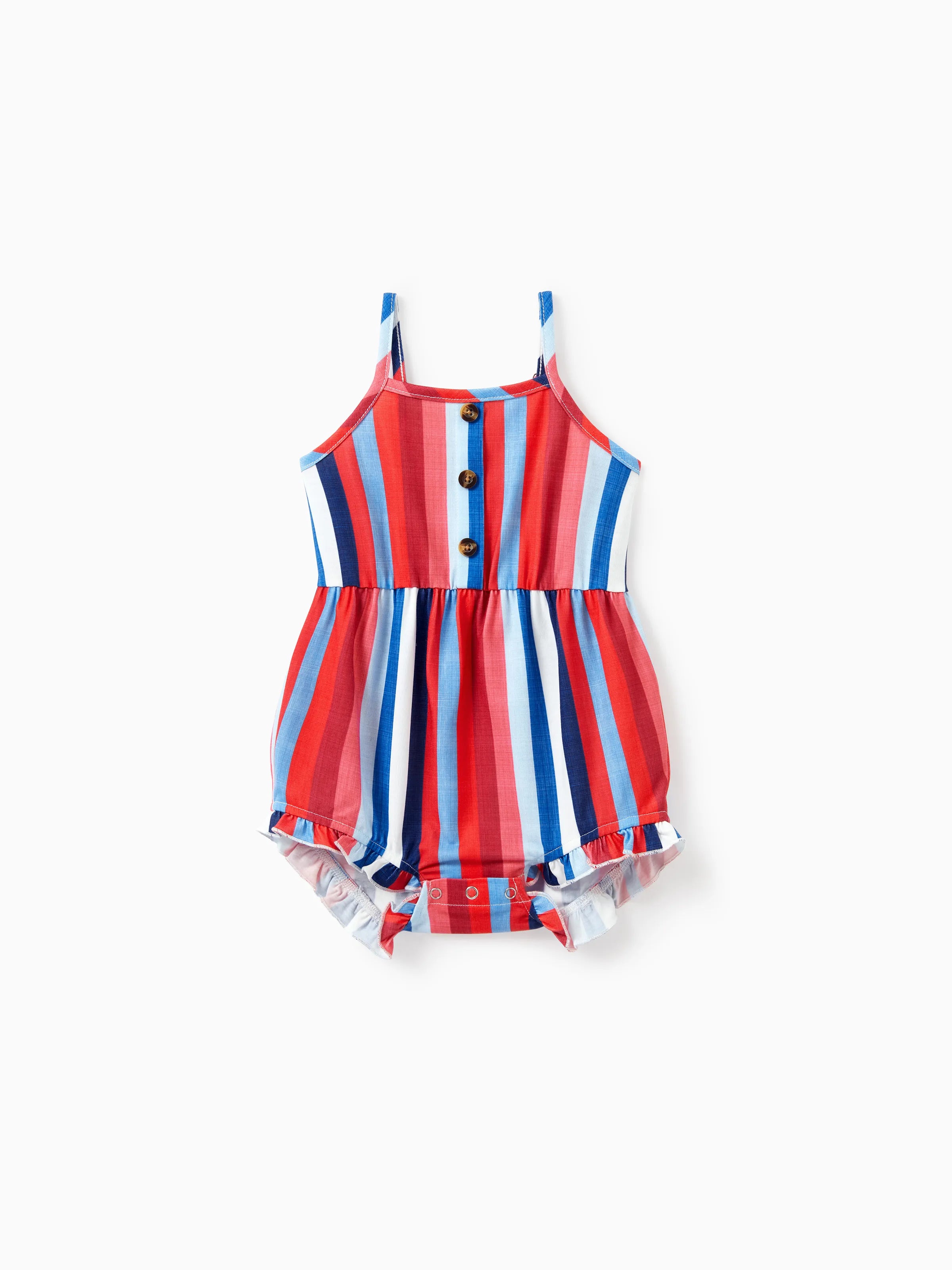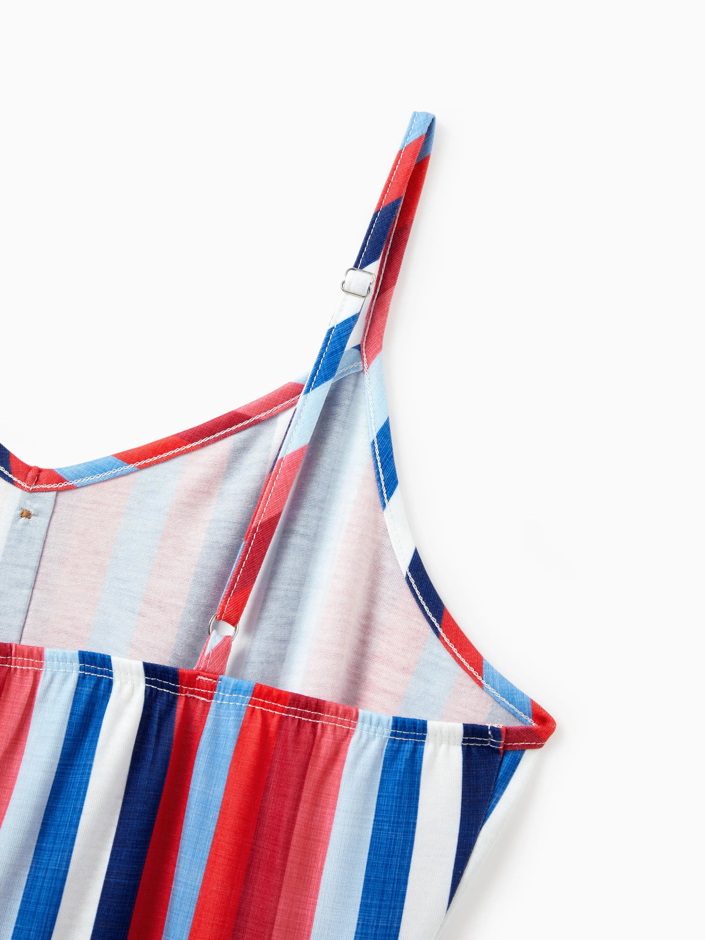 Family Matching Casual Cotton T-shirt or Belted Stripe Dress Set Multi-color