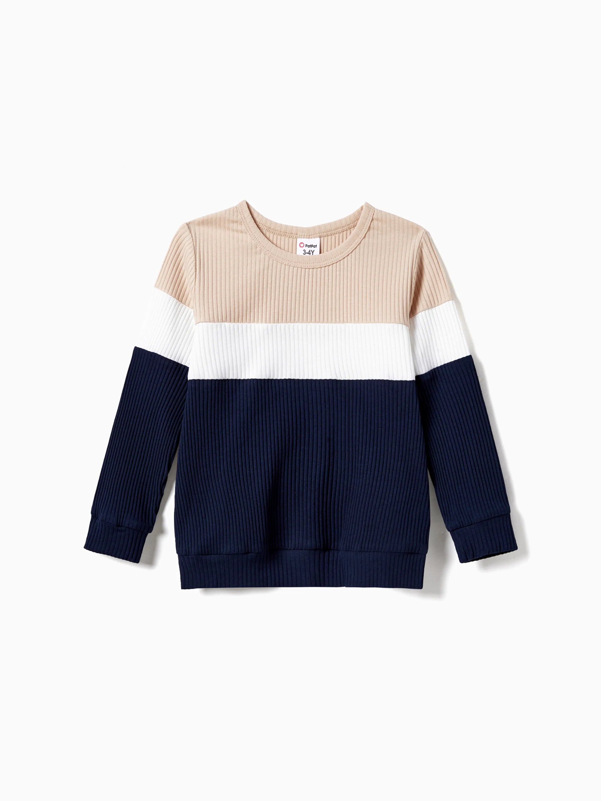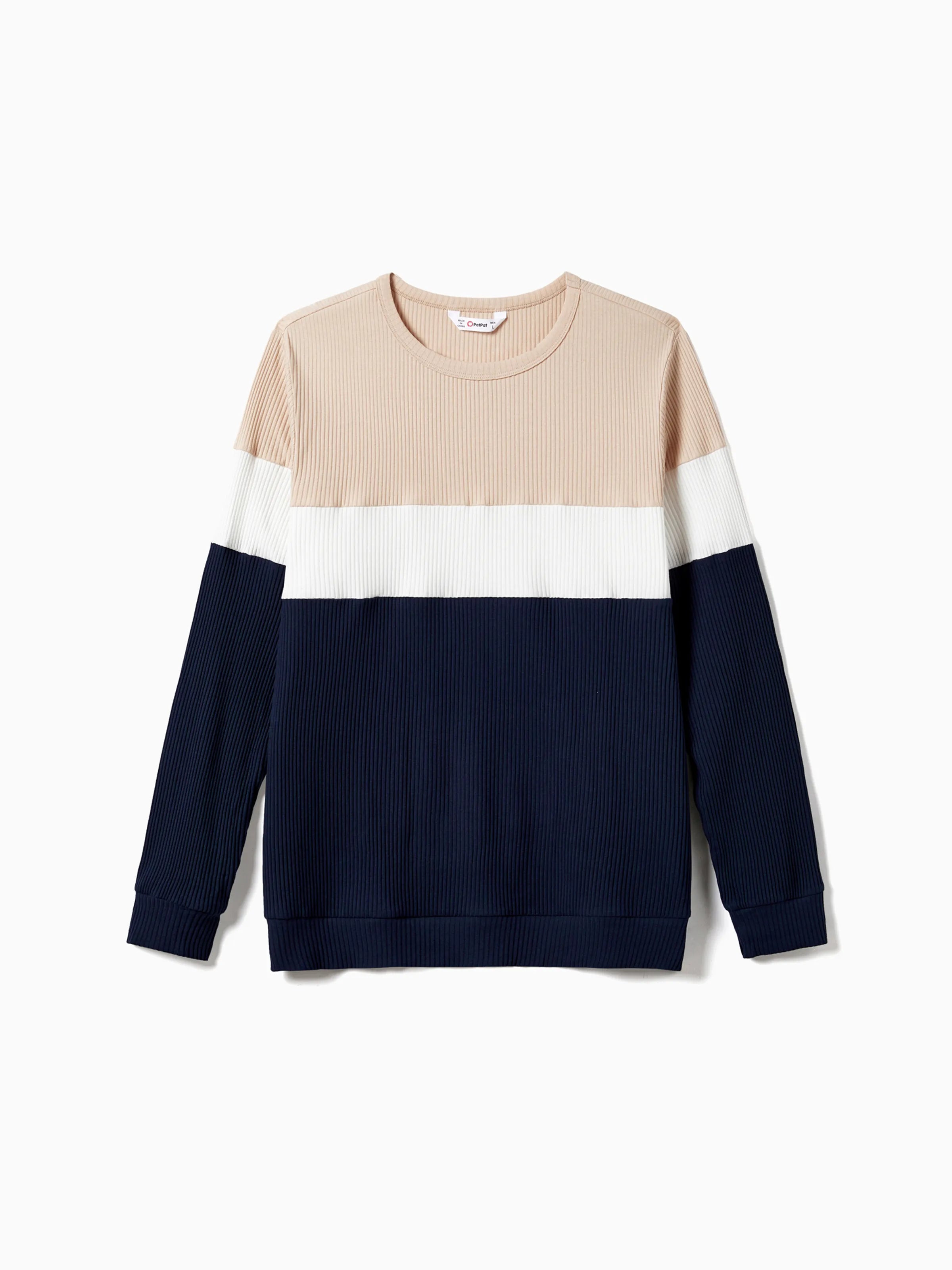 Family Matching Color-Block Knit Long-Sleeved Dresses And Tops Sets Multi-color