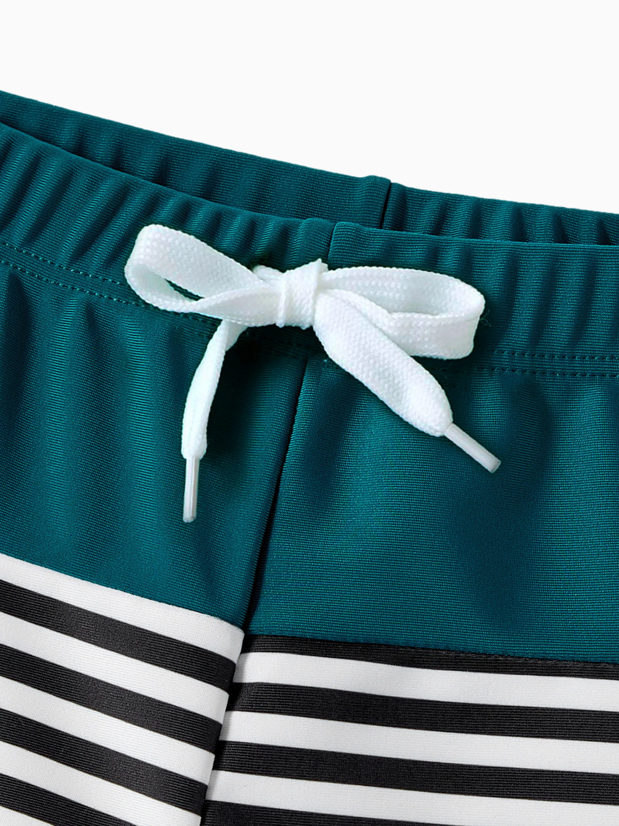 Family Matching Colorblock One Shoulder Cut Out One-piece Swimsuit and Striped Spliced Swim Trunks Shorts DeepTurquoise