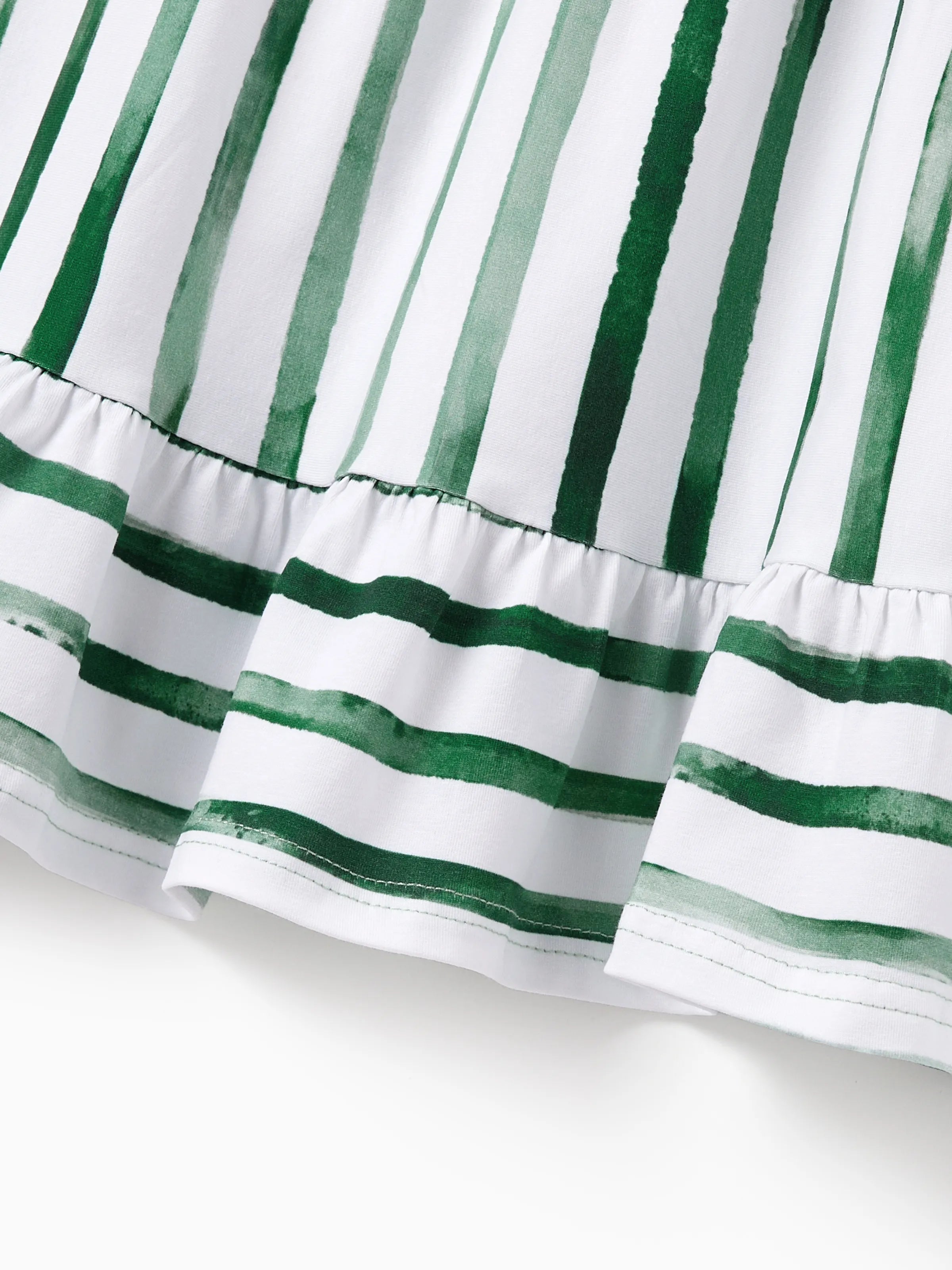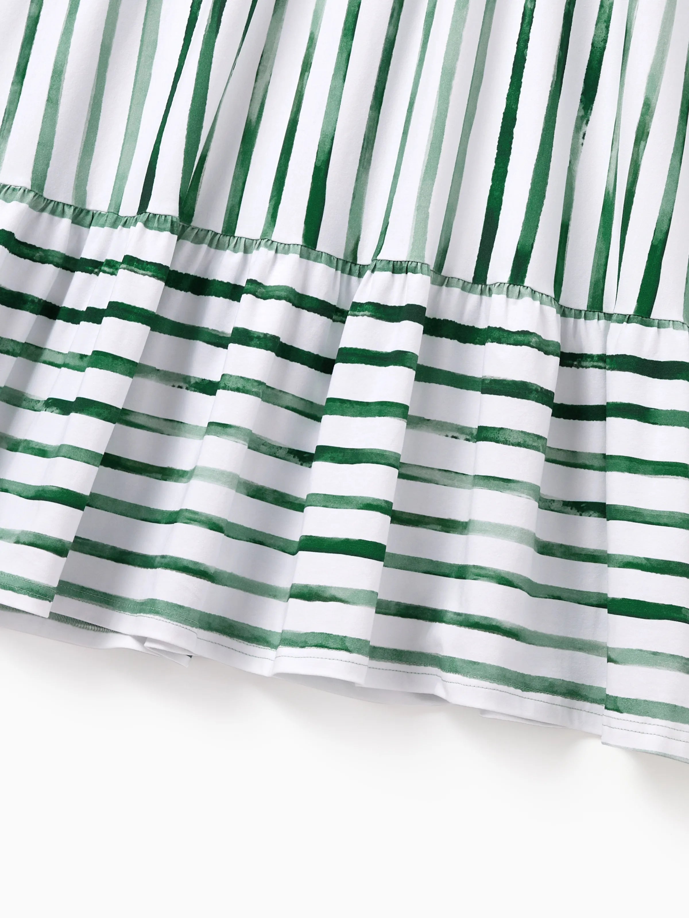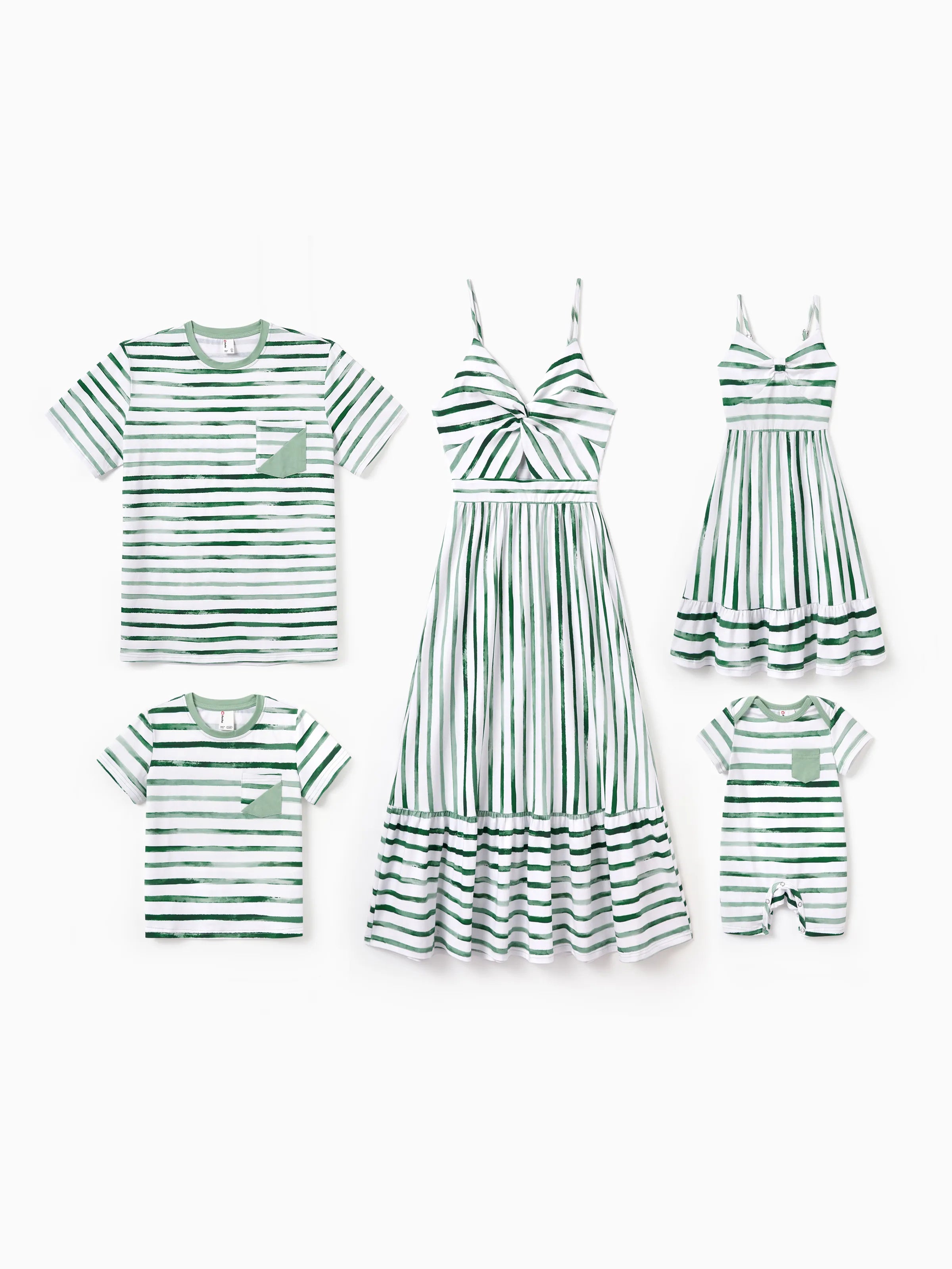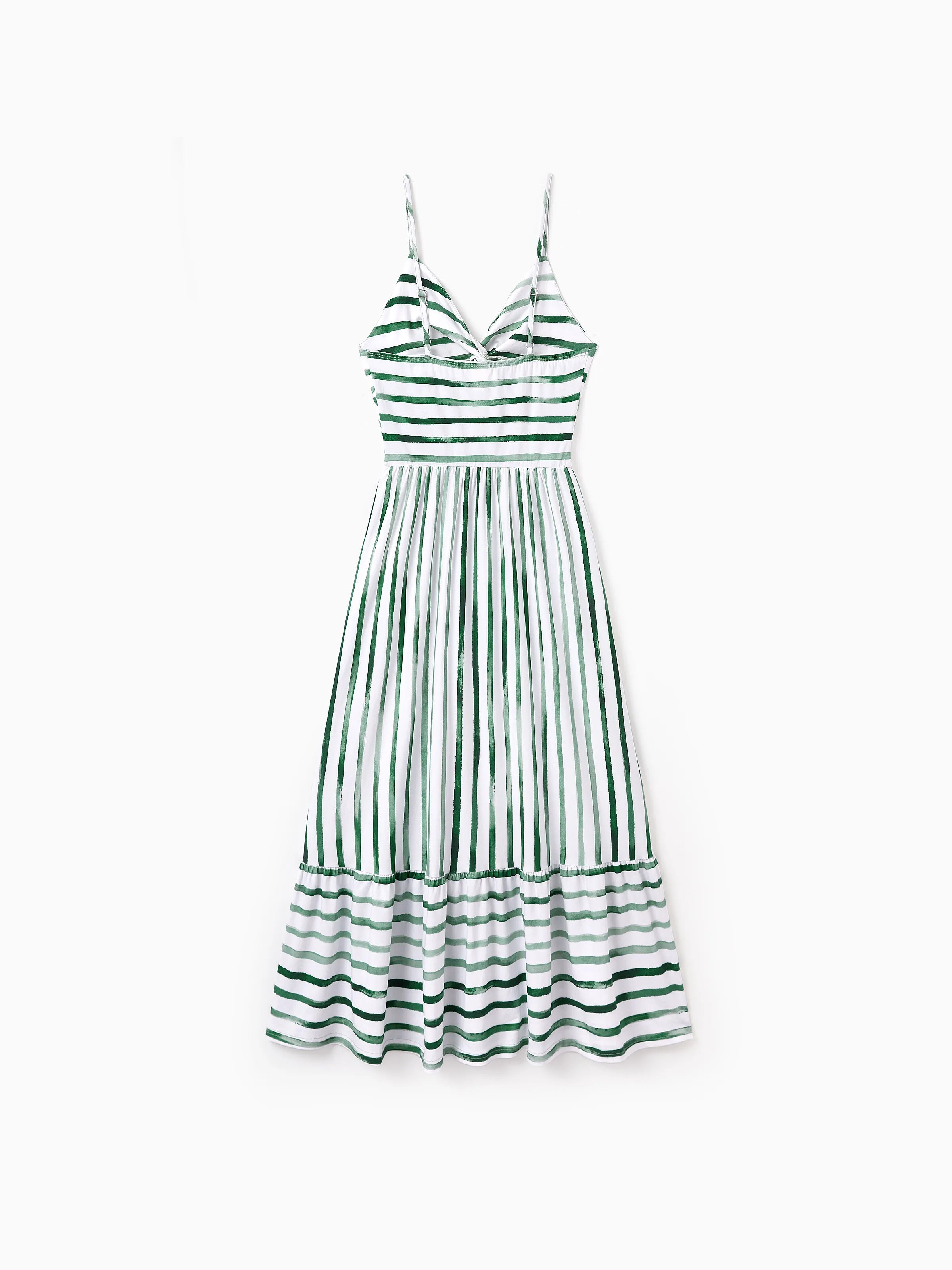 Family Matching Cotton Outfits Set Green Striped T-Shirt and Dress Set for Dad, Mom, Kids & Baby, Perfect for Summer Family Outings & Photos Green