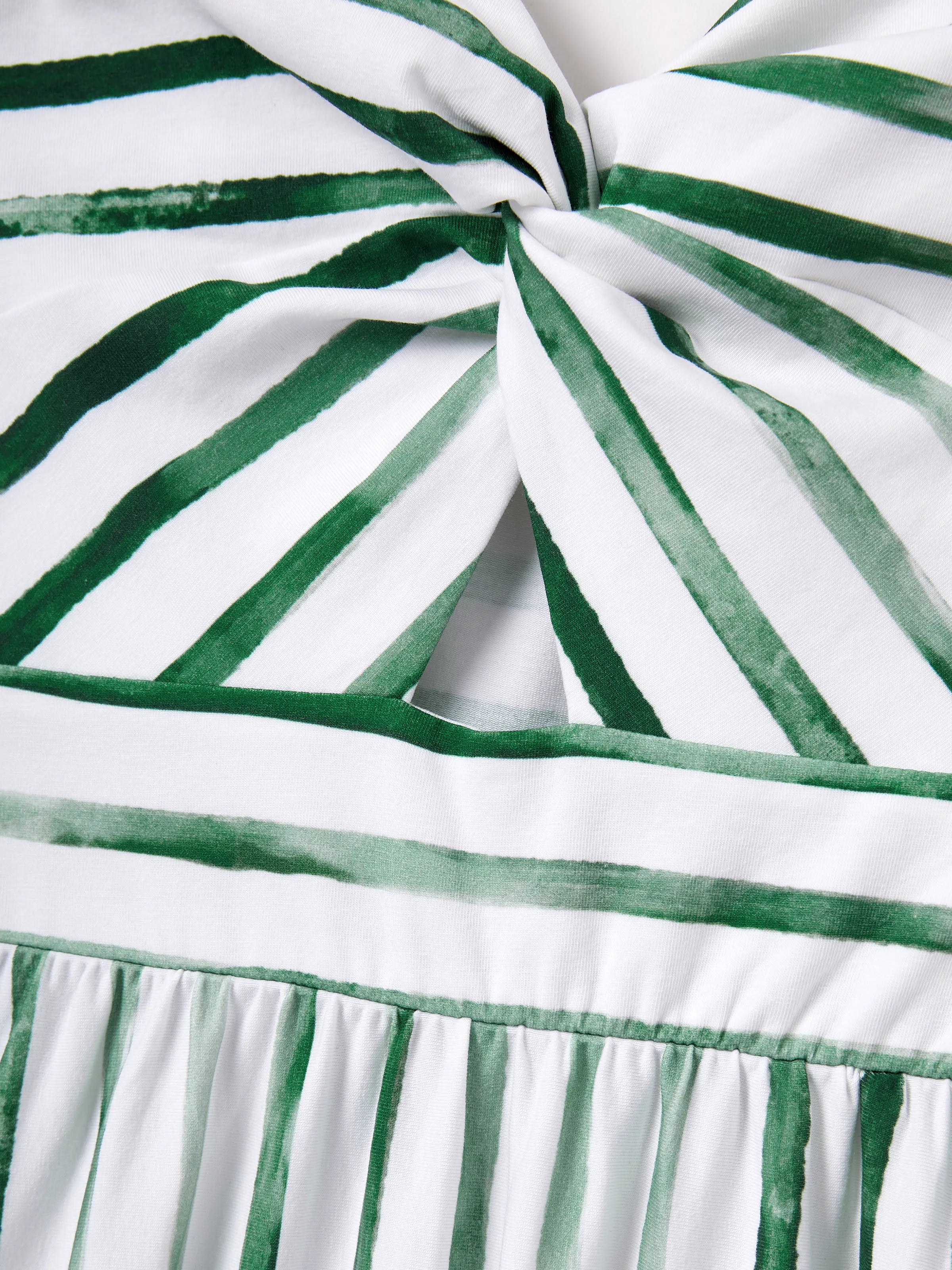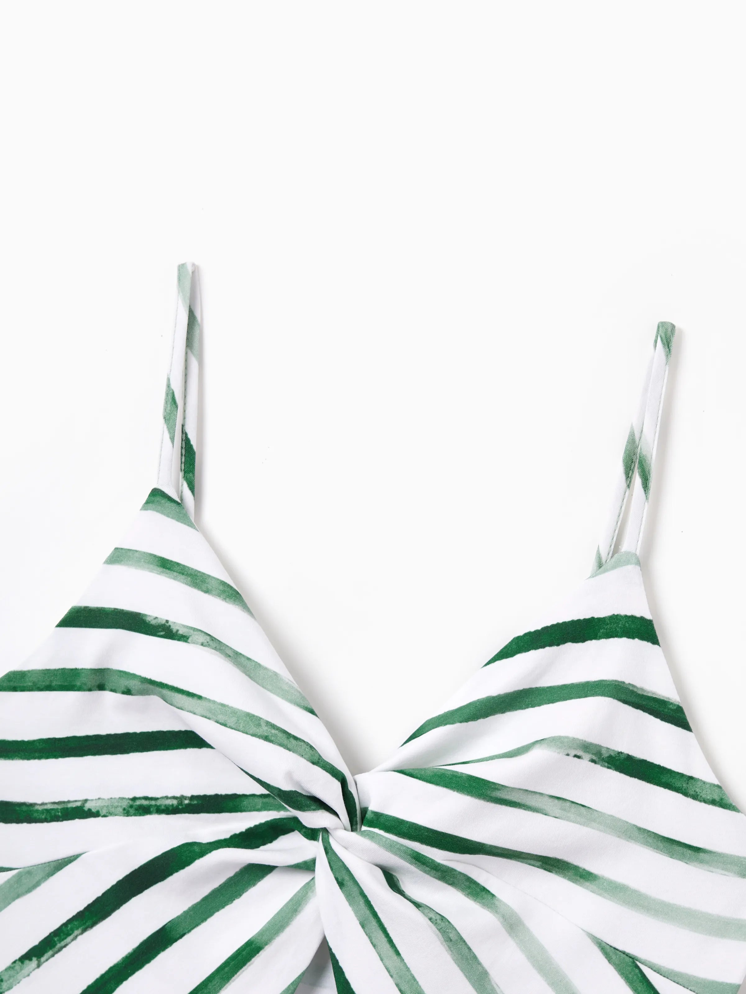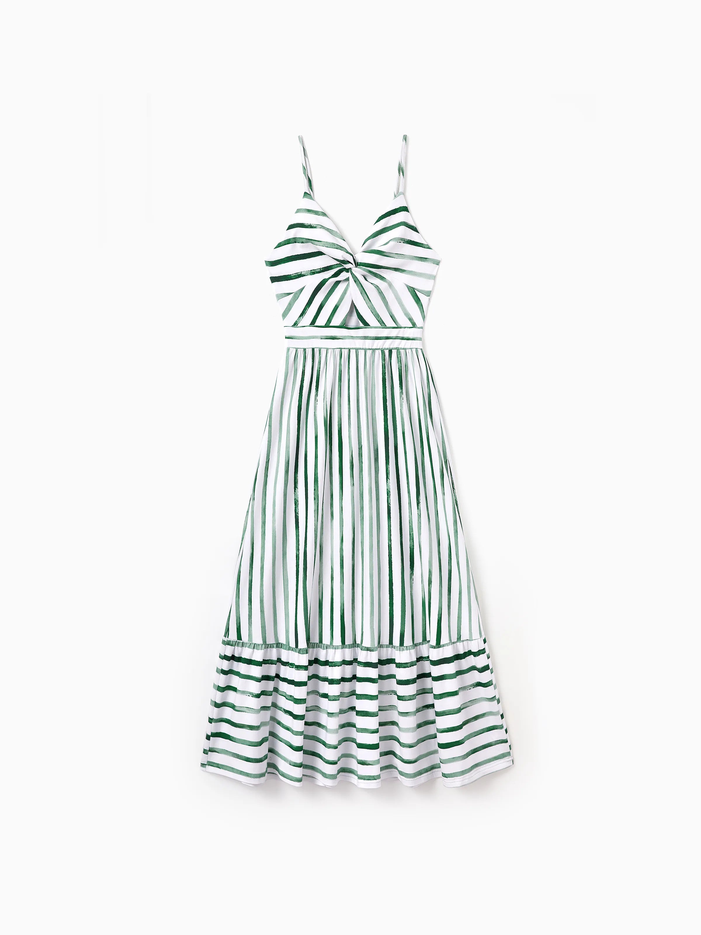 Family Matching Cotton Outfits Set Green Striped T-Shirt and Dress Set for Dad, Mom, Kids & Baby, Perfect for Summer Family Outings & Photos Green