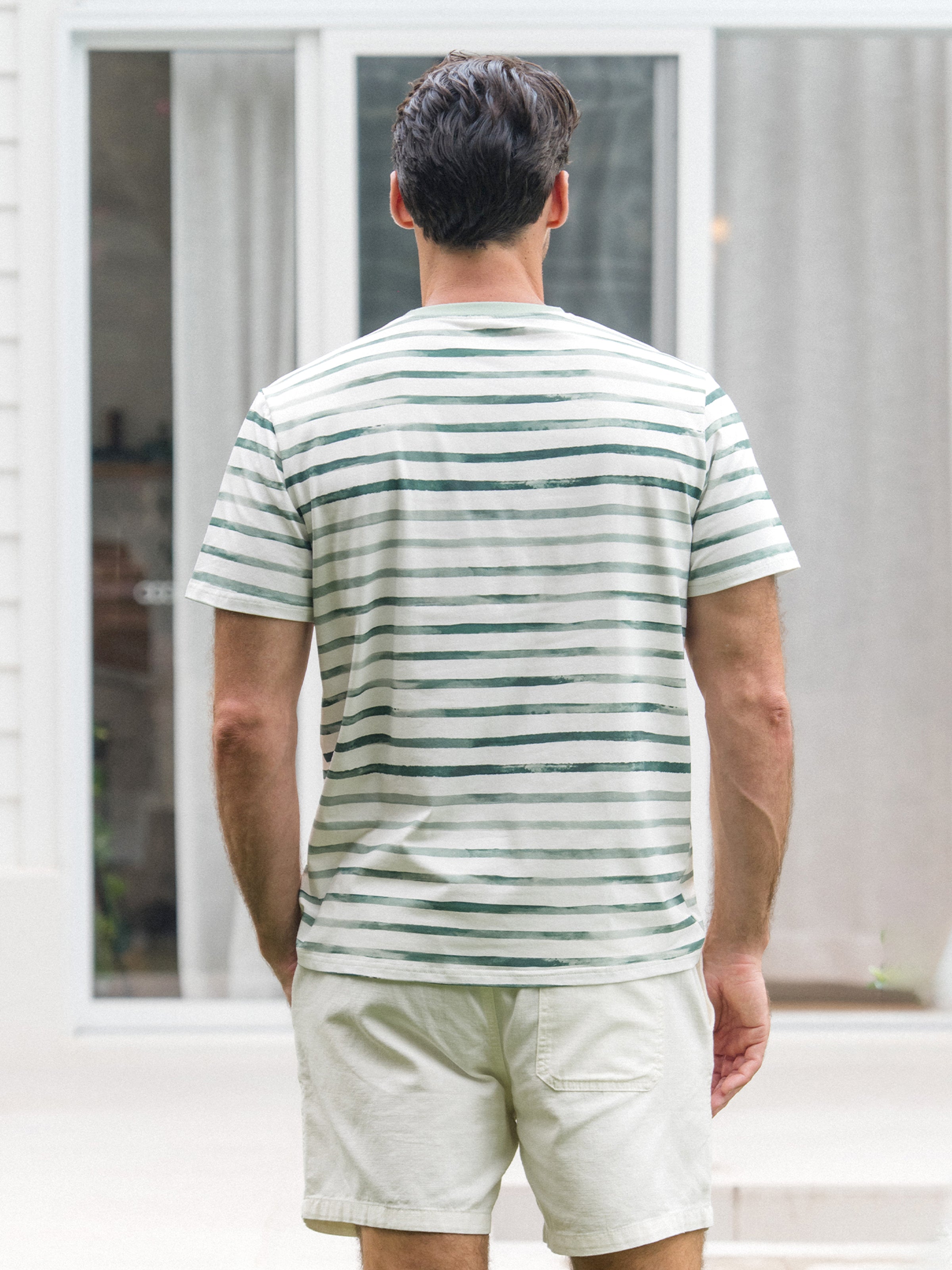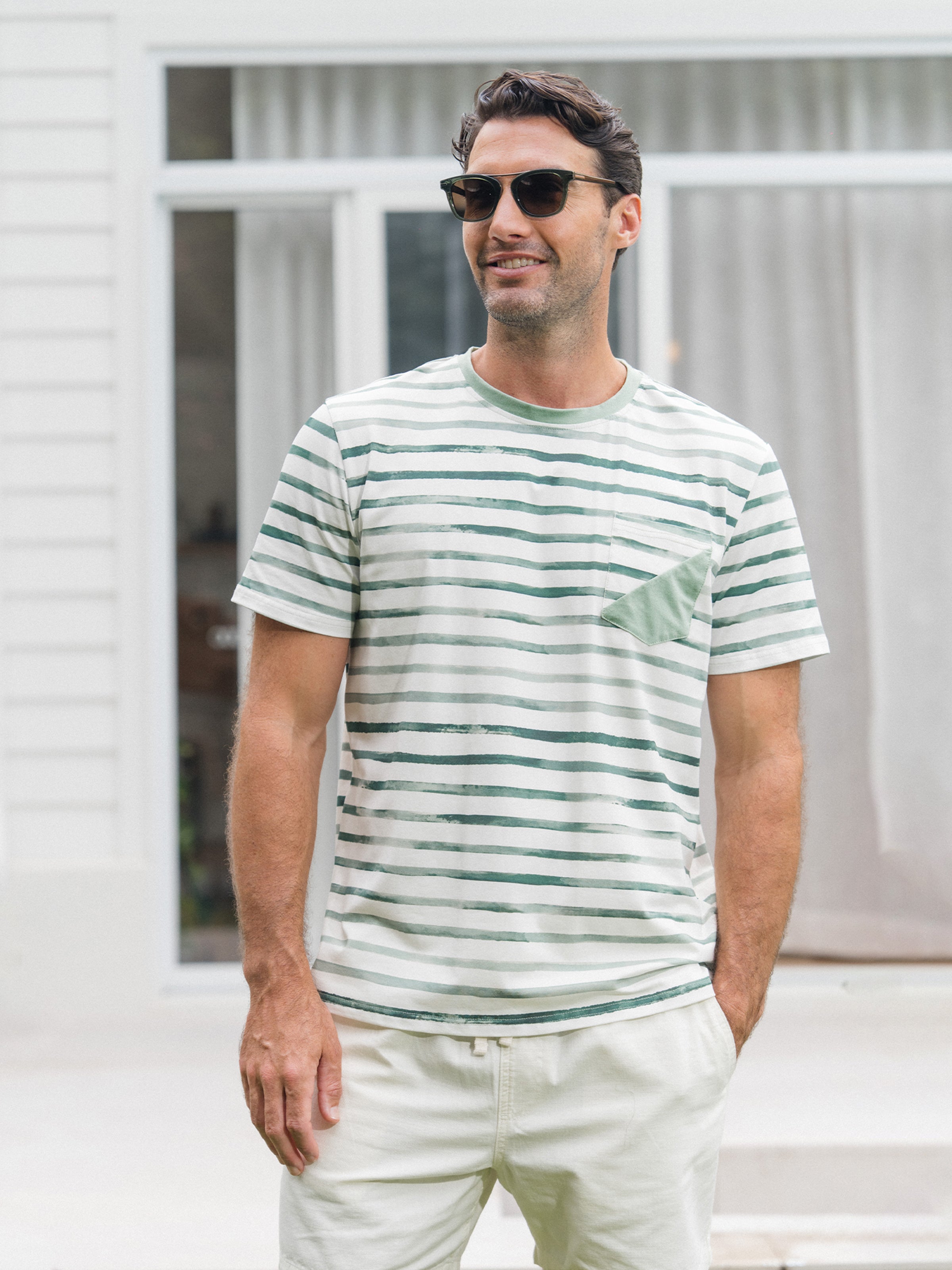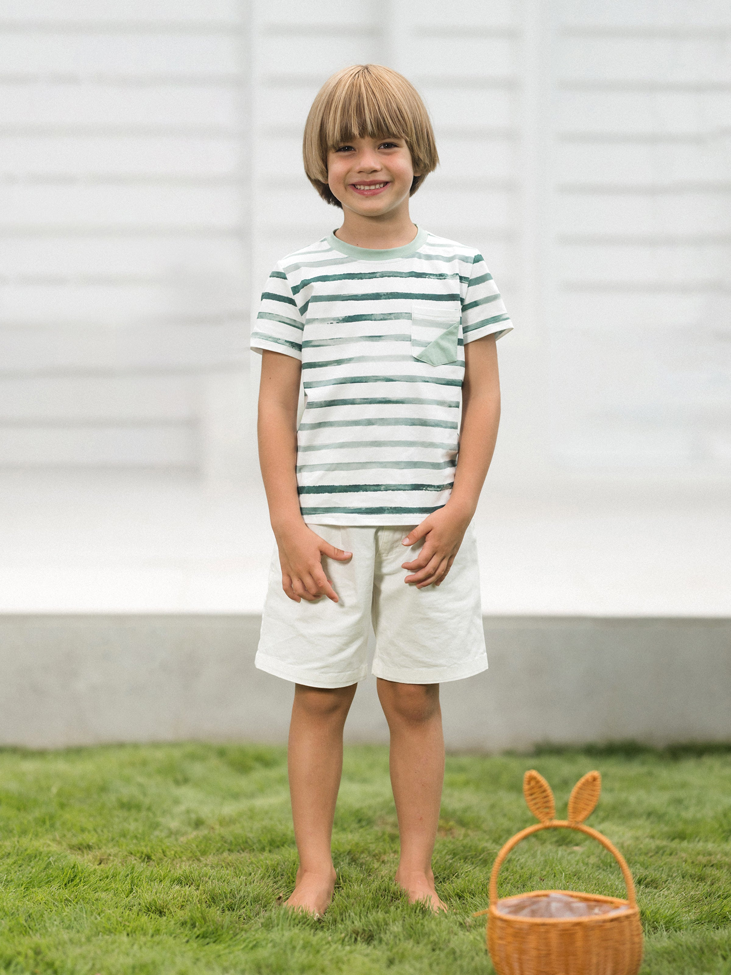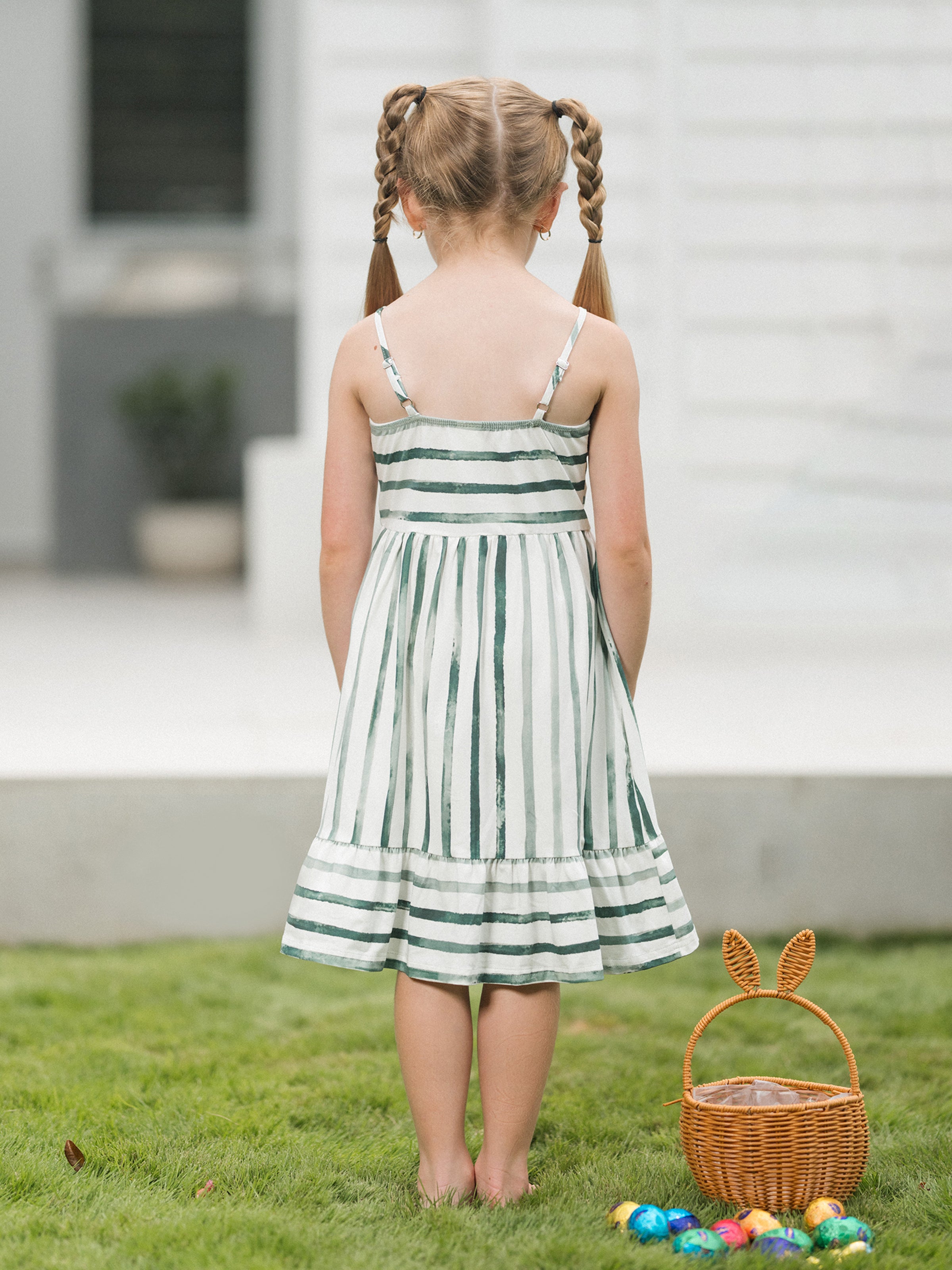 Family Matching Cotton Outfits Set Green Striped T-Shirt and Dress Set for Dad, Mom, Kids & Baby, Perfect for Summer Family Outings & Photos Green