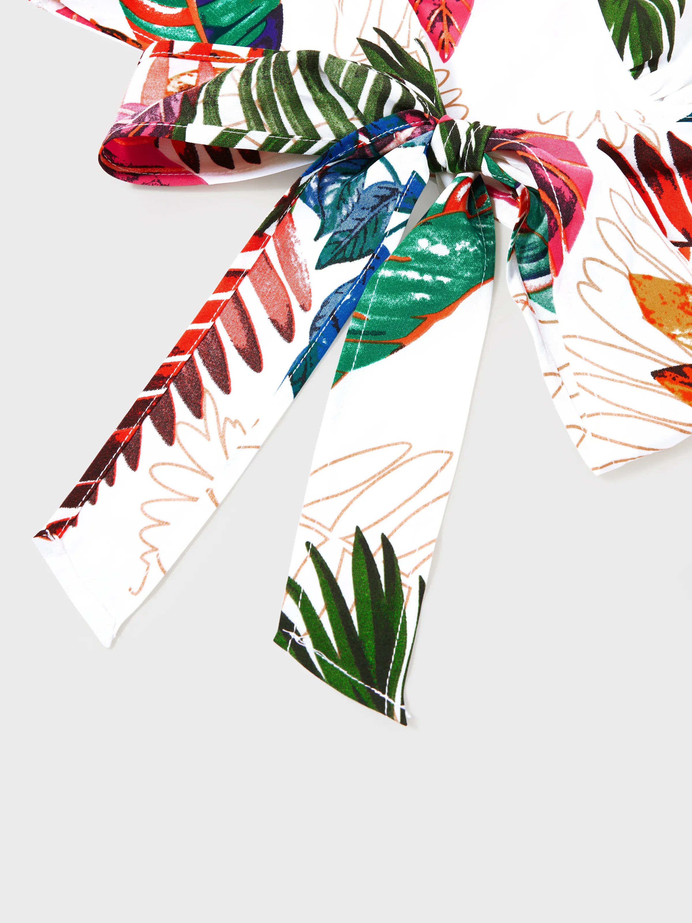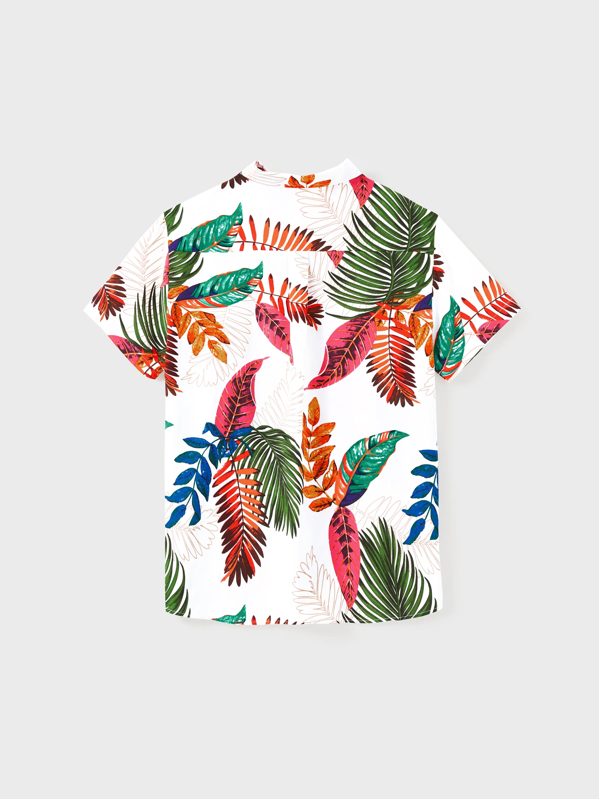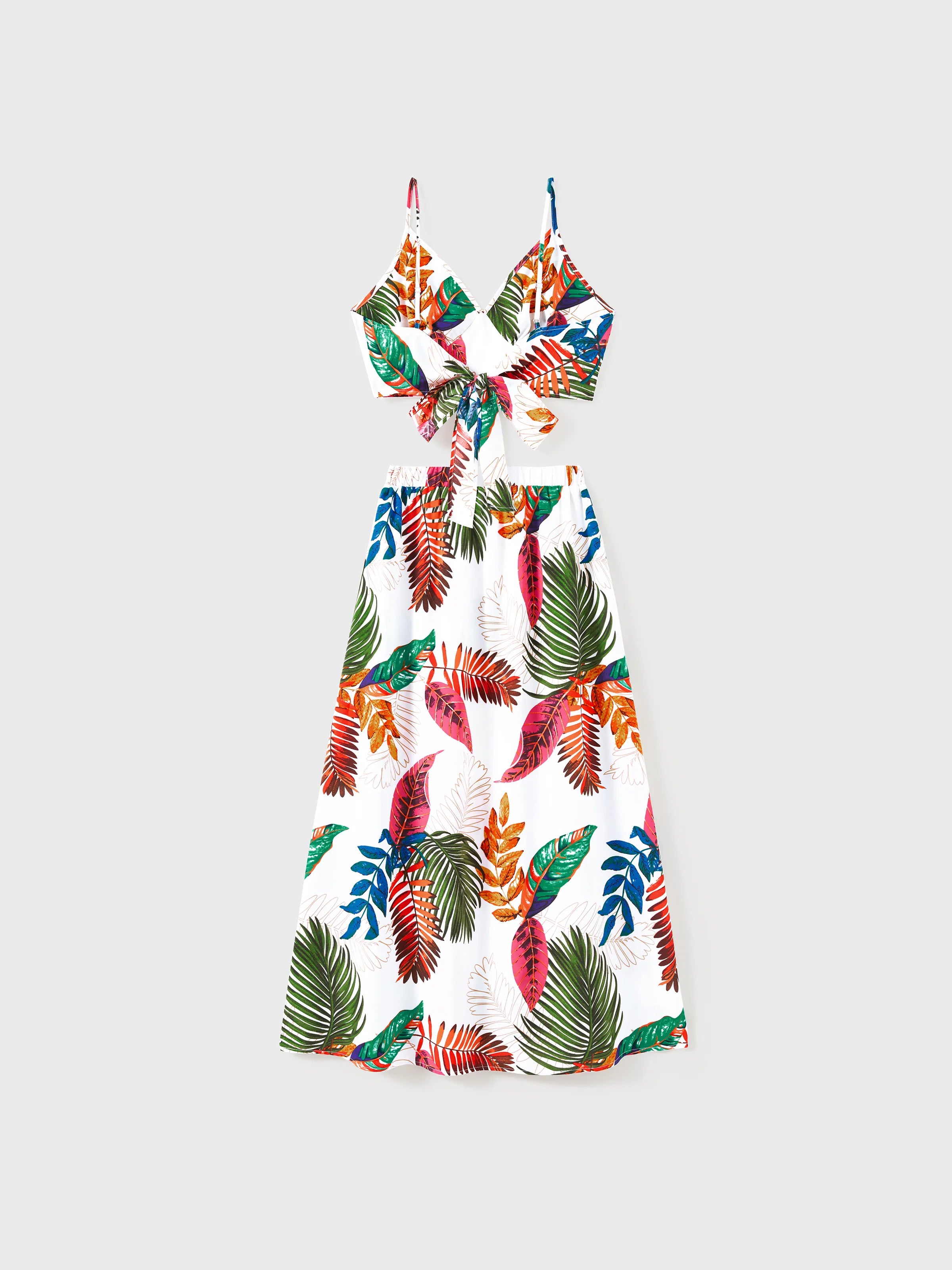 Family Matching Couple Outfits Tropical Leaf Print Tie?Front Camisole Top & Skirt or Short?Sleeve Hawaiian Shirt Beachwear Set Multi-color