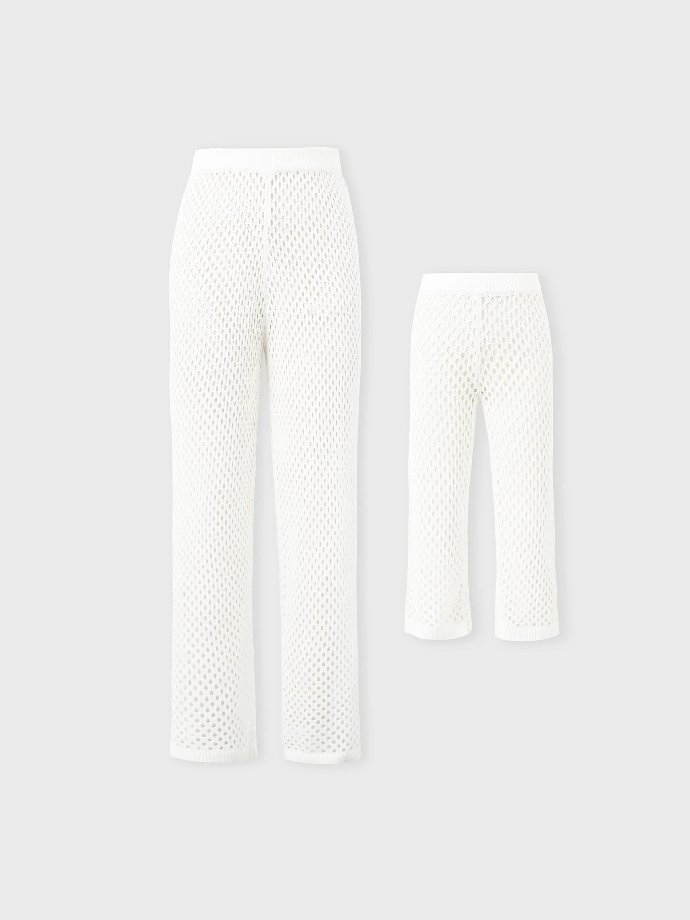 Family Matching Crochet Mid-Rise Swim Cover up White Cargo Pants for Mommy and Me White