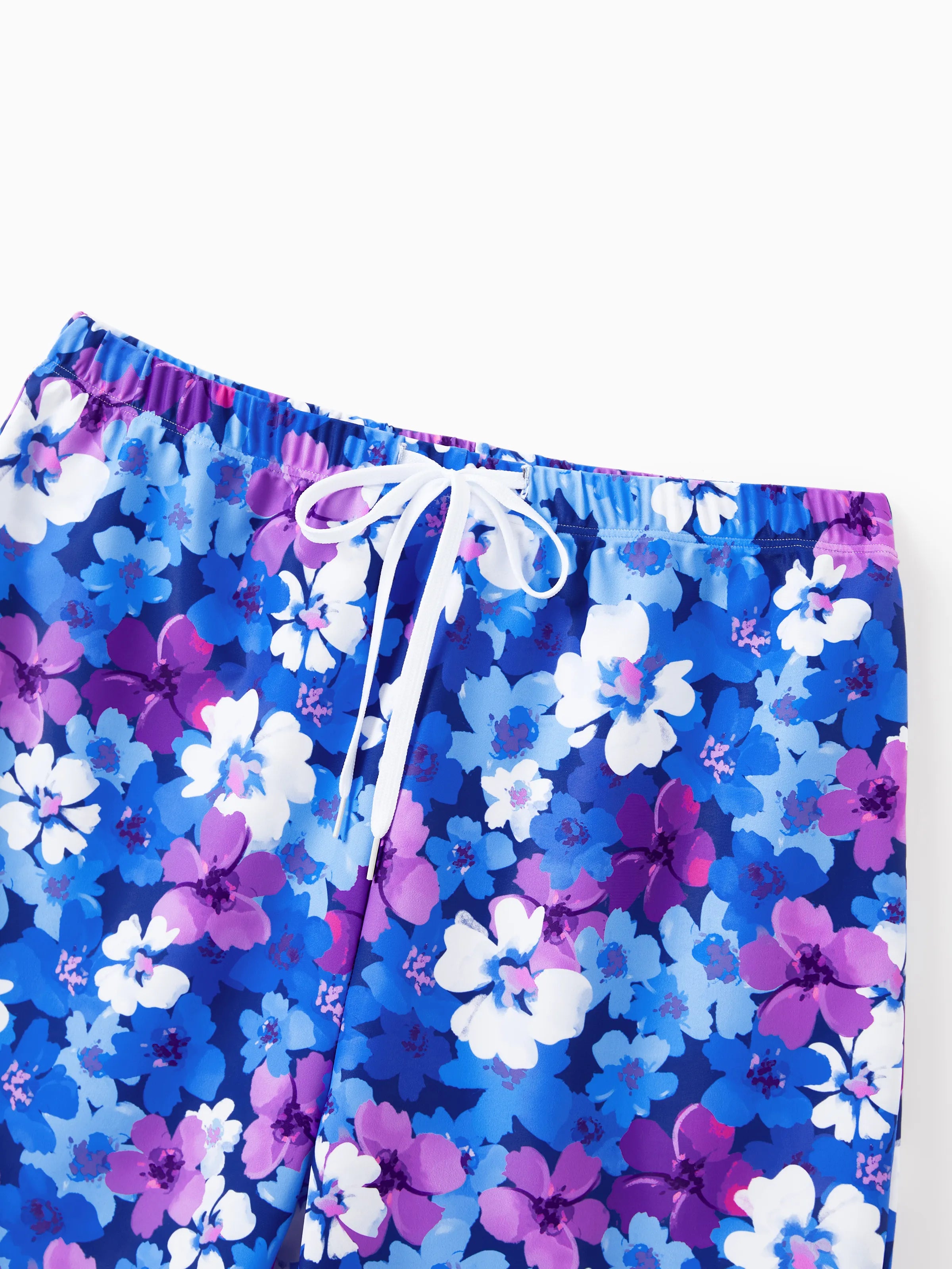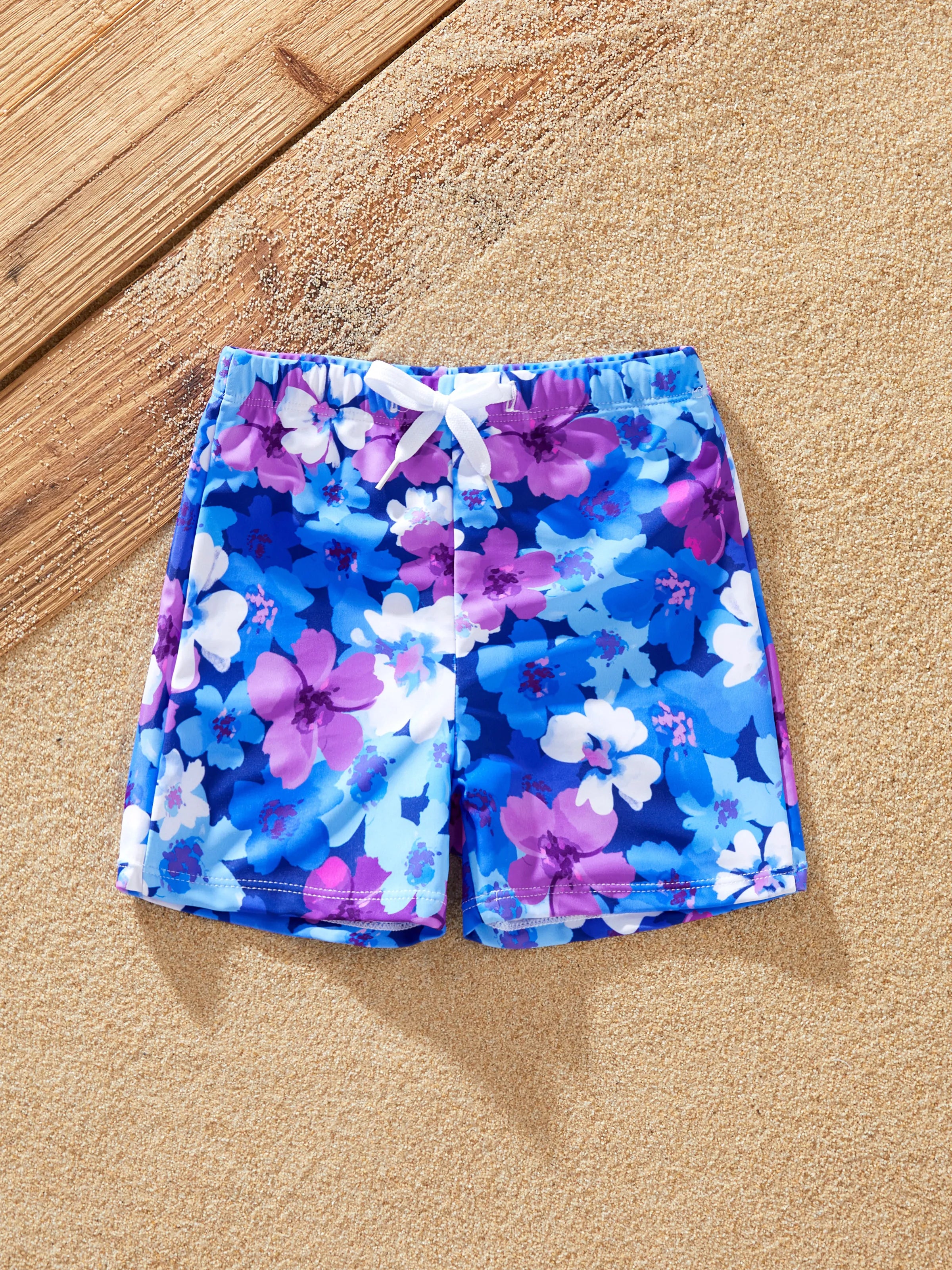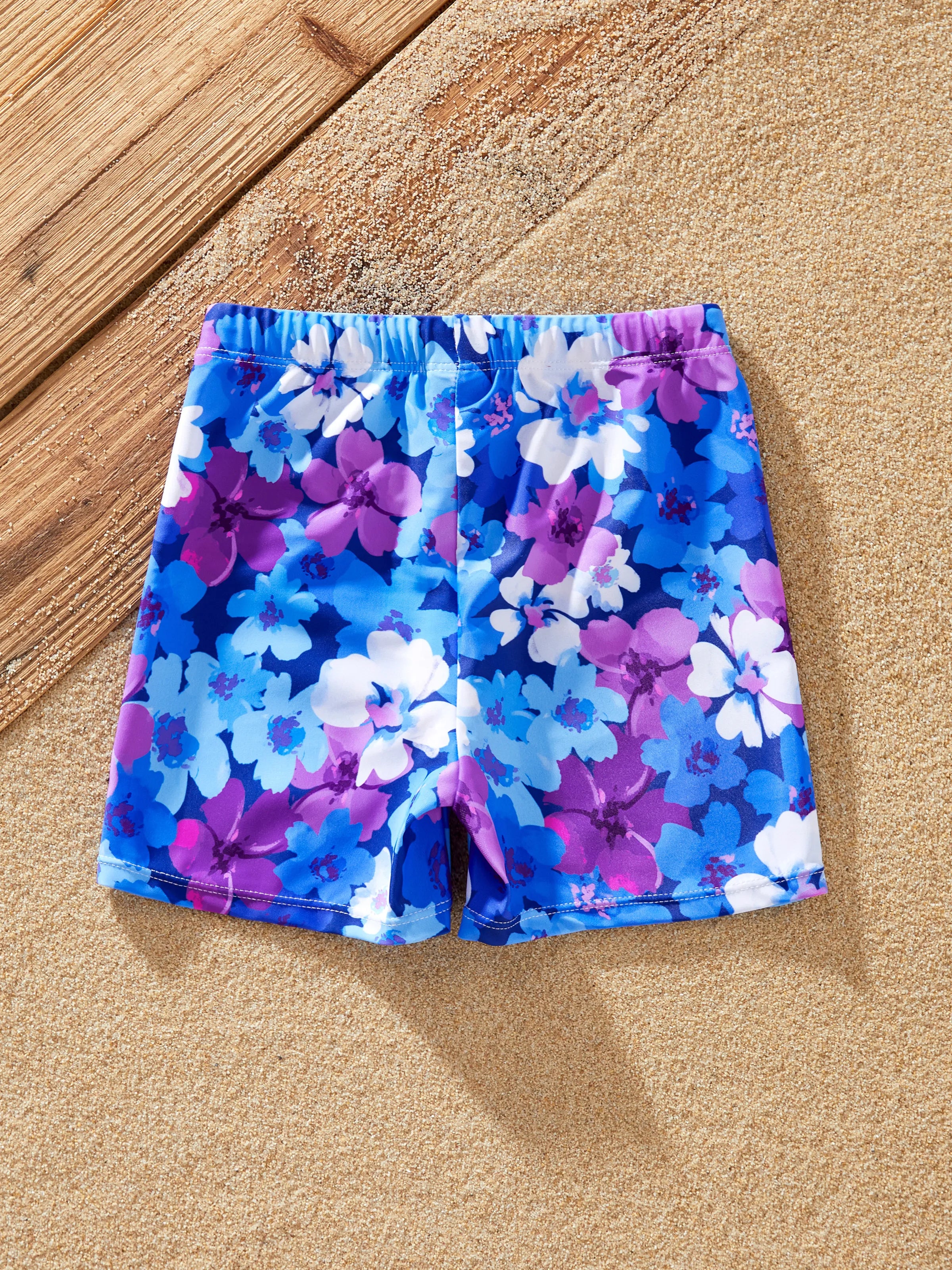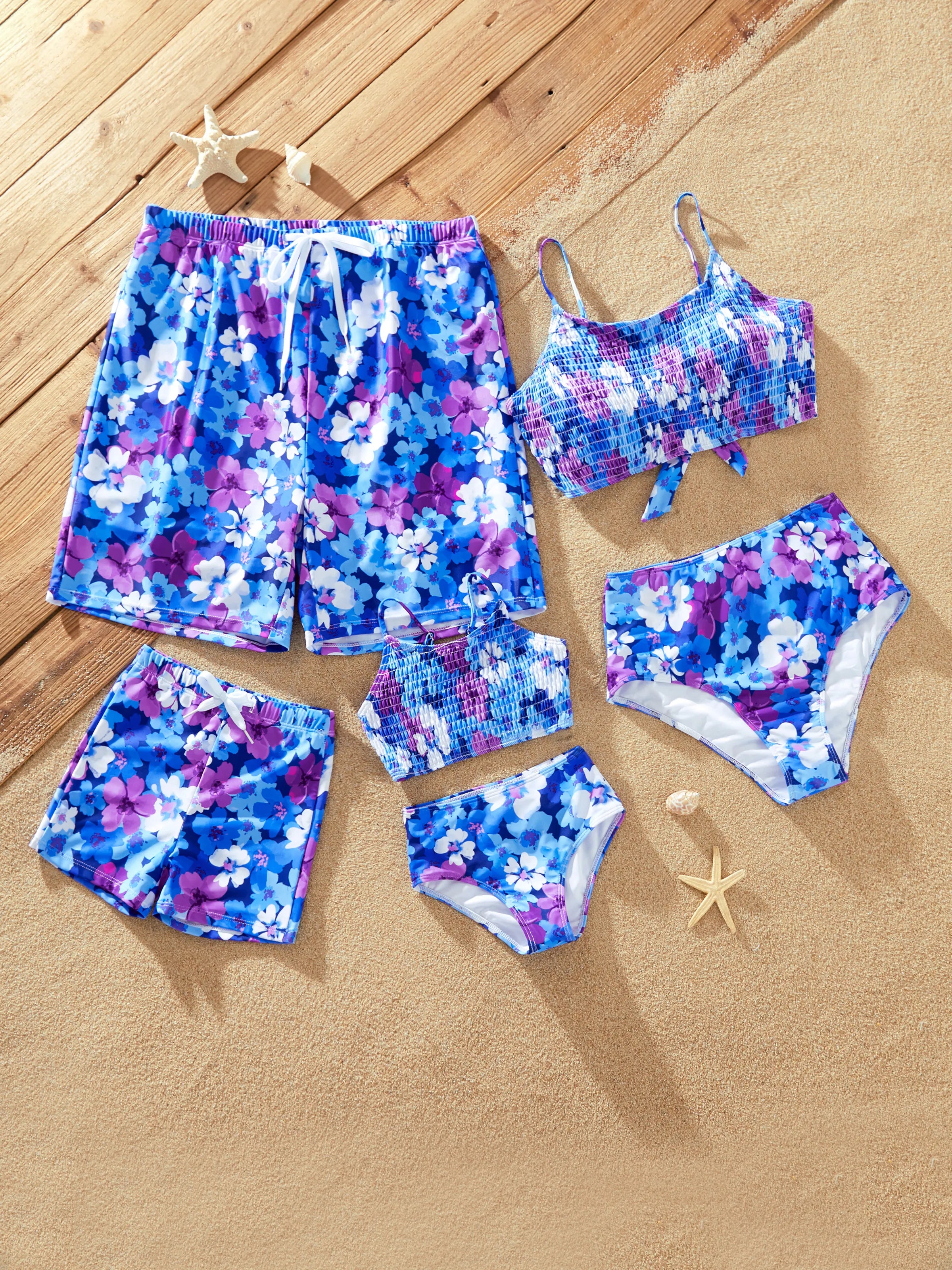 Family Matching Flora Swim Trunks or Smocking Strap two-piece Swimsuit Purple
