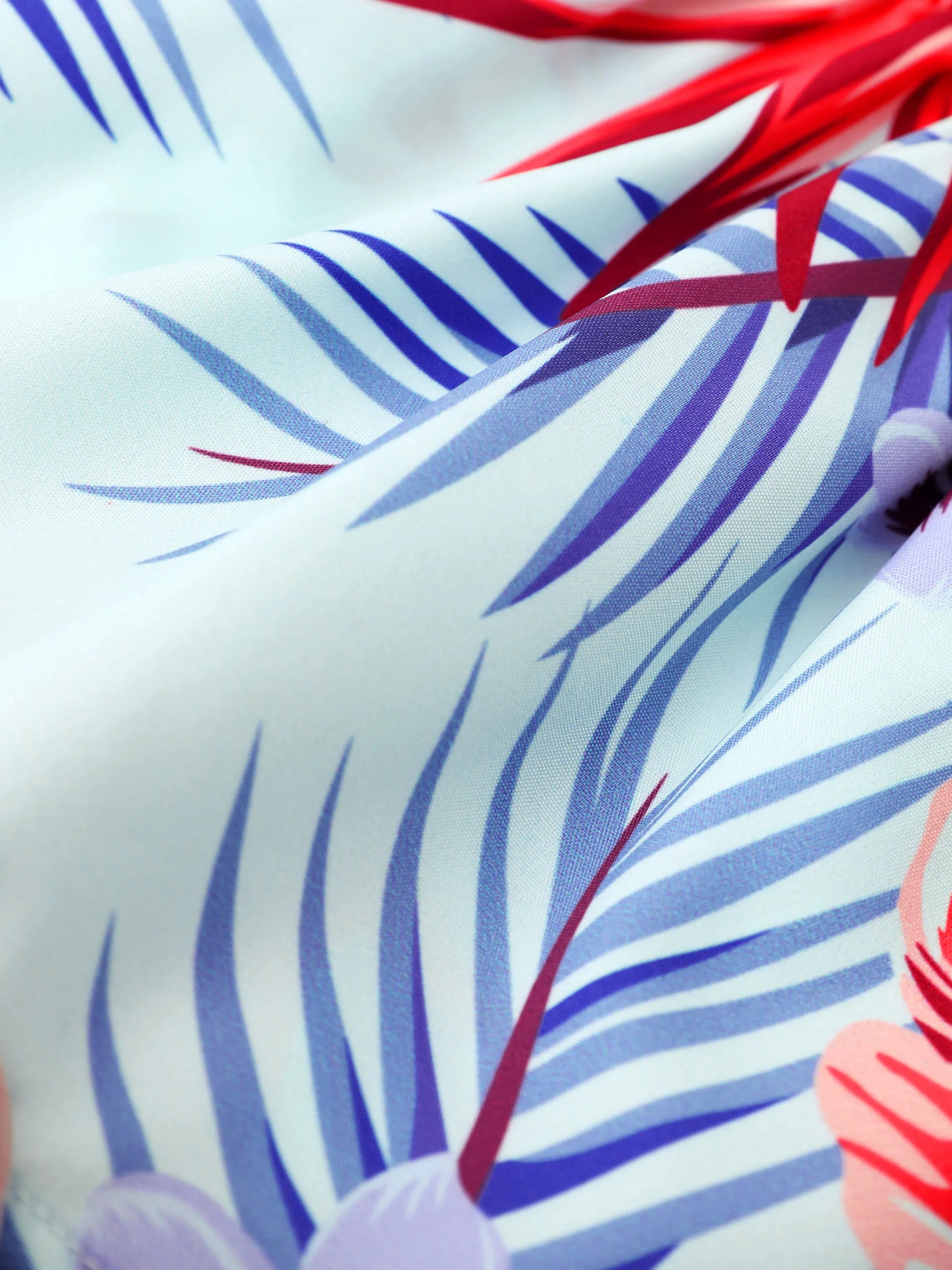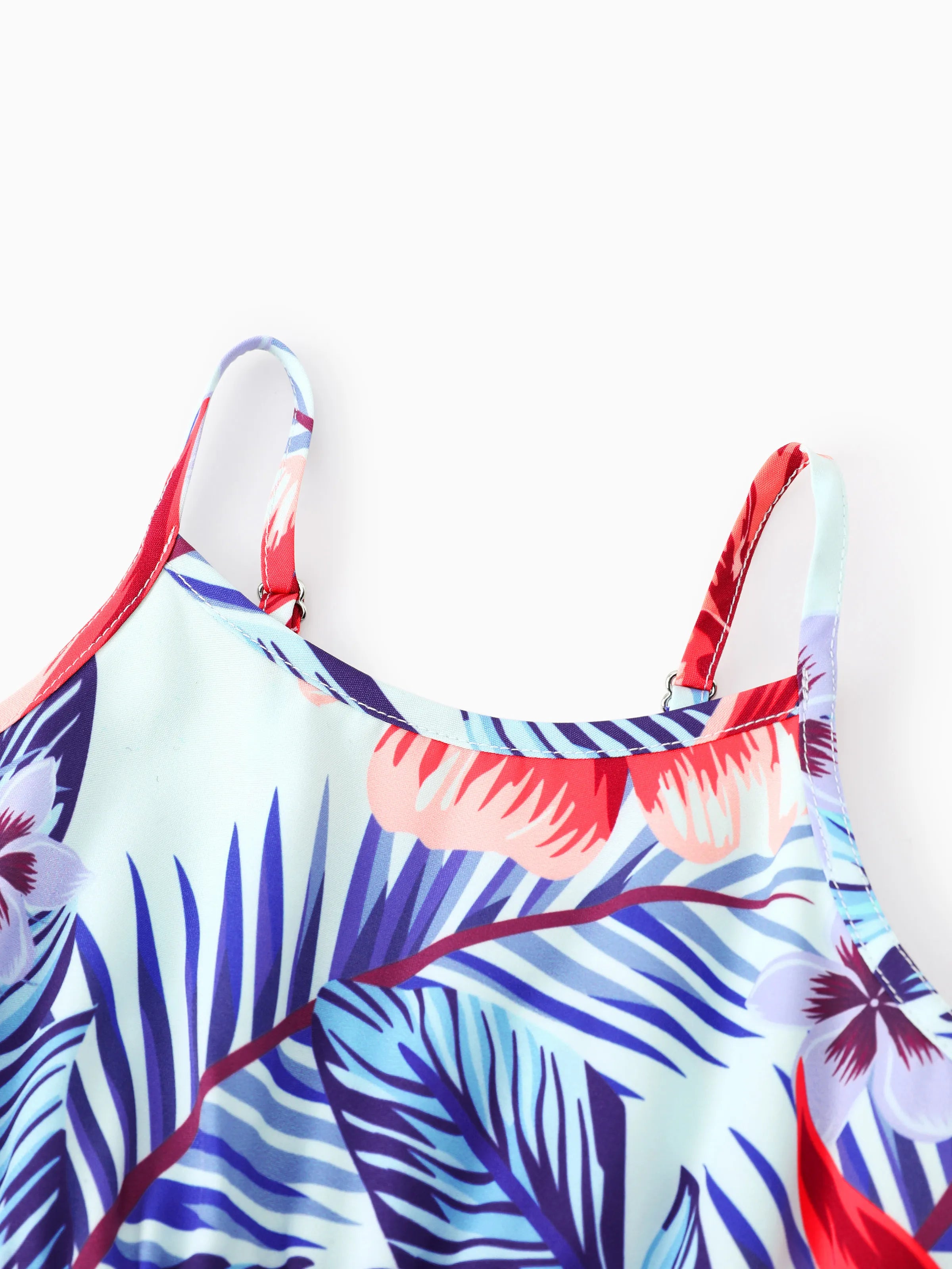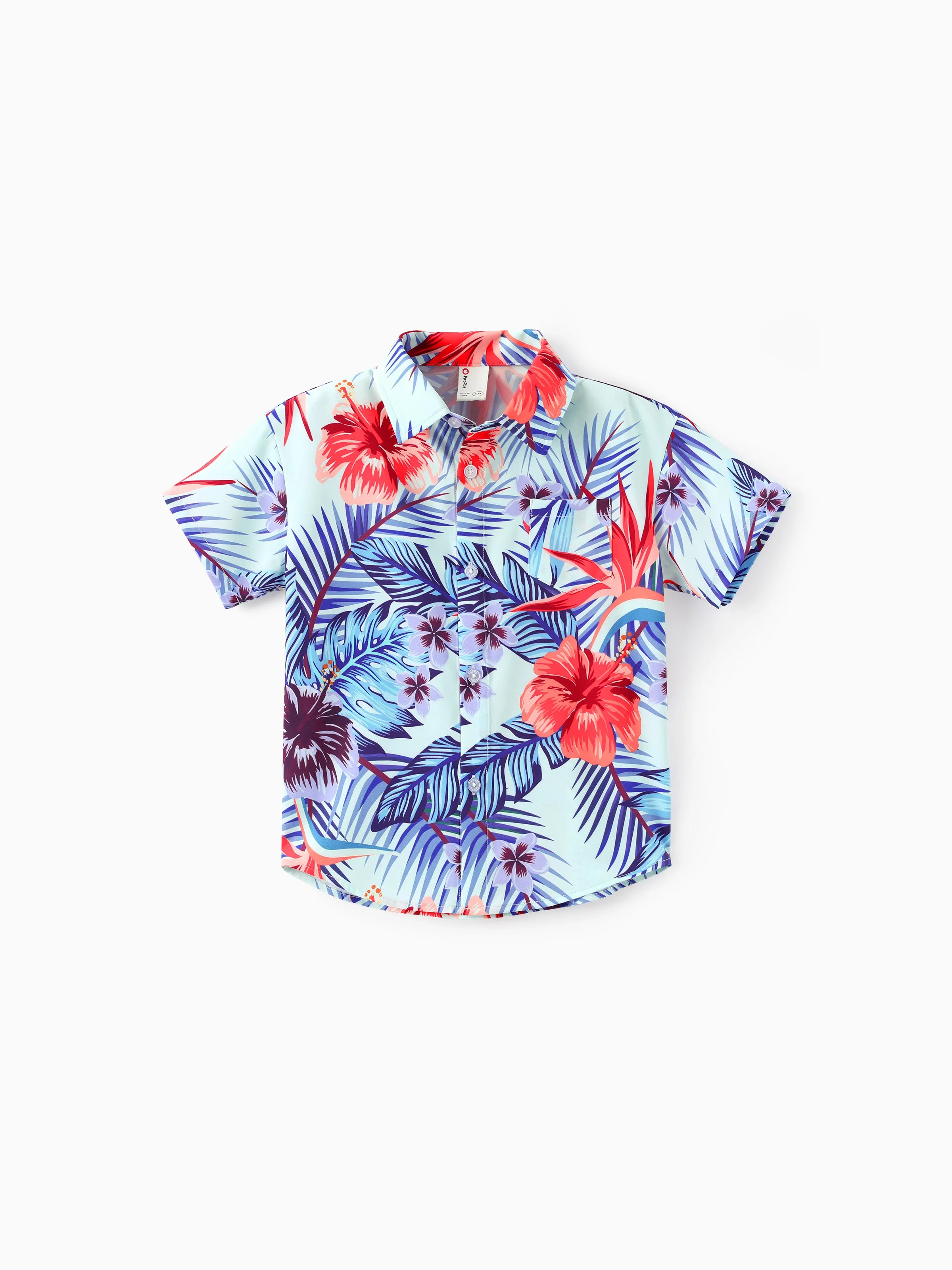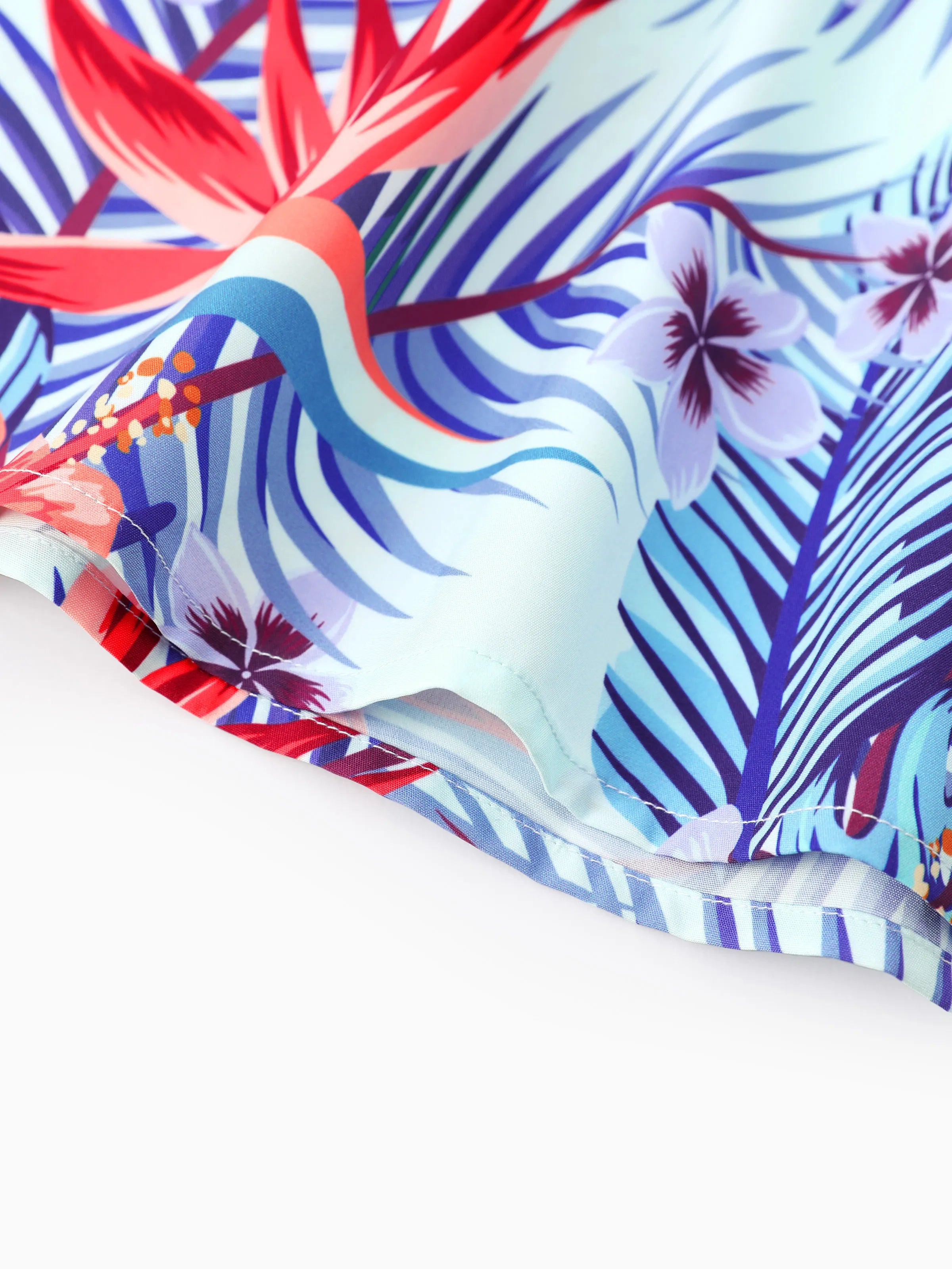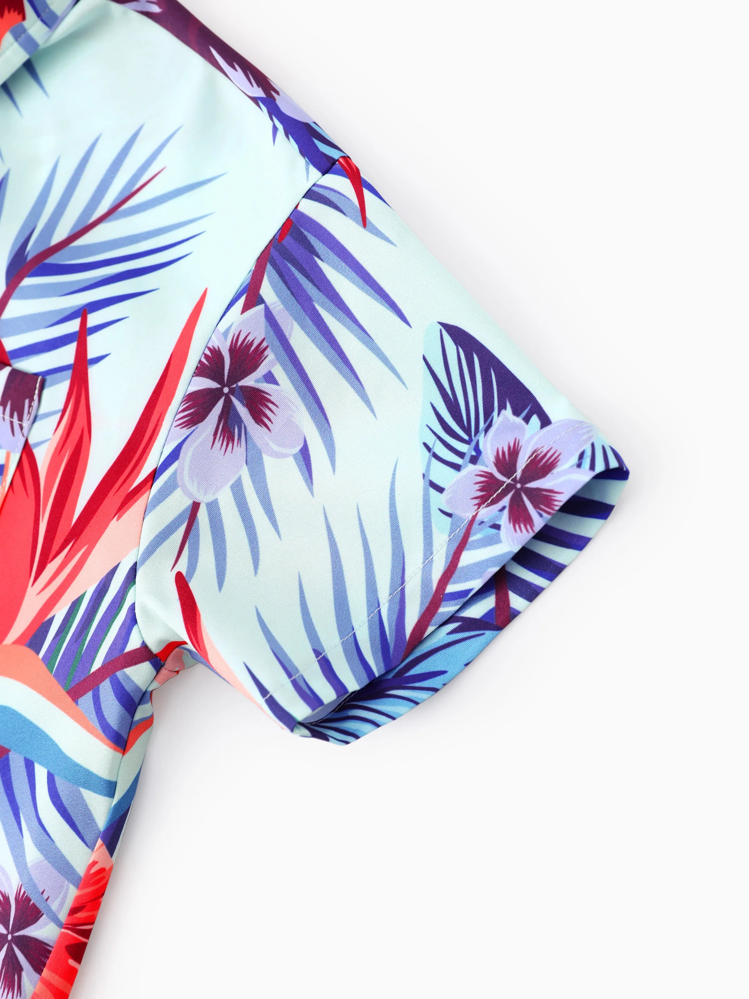 Family Matching Floral Print Short-sleeve Shirt or smocking Strap Dress Light Blue