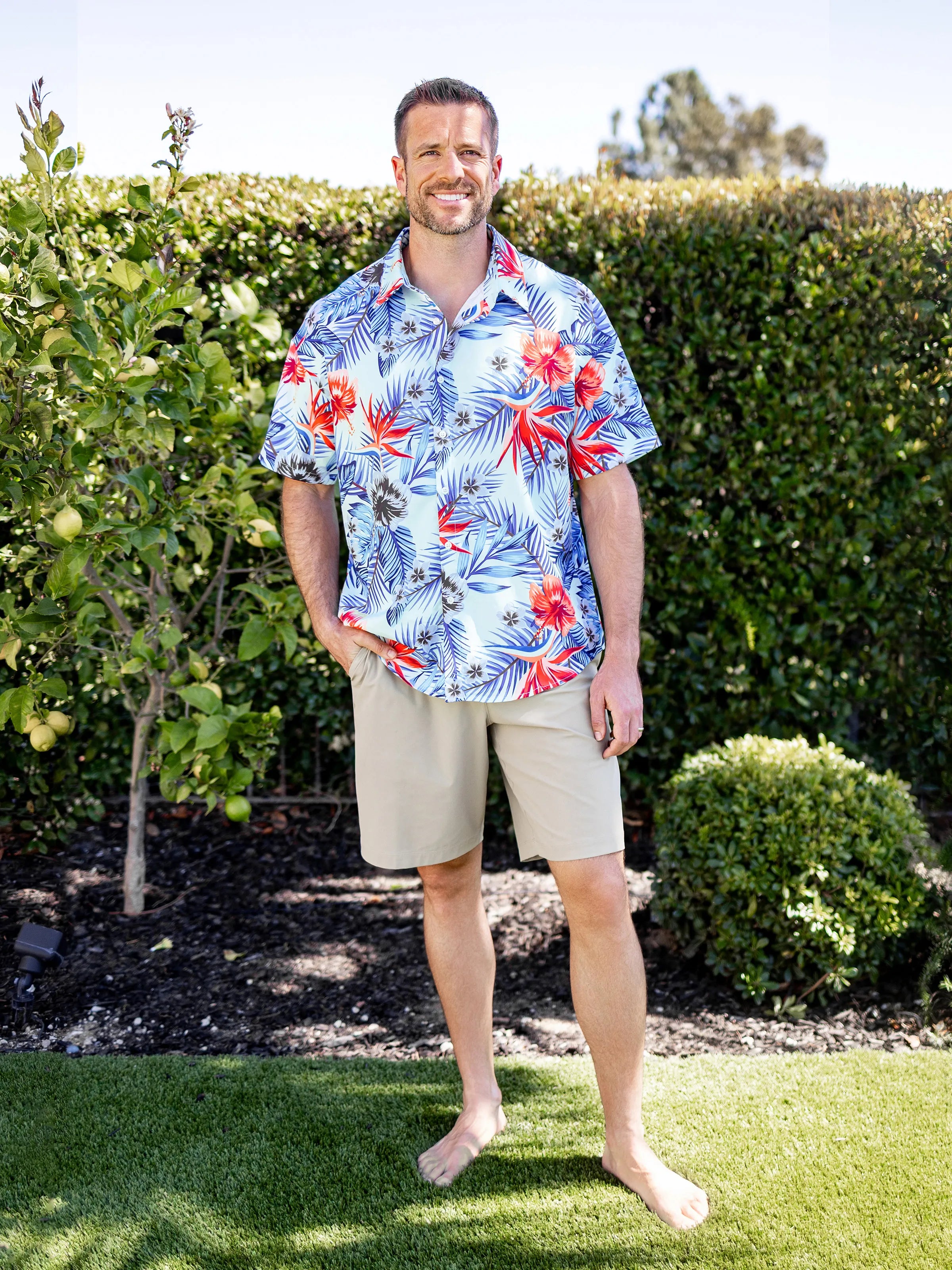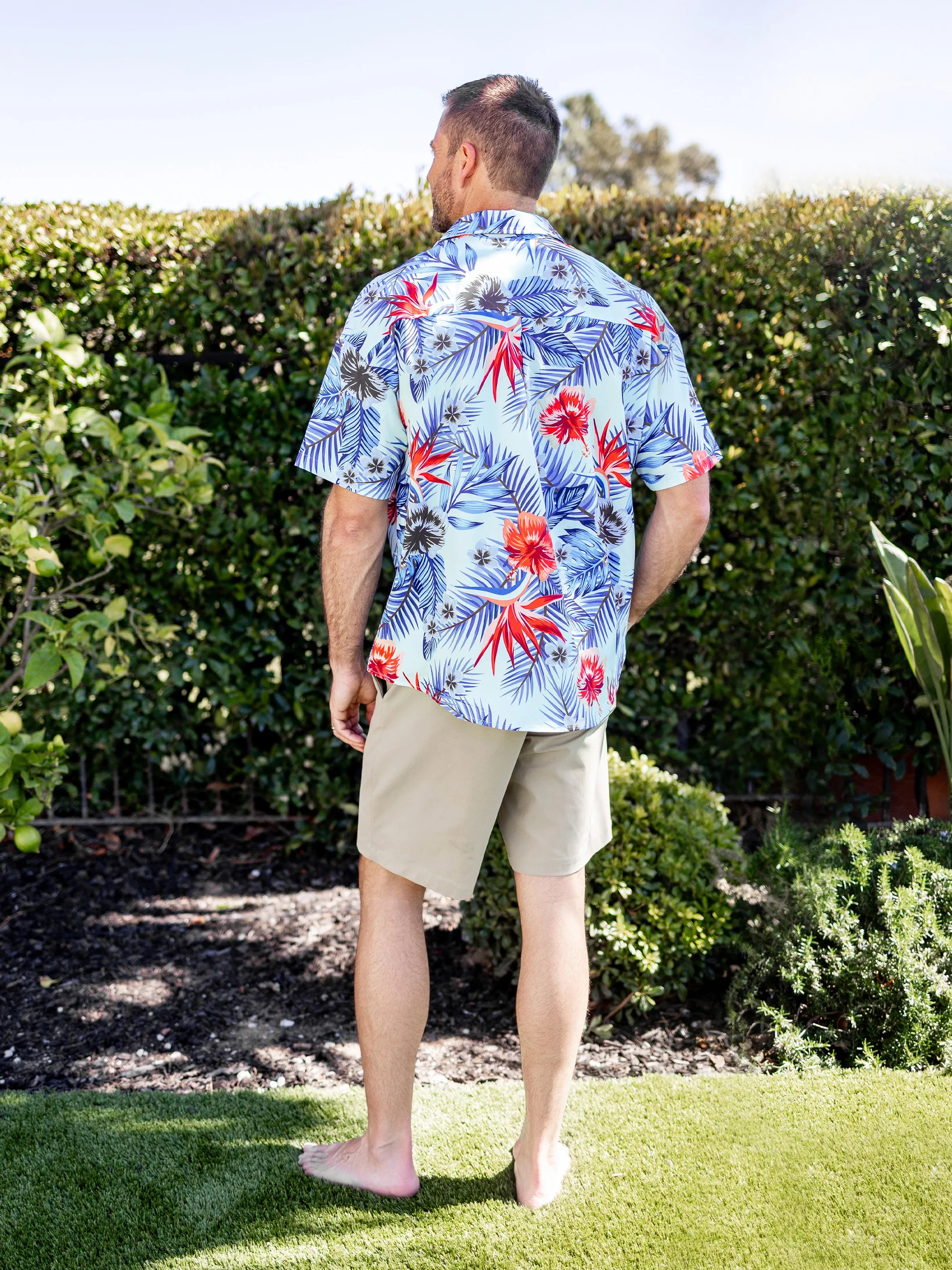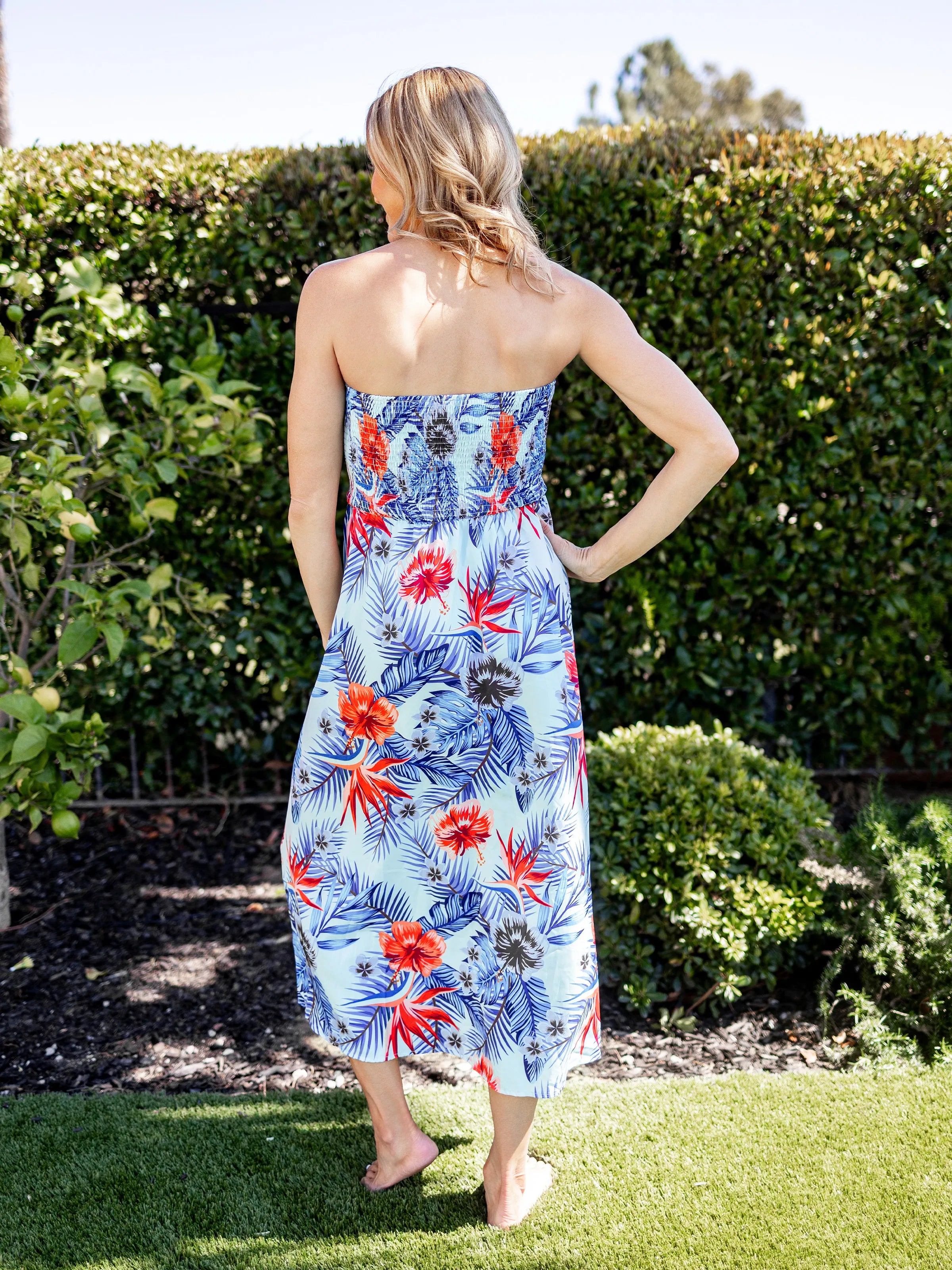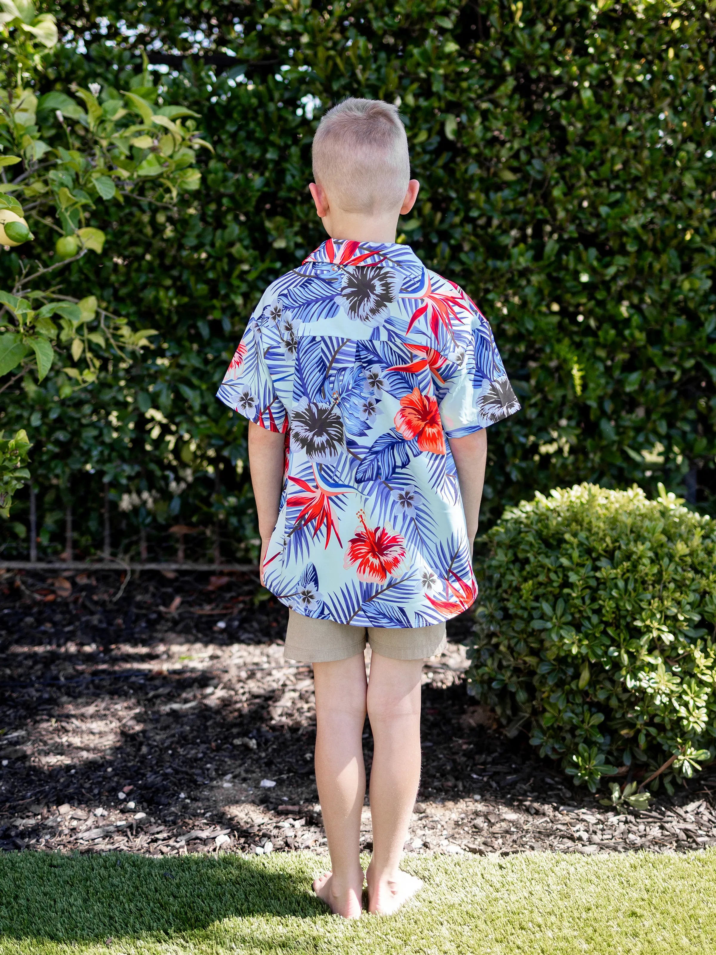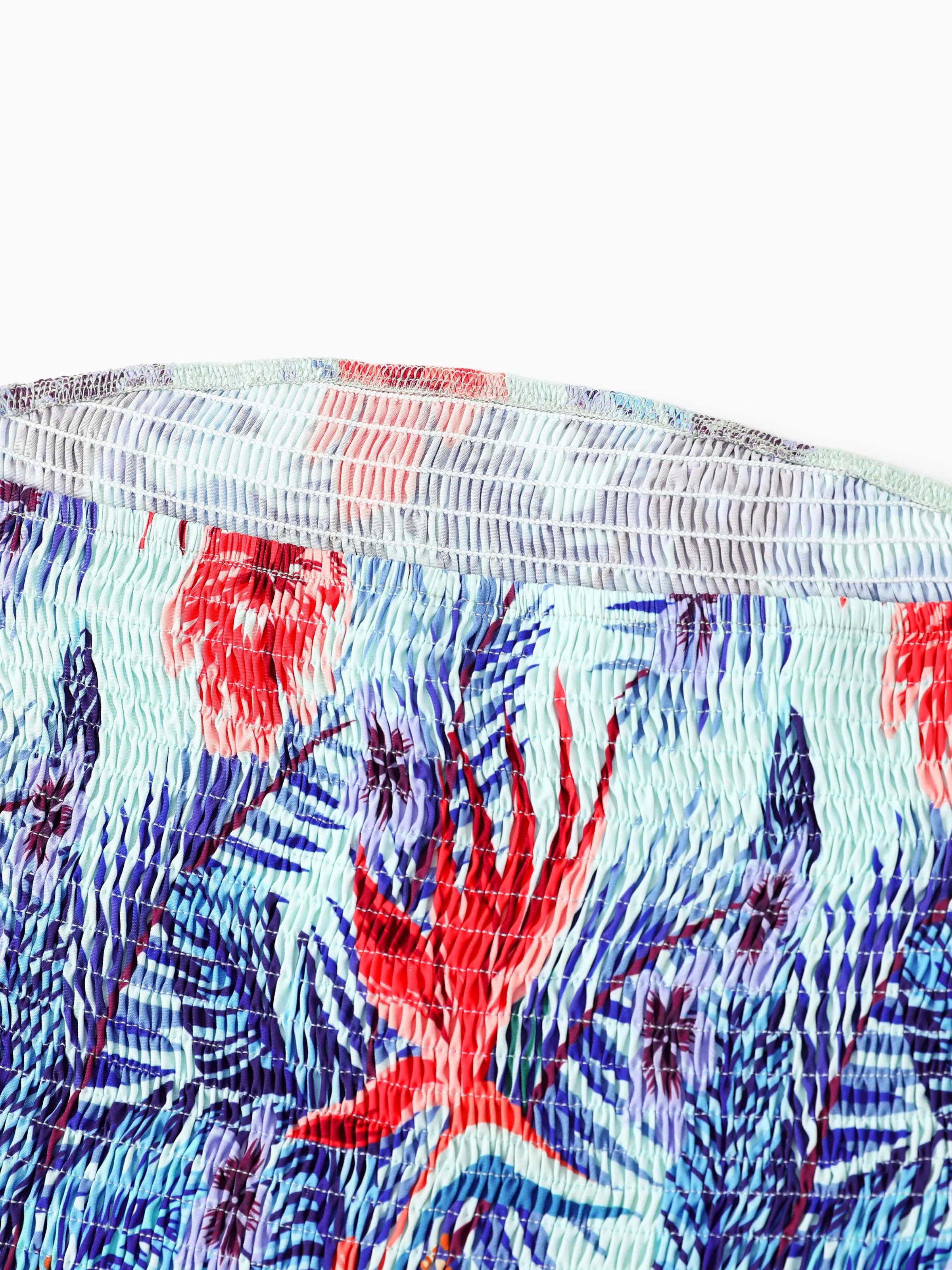 Family Matching Floral Print Short-sleeve Shirt or smocking Strap Dress Light Blue