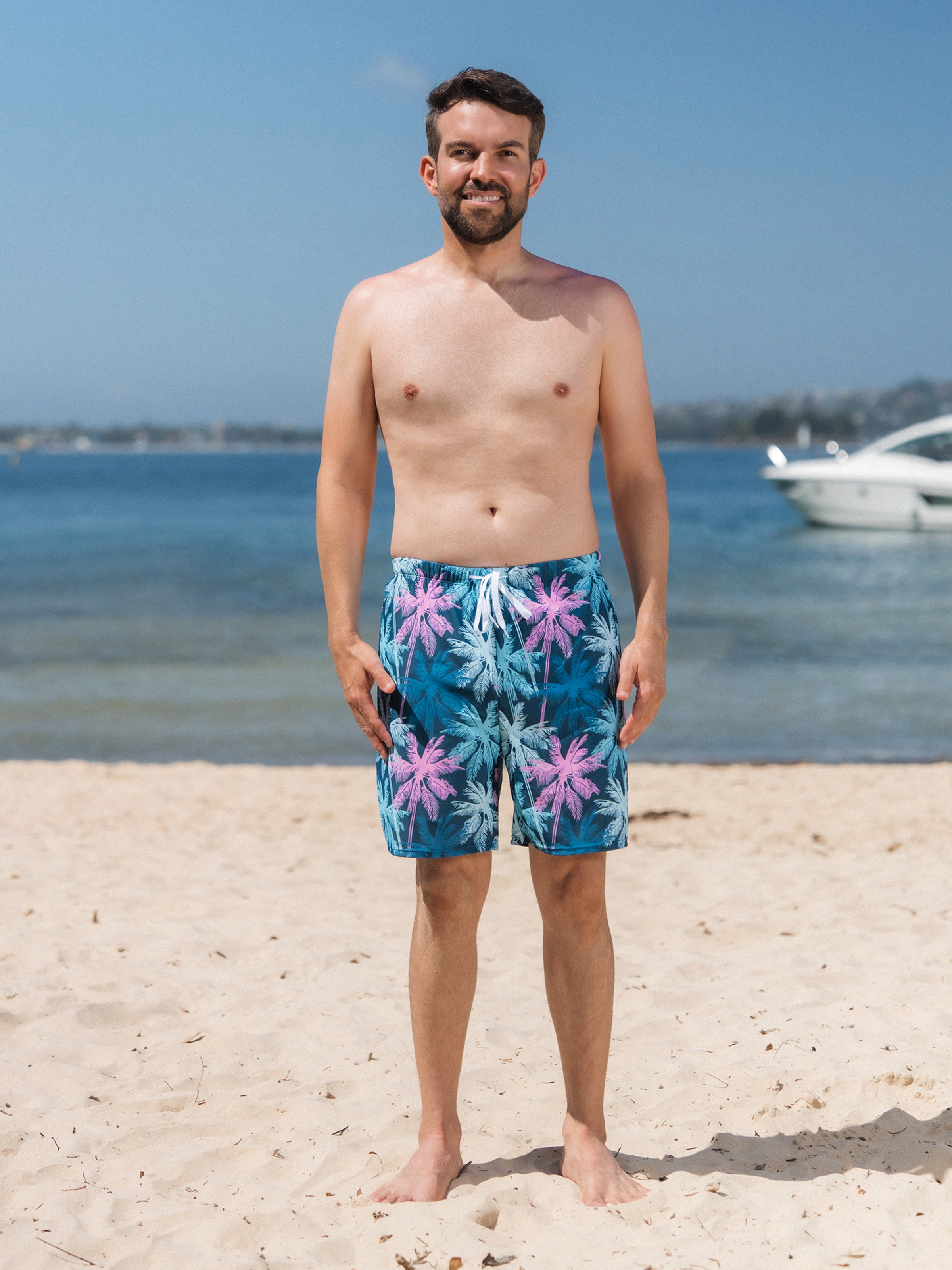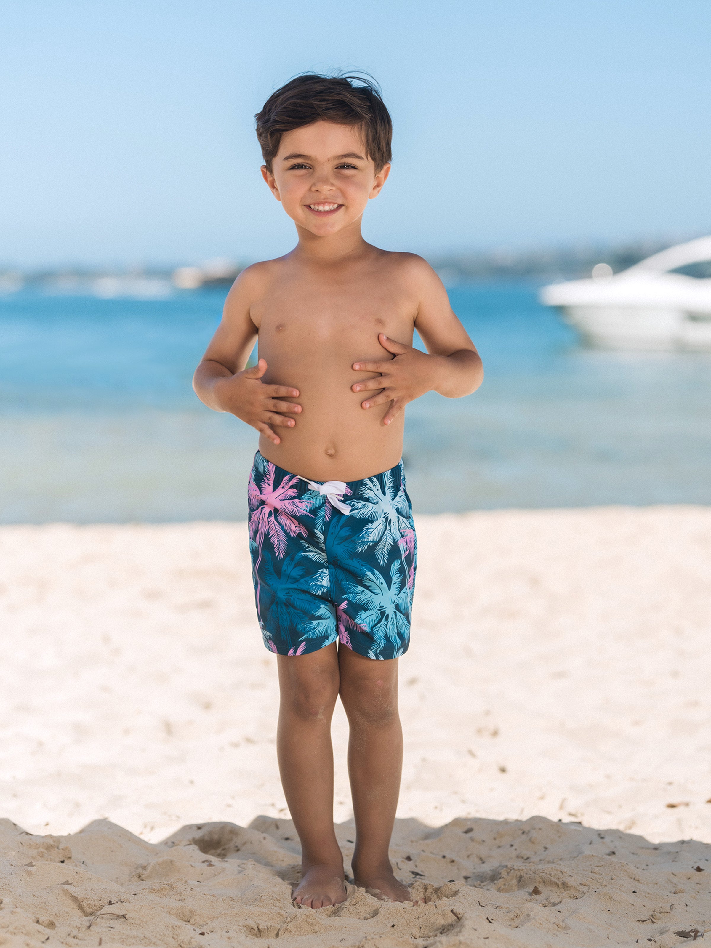 Family Matching Swimsuits Tropical Palm Tree Print, Mommy and Me Ruffle two-piece Swimsuit, Daddy and Son Swim Trunks Set, Beach Vacation Swimwear Turquoise
