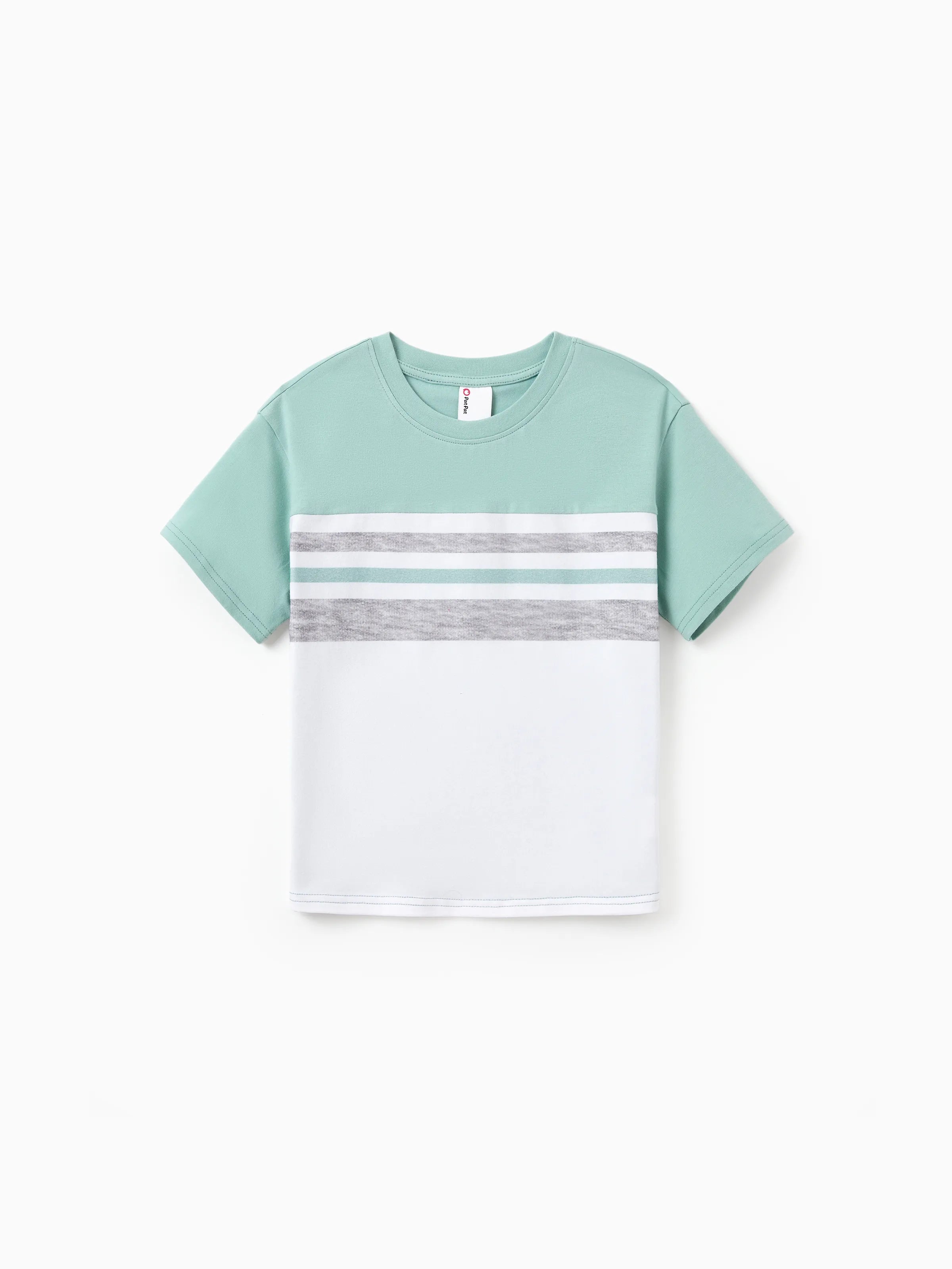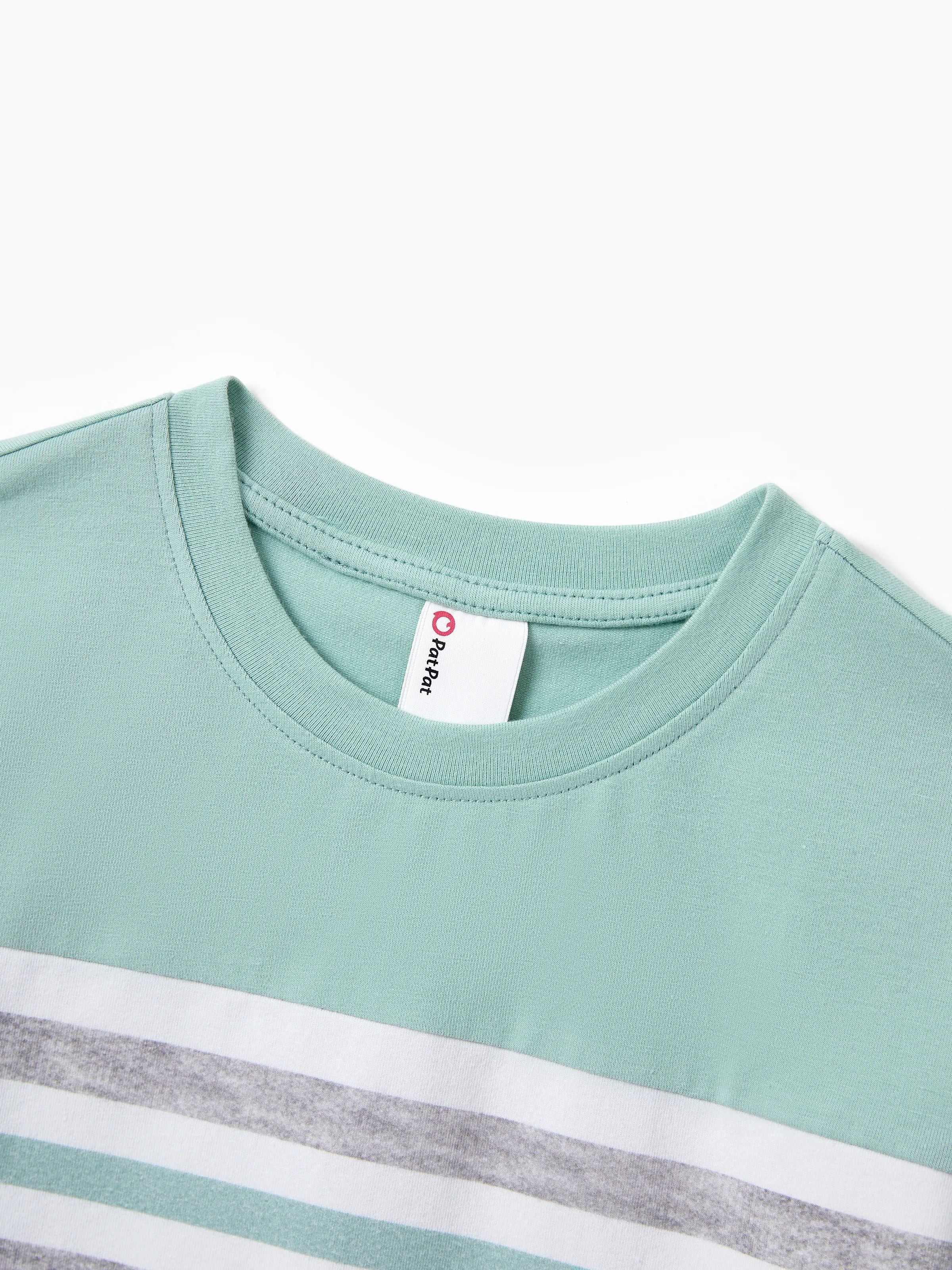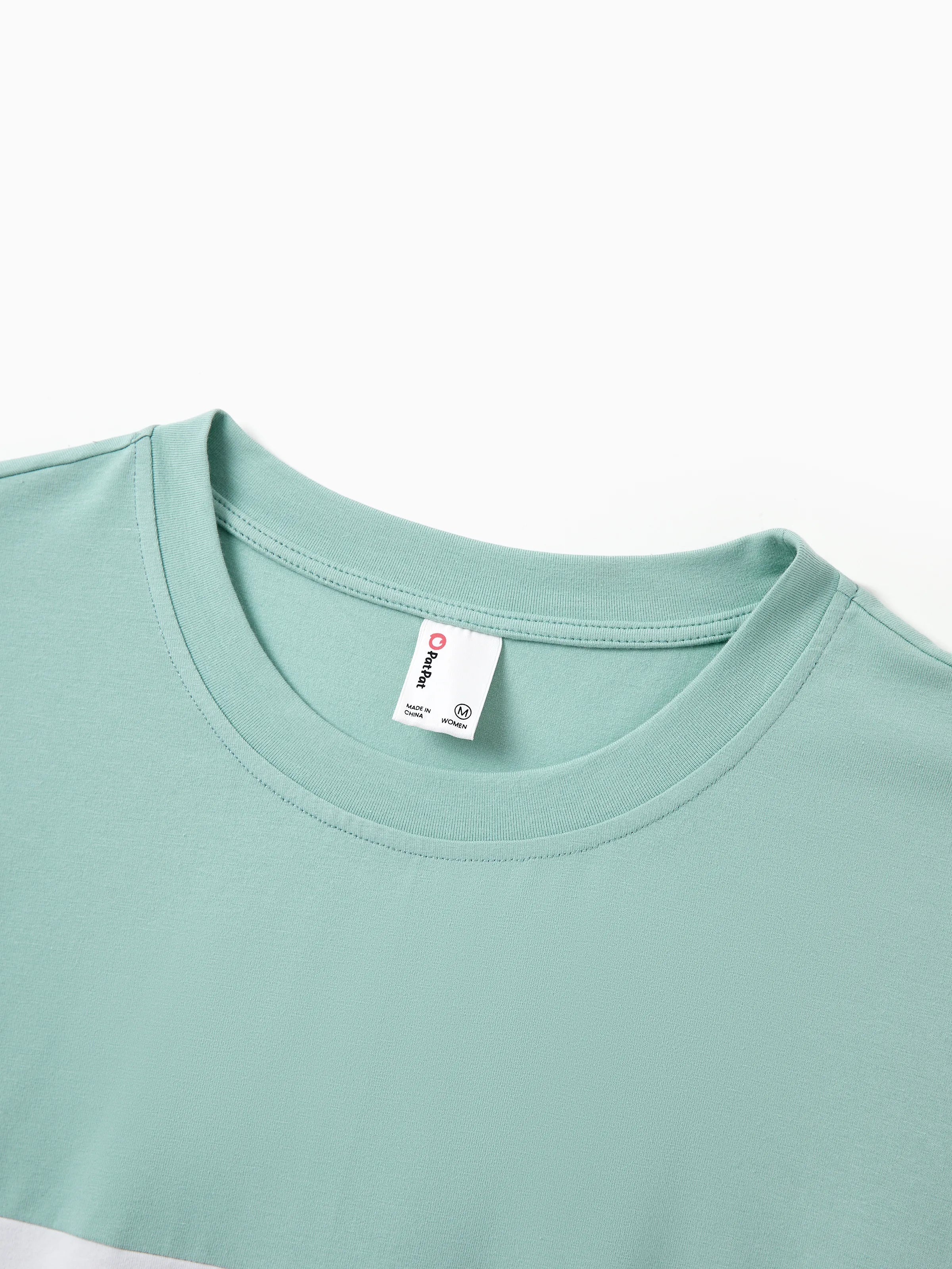 This family matching set includes a stylish green polka dot dress for mom, daughter, and baby, along with a comfortable color block tee for dad and son. Perfect for family outings, vacations, or casual days at home, this coordinated set makes family dressing easy and fun.