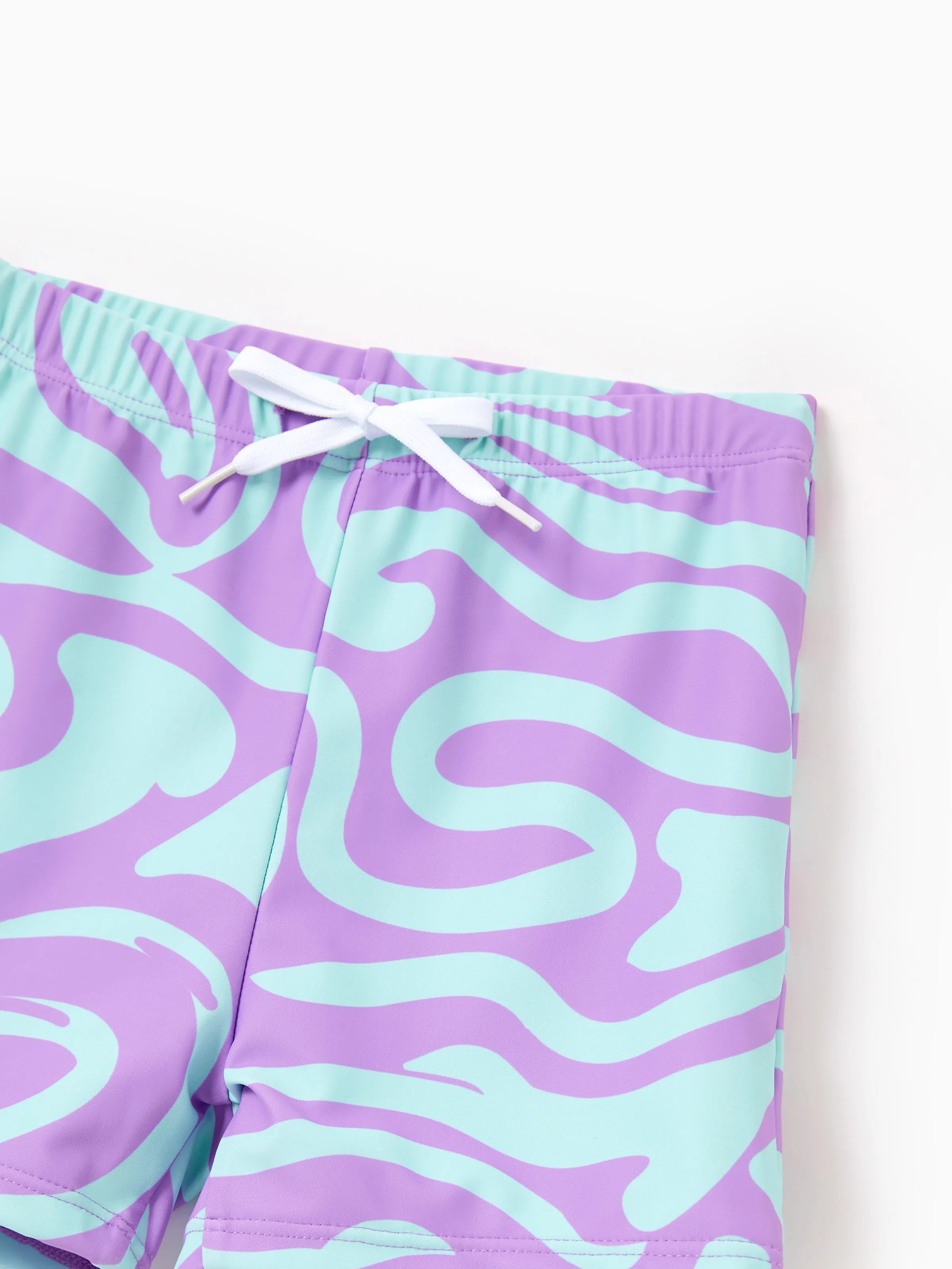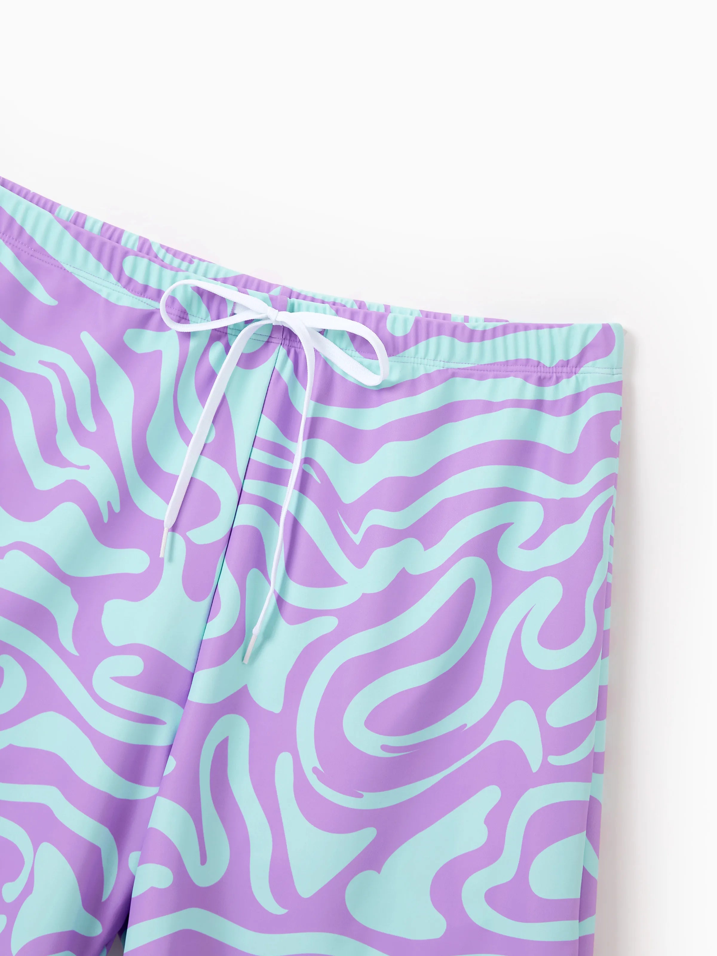 Family Matching Trendy Purple & Blue Wave Print Swim Trunks or Midriff Cutout One-Piece Swimsuit Purple