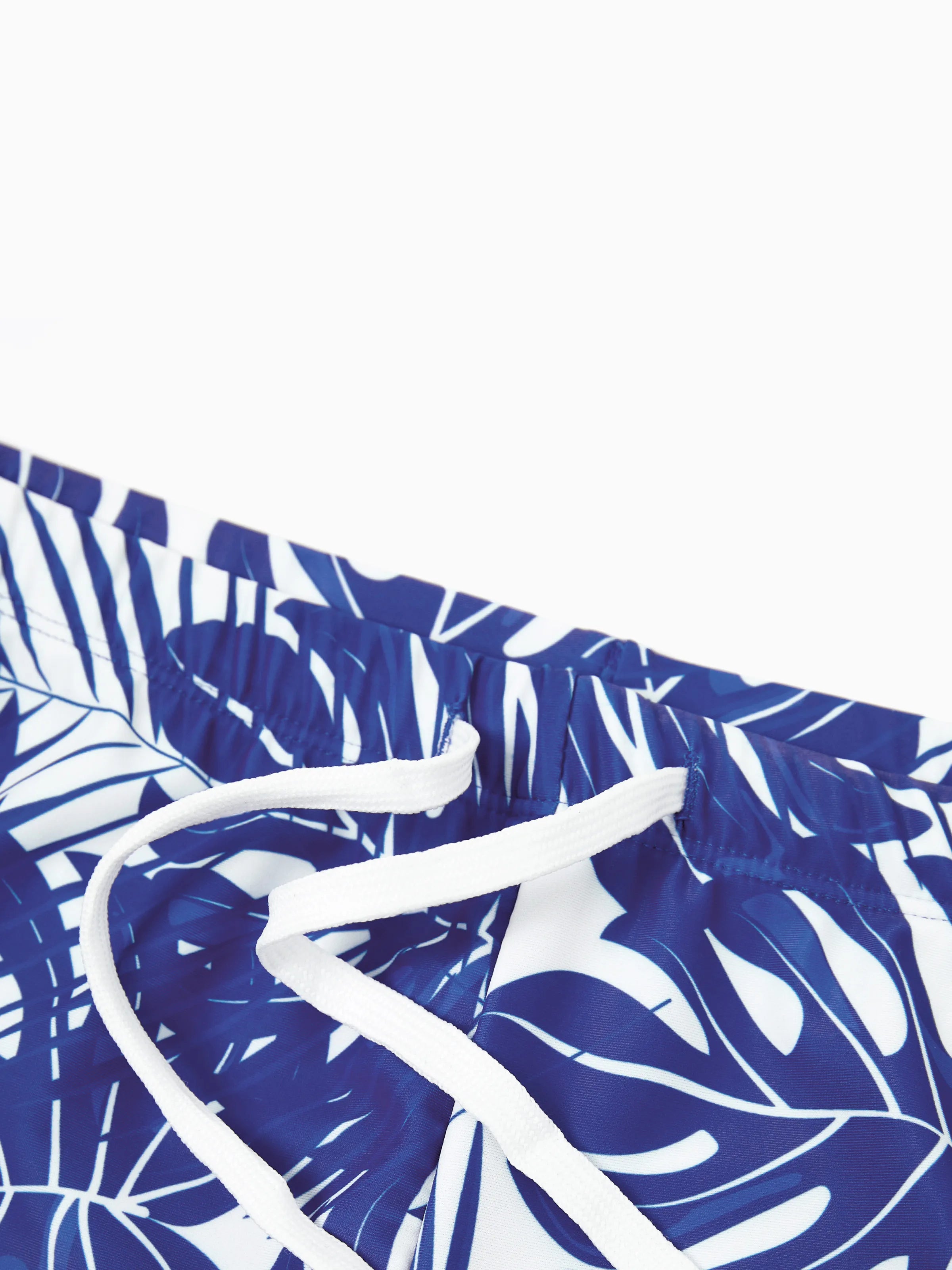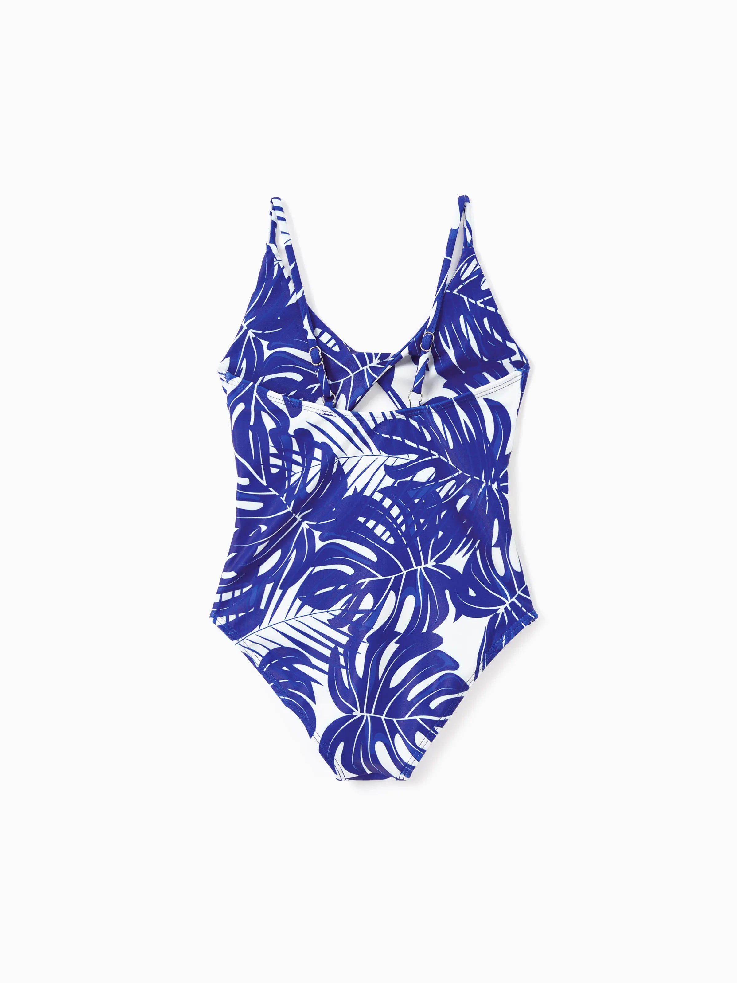 Family Matching Tropical Leaf Print Swim Trunks or Hollow-out Crisscross Straps One-piece Swimsuit Blue