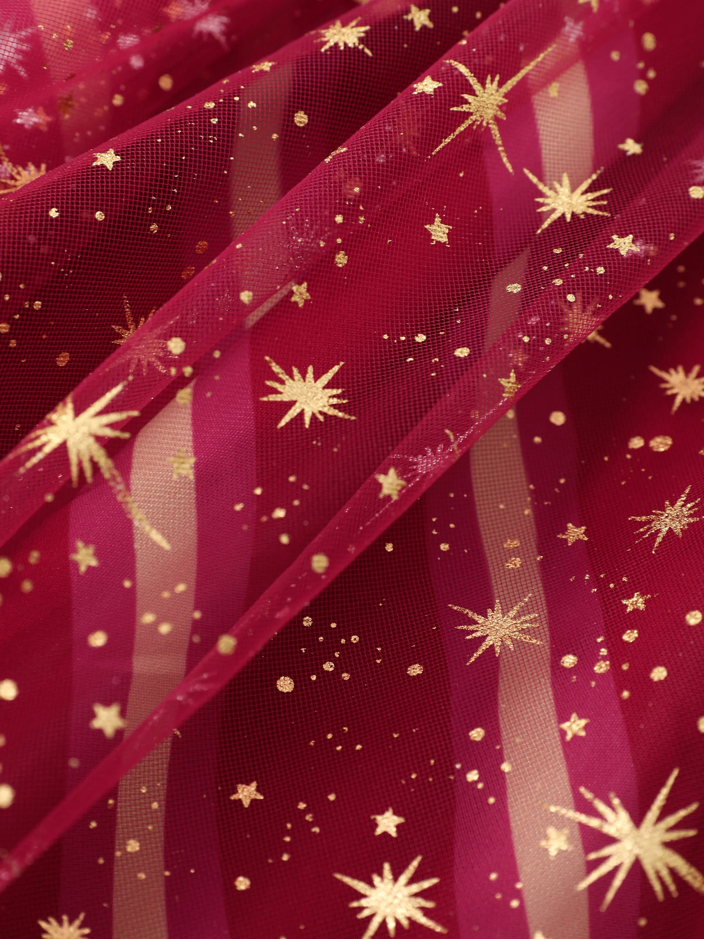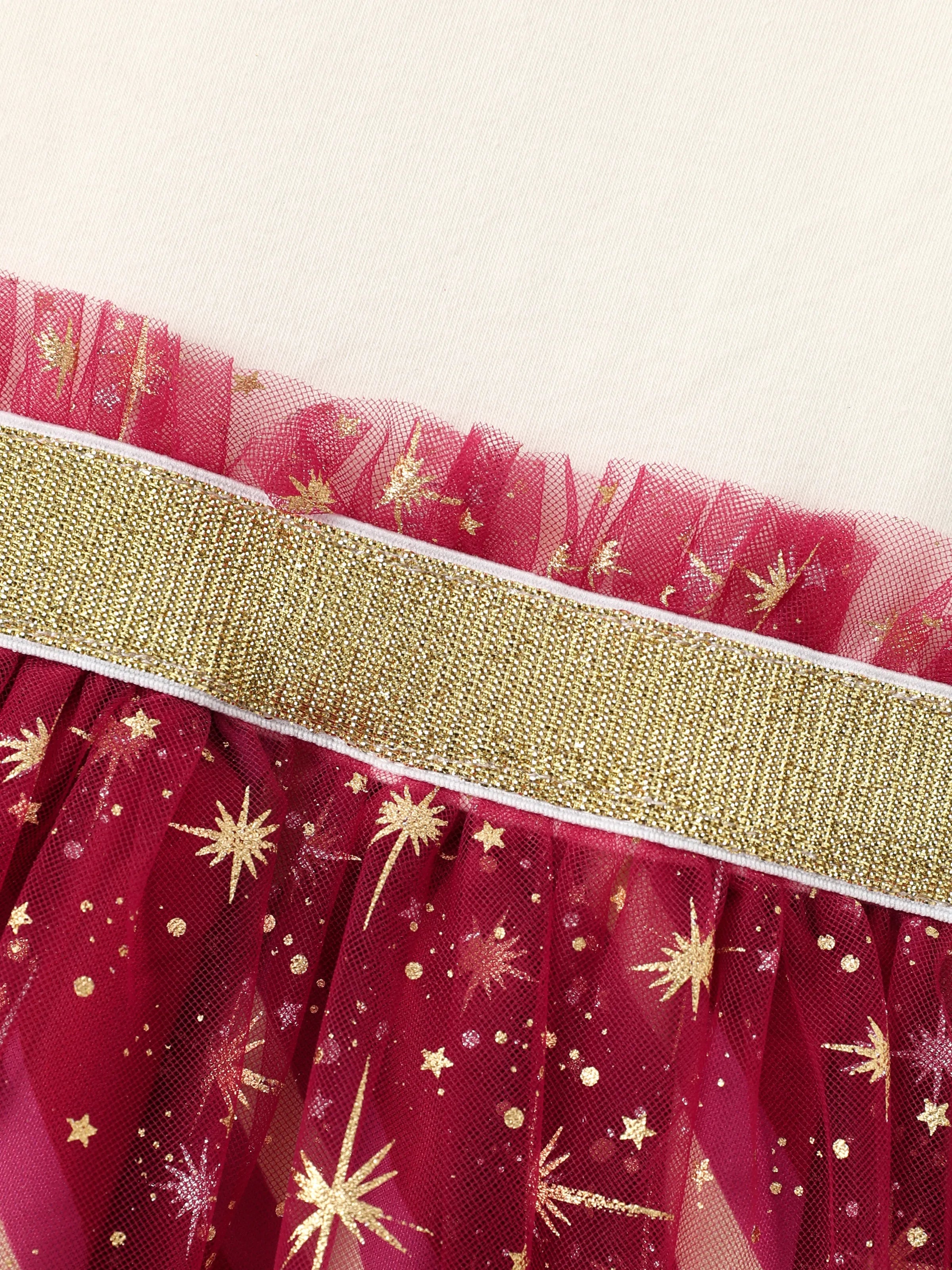 Harry Potter Toddler/Kid Girl Cotton Owl/College Print Ruffle-sleeve Mesh Dress Burgundy