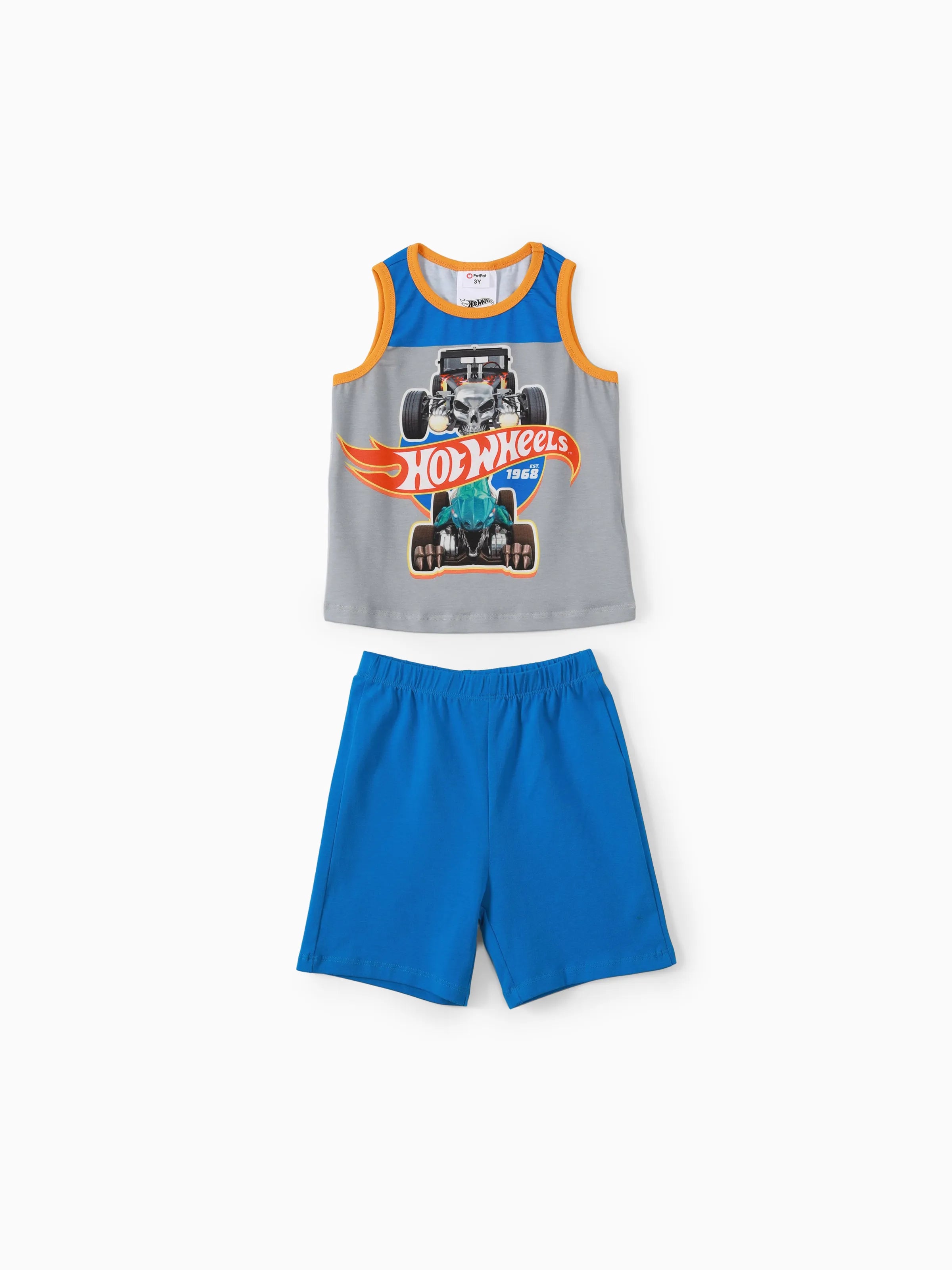 Hot Wheels 2pcs Toddler Boy Naia Colorblock Tank Top and Elasticized Cotton Shorts set Blue