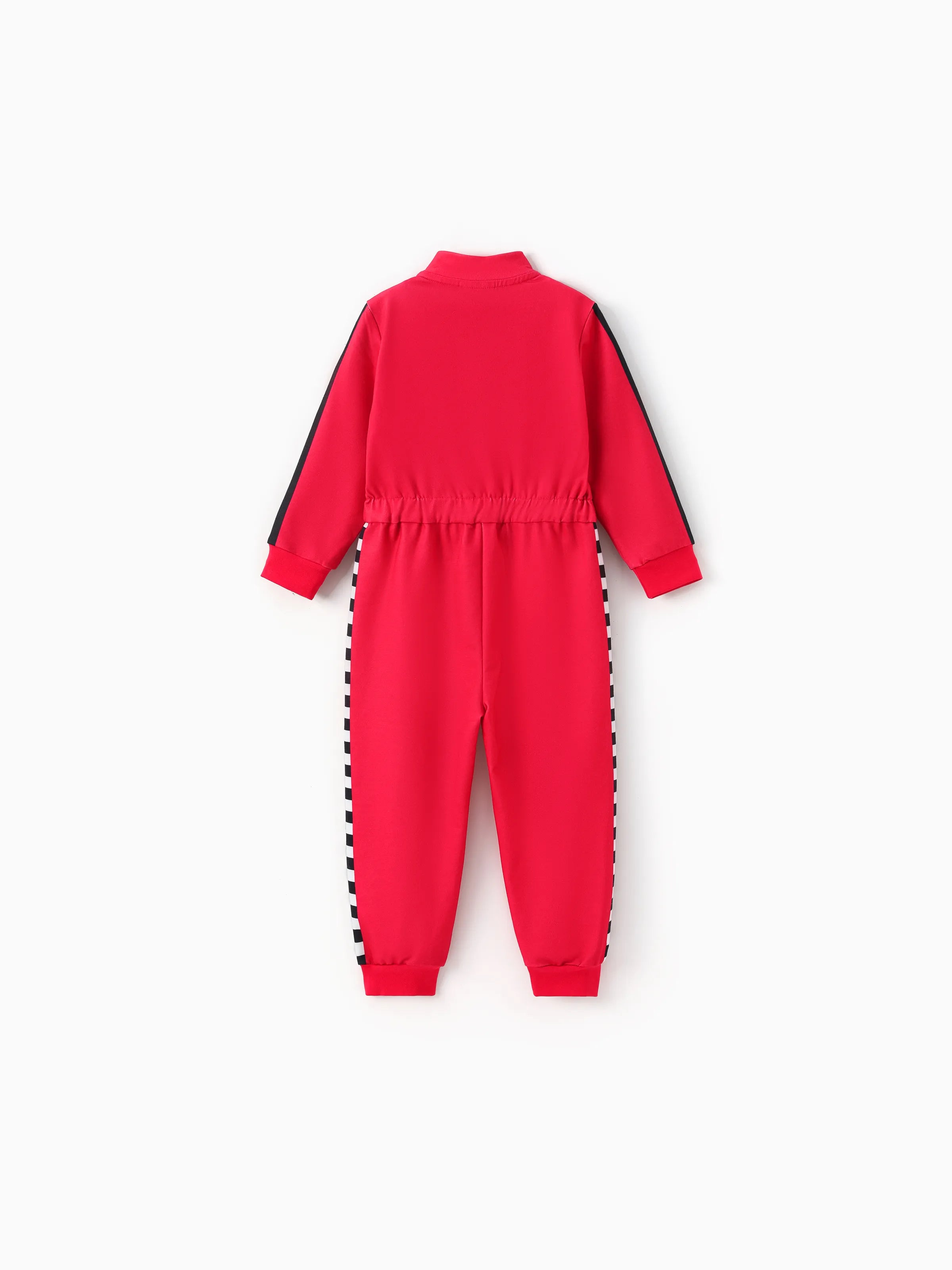 Hot Wheels Toddler Boy 1pc Colorblock Logo Print Long-sleeve Racing Jumpsuit Red