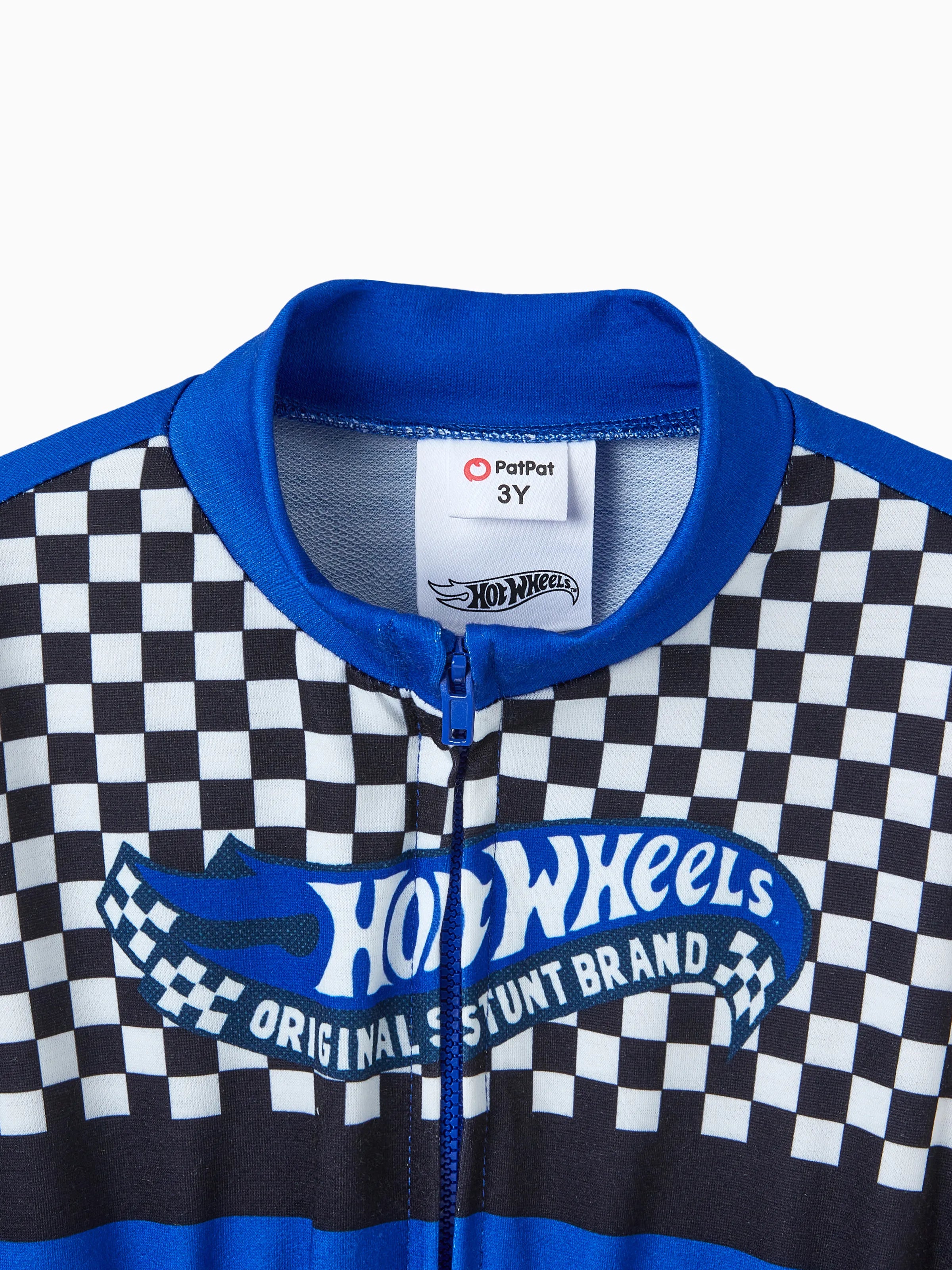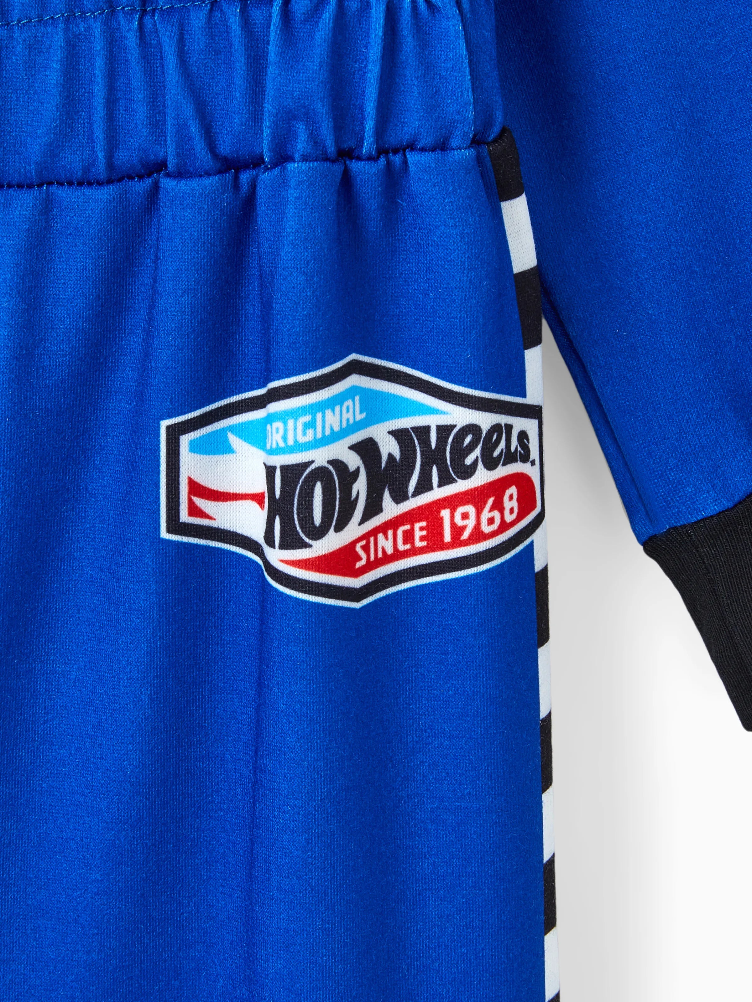 Hot Wheels Toddler Boy Colorblock Logo Print Long-sleeve Racing Jumpsuit Blue
