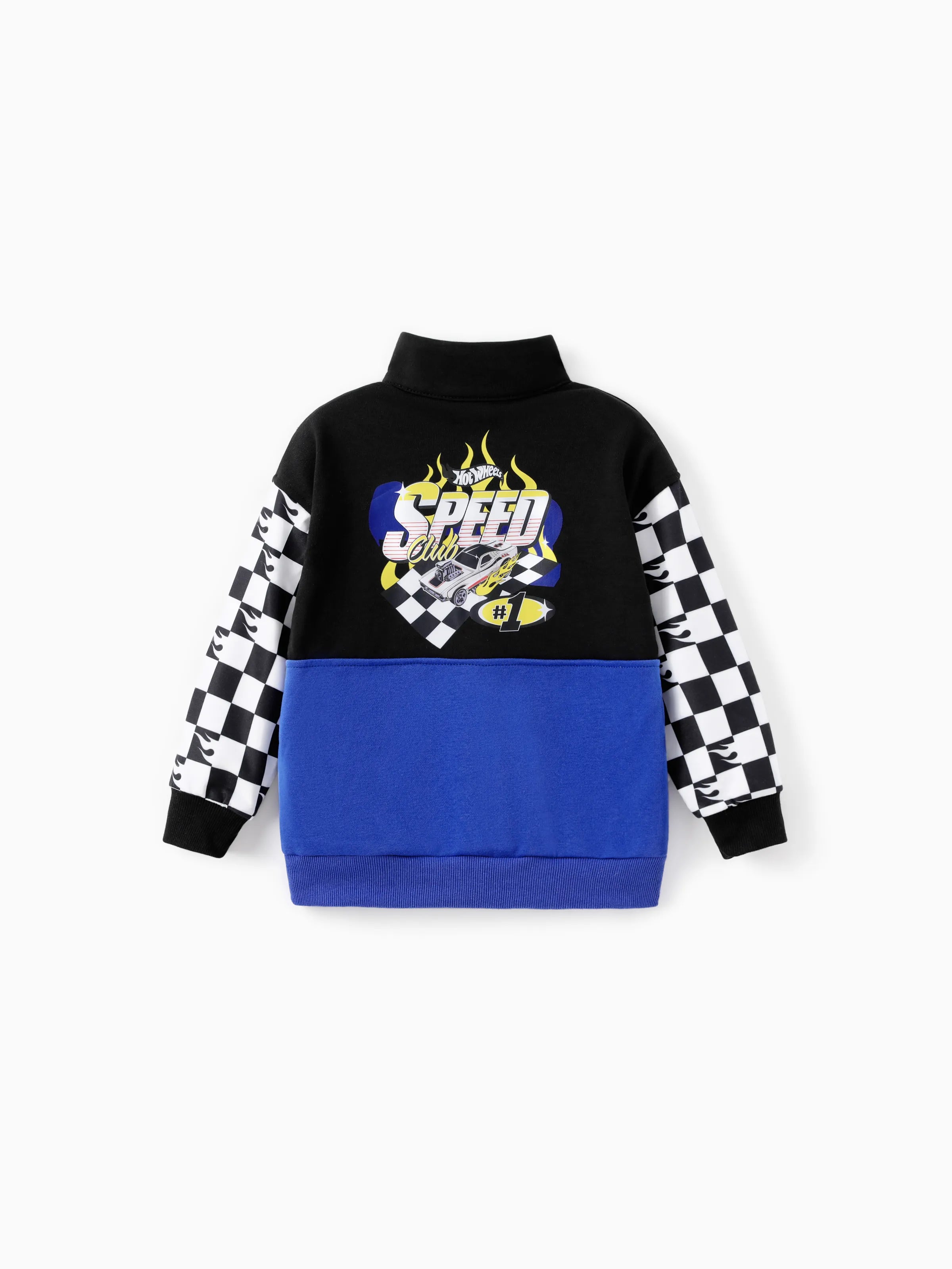 Get ready for fall and winter with this stylish half-zip Sweatshirt that features a multi-color design, chessboard patterned Long-sleeve, and the iconic Hotwheel logo on the chest and back.